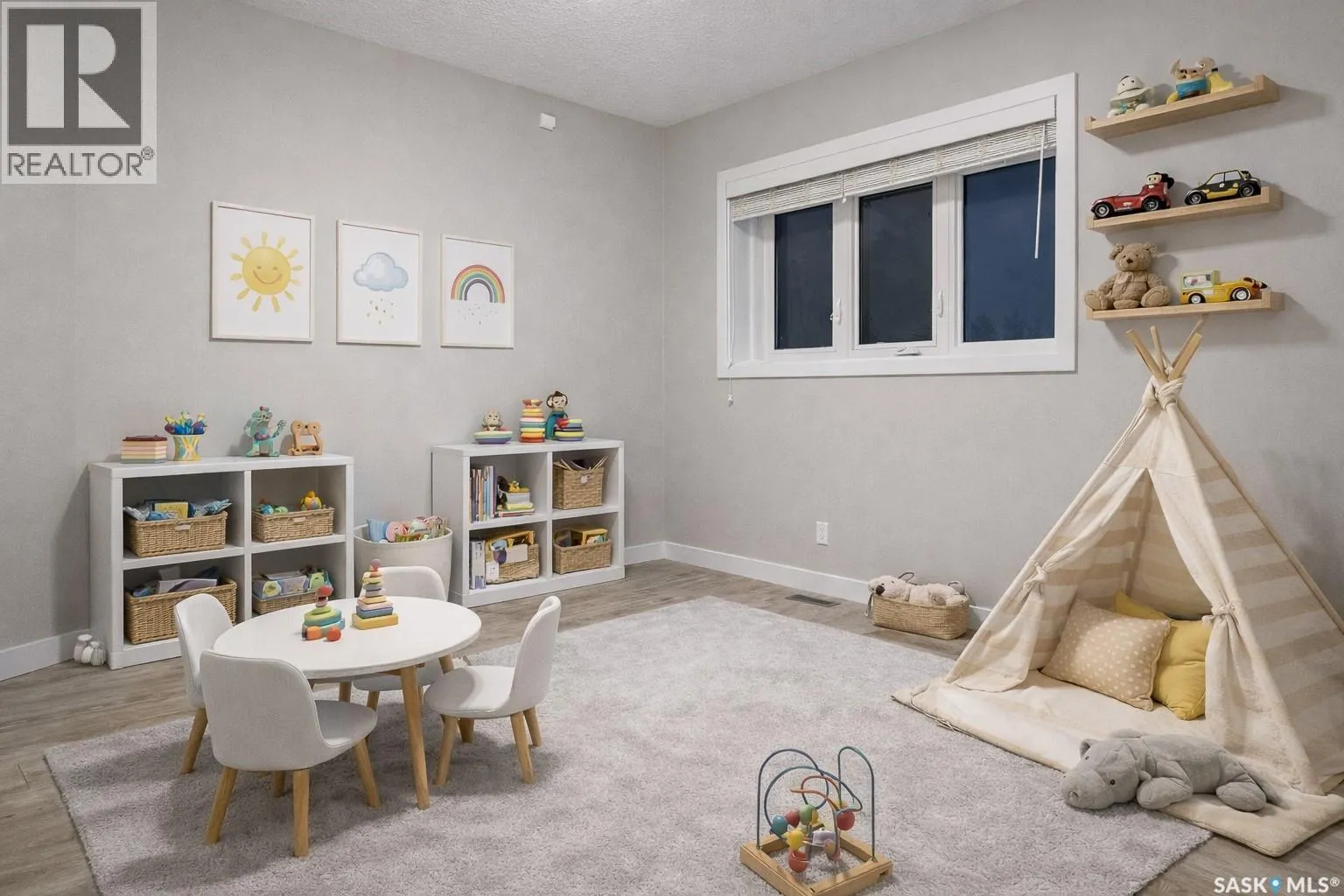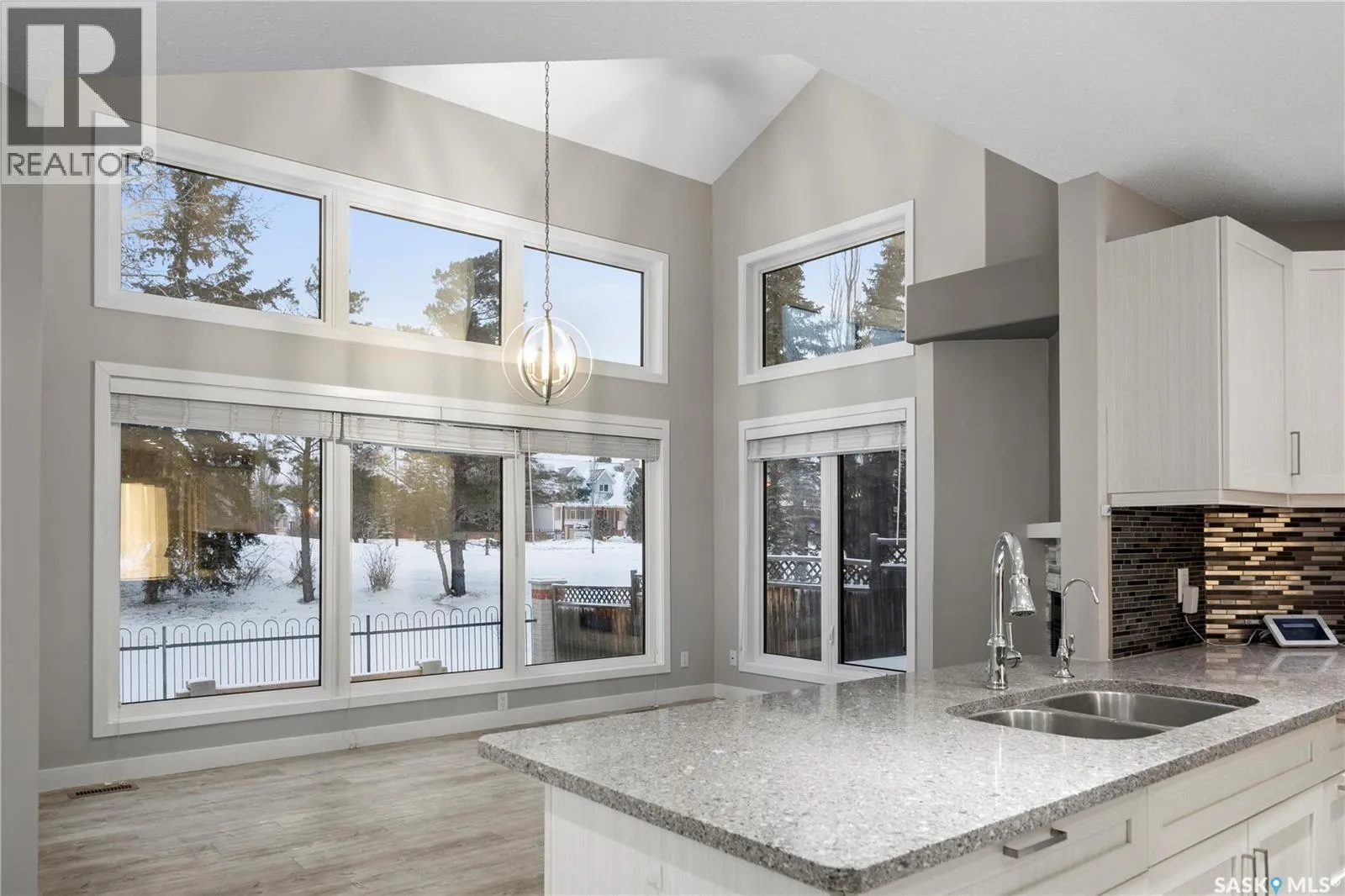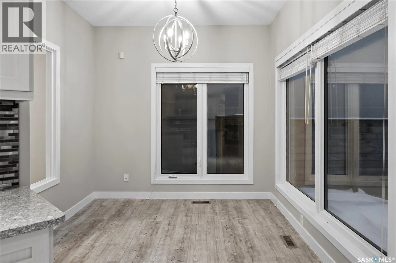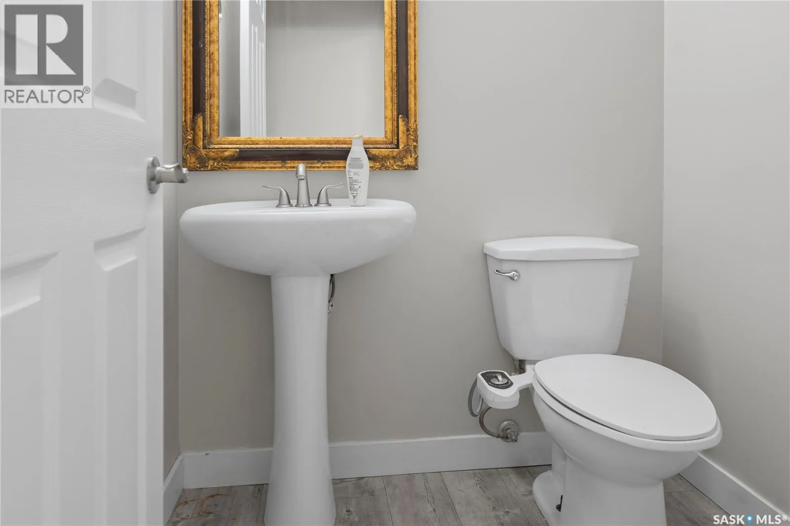 Welcome to 5006 Wascana Vista Court. This former show home is nestled in the sought-after Wascana View neighborhood. This quiet cul-de-sac location backs onto a walking path, offering convenient access to east-end amenities and schools. This two-story split home features 4bd, 3ba, and a spacious 32x24 triple attached insulated garage. The exterior and landscaping are very low maintenance, with a xeriscaped front yard, stucco siding, and a backyard with multiple patio areas and artificial turf. Upon entering, you are greeted by a foyer with 2 closets and tile flooring. A curved staircase descends into the expansive great room, featuring massive windows that provide views of the greenspace. The formal dining room is separated from the great room by a 3 sided gas fireplace. Overlooking the dining room is the updated kitchen, complete with ample cabinet space, quartz countertops, a tile backsplash, and included stainless steel appliances. Next, an additional versatile room can serve as a family room, or reading nook. Adjacent is a main floor bedroom, with natural light from a rear window. The main floor also includes a 2pc bathroom, a large laundry room, and a utility room housing 2 new furnaces and a air conditioner (installed June 2025), a rented water heater, and an r/o system. A storage area completes this level. Ascending a curved staircase, you arrive at a bonus room, located next to the master. The master suite has French doors, expansive windows, a custom-built walk-in closet, and a luxurious 5pc ensuite bathroom with 2 sinks, a jet tub, a custom tile shower, and heated floors. A few more stairs lead to the top floor that has an additional nook, 2 generous bedrooms, and a 5pc bathroom equipped with double sinks and a deep soaker bathtub. The entire home has been recently painted, and significant energy efficiency upgrades were made in 2023, including new shingles and solar panels. Certain photos have been digitally staged and are clearly marked. (id:27476)