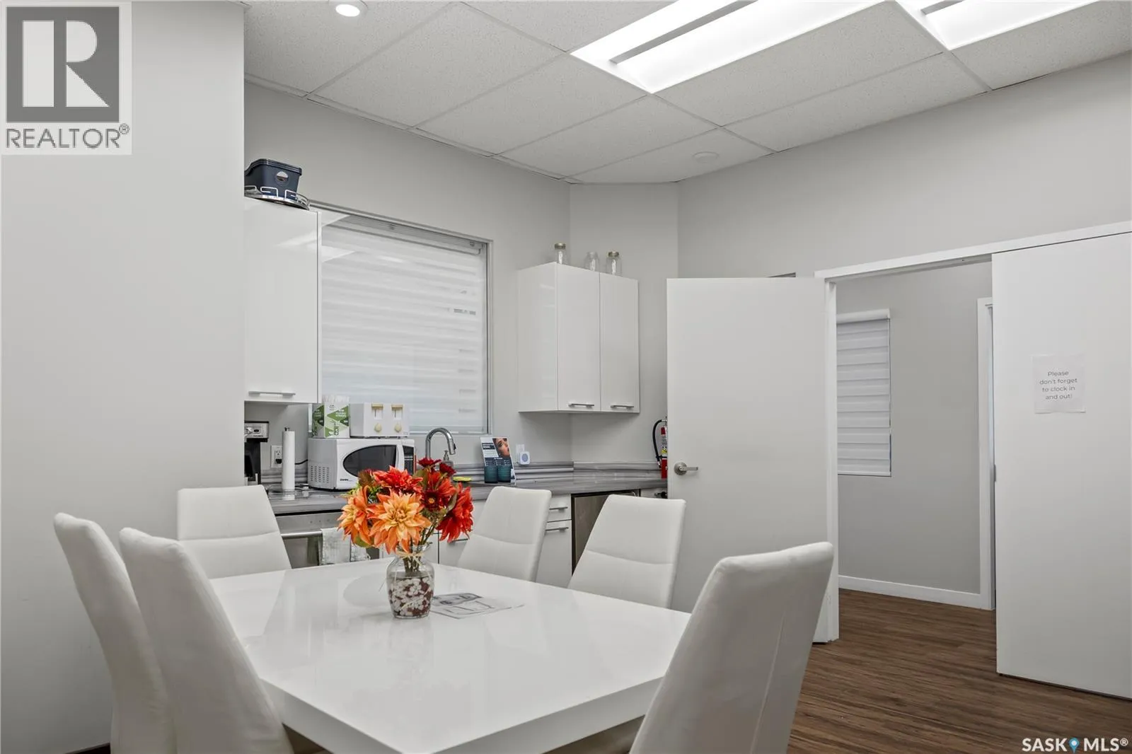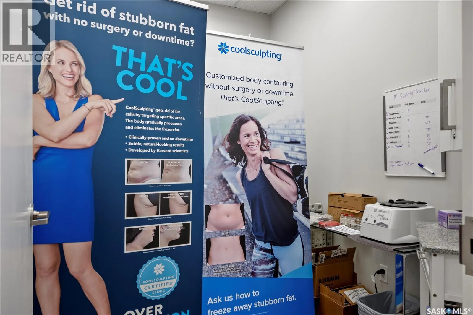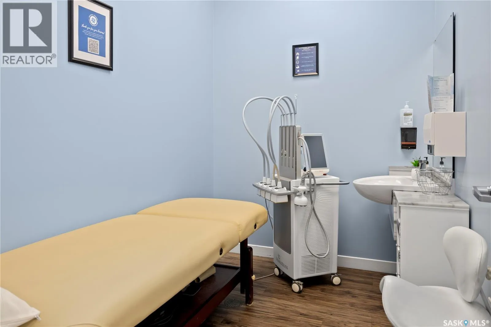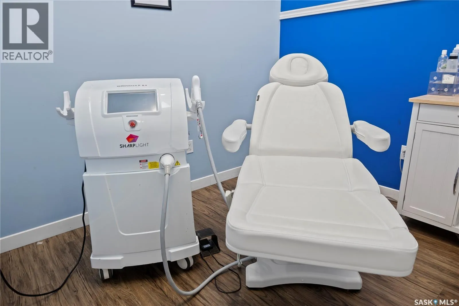 Step into this well maintained, turnkey BodySculptingRegina clinic, ideally located in a high-visibility commercial area with excellent street exposure and prominent signage. Thoughtfully designed for client comfort and efficient workflow, the clinic features multiple bright treatment rooms with large windows and contemporary blinds, ample built-in storage, and dedicated procedure and consultation areas. A modern staff kitchen, washroom, organized supply room, and hallways enhance day-to-day operations, while the clean, spa-like décor creates an immediate sense of professionalism and trustâdelivering an exceptional, ready-to-use space to launch a new clinic or seamlessly expand your existing practice. Don't miss out on this one! Book your showing today. (id:27476)