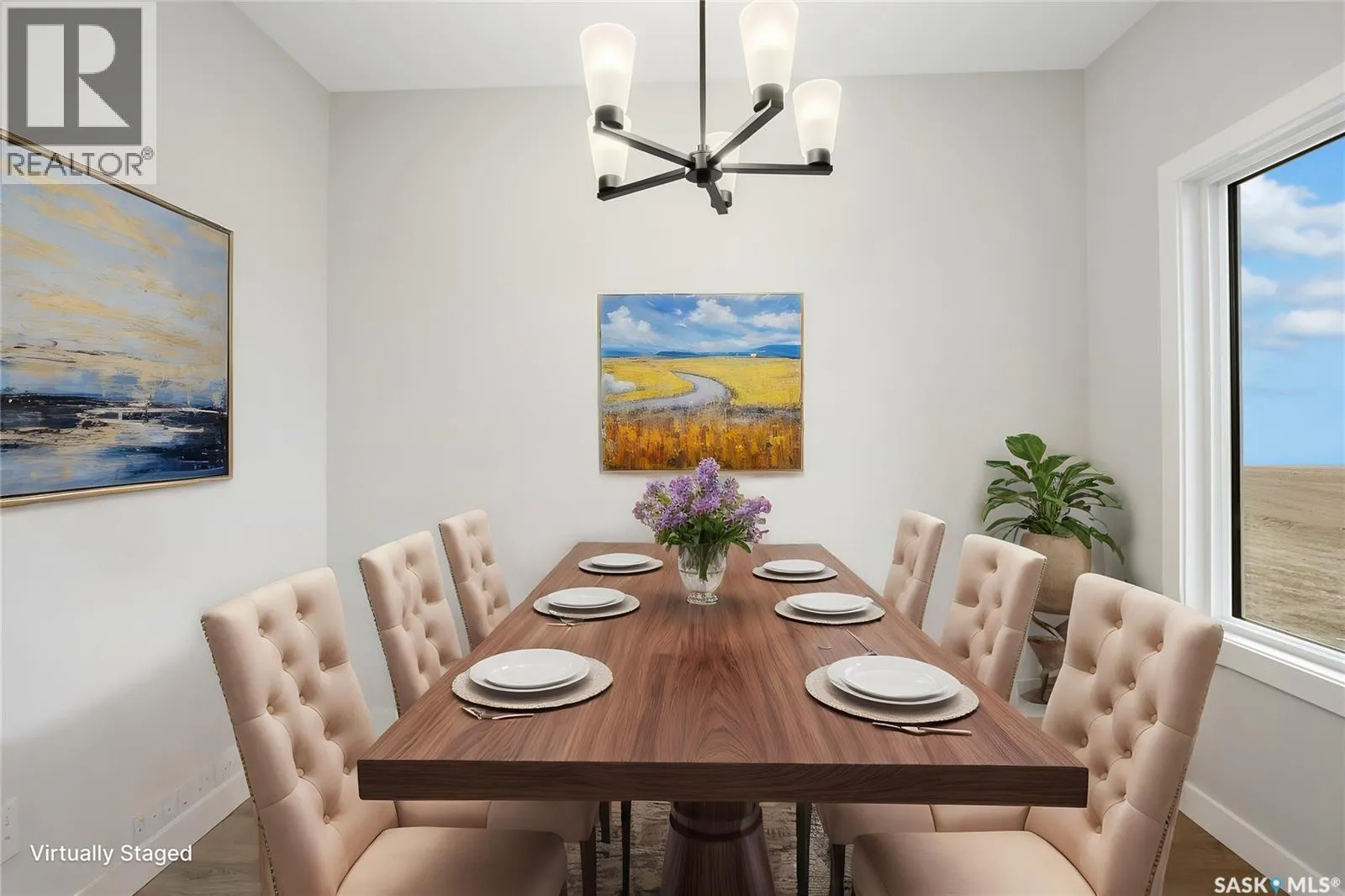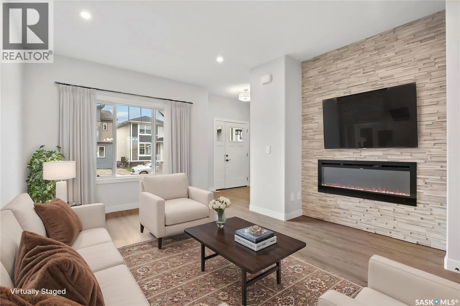 Welcome to the Ashwood, premier builder Ehrenburg Home's latest offering in Eastbrook! Laneway homes now including double detached garages! A vibrant new area close to all amenities, schools and parks. Top quality construction and materials used throughout. Main floor layout is perfect for entertaining. Spacious front entry leads to a wide open floor plan. Large living room with stack stone feature wall with electric fireplace. Beautiful contemporary design. Kitchen features center island/eating bar, pantry, and quartz counters. Extra large eating area to accommodate family dinners. Handy 2 piece bath off the rear door. 2nd level boasts large primary suite with walk in closet and ensuite, two additional bedrooms, full bath and handy laundry room. Bsmt has side entrance for future development. Exterior walls are framed and insulated with roughed in plumbing. All Ehrenburg Homes offer a superior construction foundation with a 4" rebar reinforced slab and is built on piles. Double detached garage 20x22. Exterior front landscaping, and underground sprinklers (front only) are included. Sask new home warranty included. So many extras with an Ehrenburg Home call today for more details! PHOTOS FROM PREVIOUSLY STAGED BUILD (id:27476)