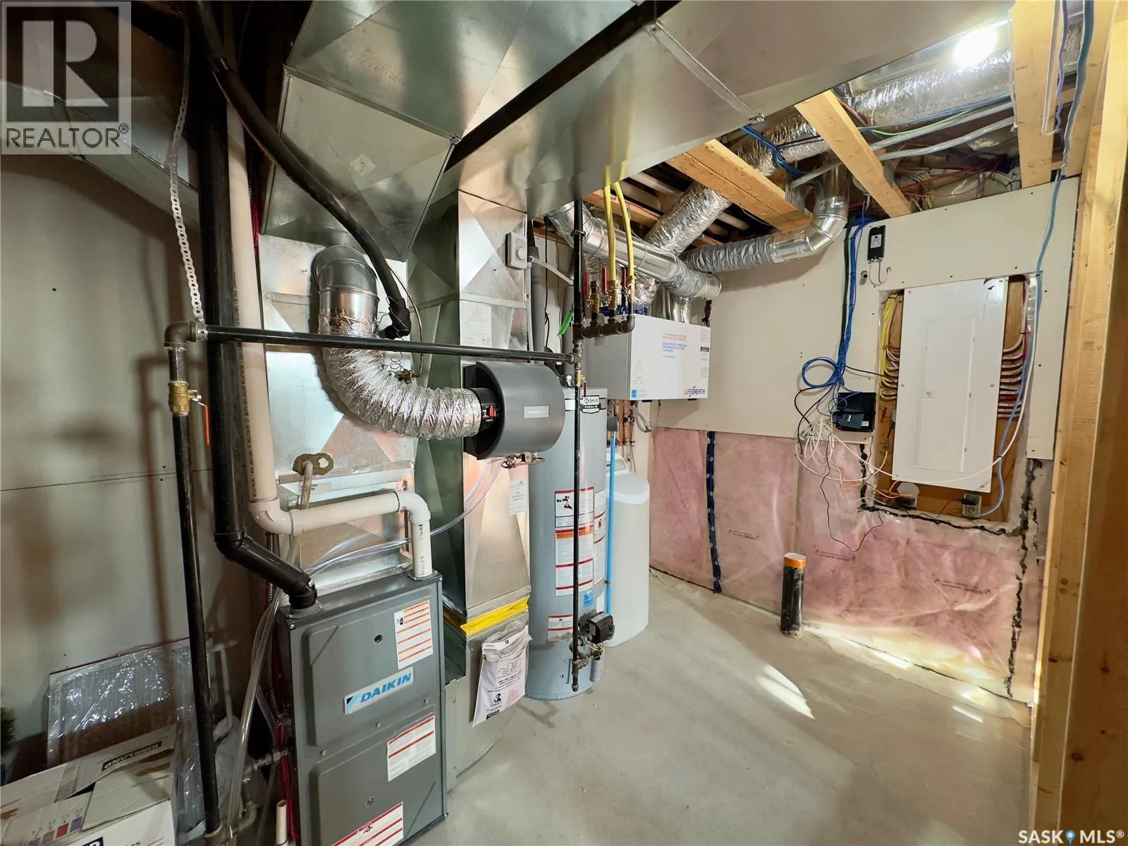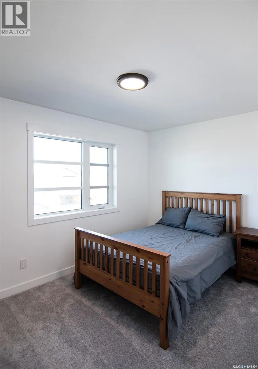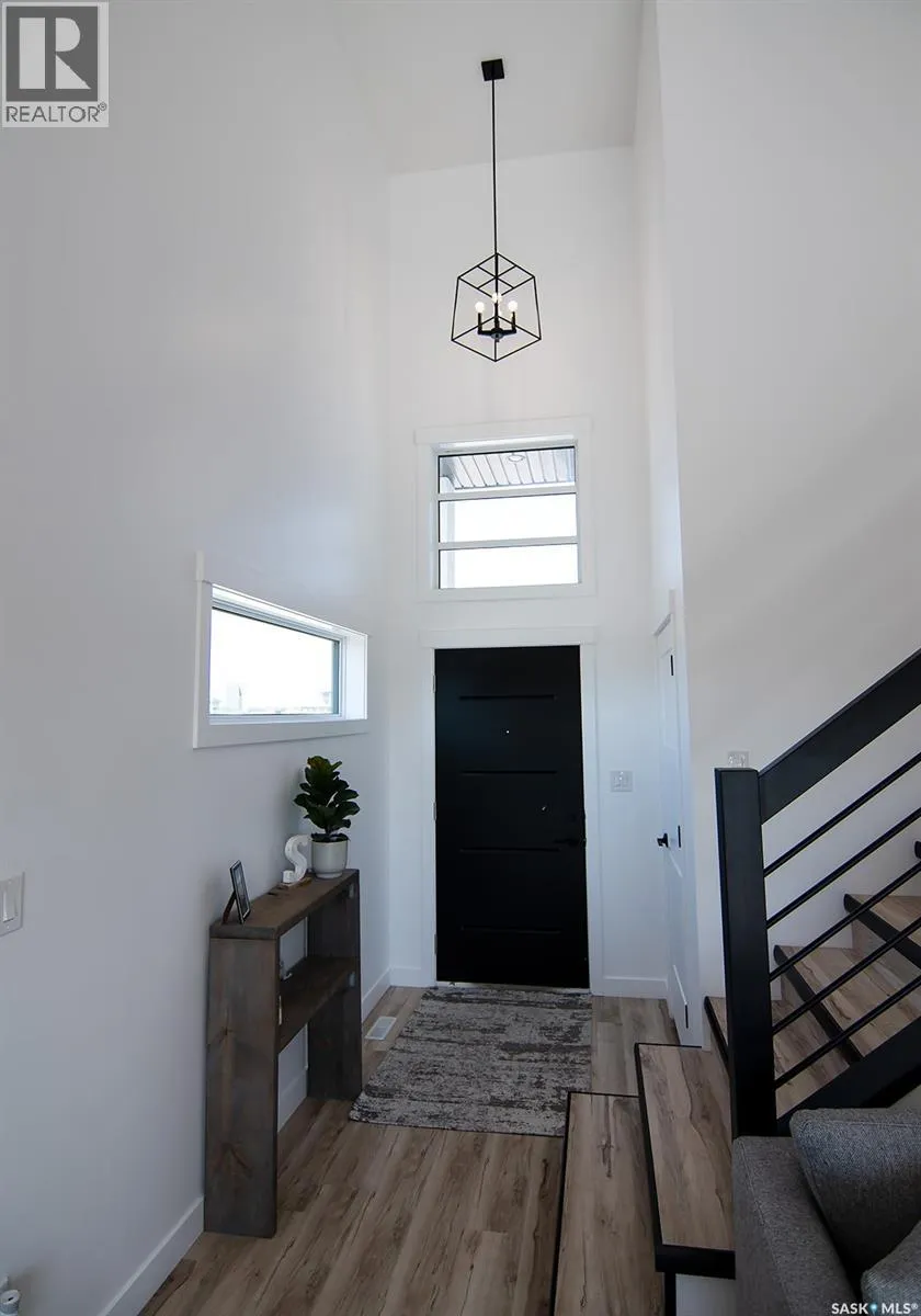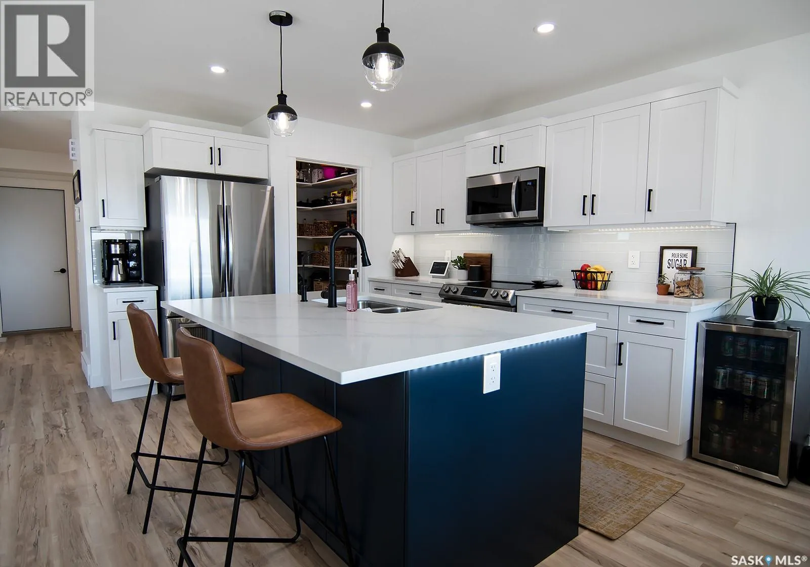 Welcome to this stunning 2-storey custom built home located in the desirable neighbourhood of the Greens on Gardiner! With only one owner and built on piles, this home features a functional layout with modern aesthetic finishes. As you enter the home you are greeted with 17â high ceilings and large windows allowing ample daylight in. The open concept layout makes it perfect for hosting and entertaining family and friends. Making your way through the spacious living room, you will find a kitchen full of stainless steel appliances, two-tone cabinetry with plenty of cabinets, modern backsplash and a walk through pantry for some additional storage. Off the kitchen you have a large size dining area with a door that leads to your spacious 16âx10â deck that has a privacy fence and natural gas hookup. Making your way up the second level you will find three bedrooms and two full bathrooms. The primary bedroom features a nice size walk-through closet to the primary en-suite which offers custom tile work in the shower, and a large vanity with a getting ready seating area. Not far down the hall you also have two very nice sized bedrooms with large windows in each. Some other nice features this home has includes a high-efficiency furnace, water softener, reverse osmosis system, xeriscaped front yard, fully insulated garage, rough in gas hookup and electrical for a future garage heater, triple pane low-e windows throughout, roughed-in plumbing in the basement with the bathroom and a bedroom framed and roughed in electrical in the basement. This home blends comfort and convenience while being in close proximity to schools and all the amenities the Greens has to offer! (id:27476)