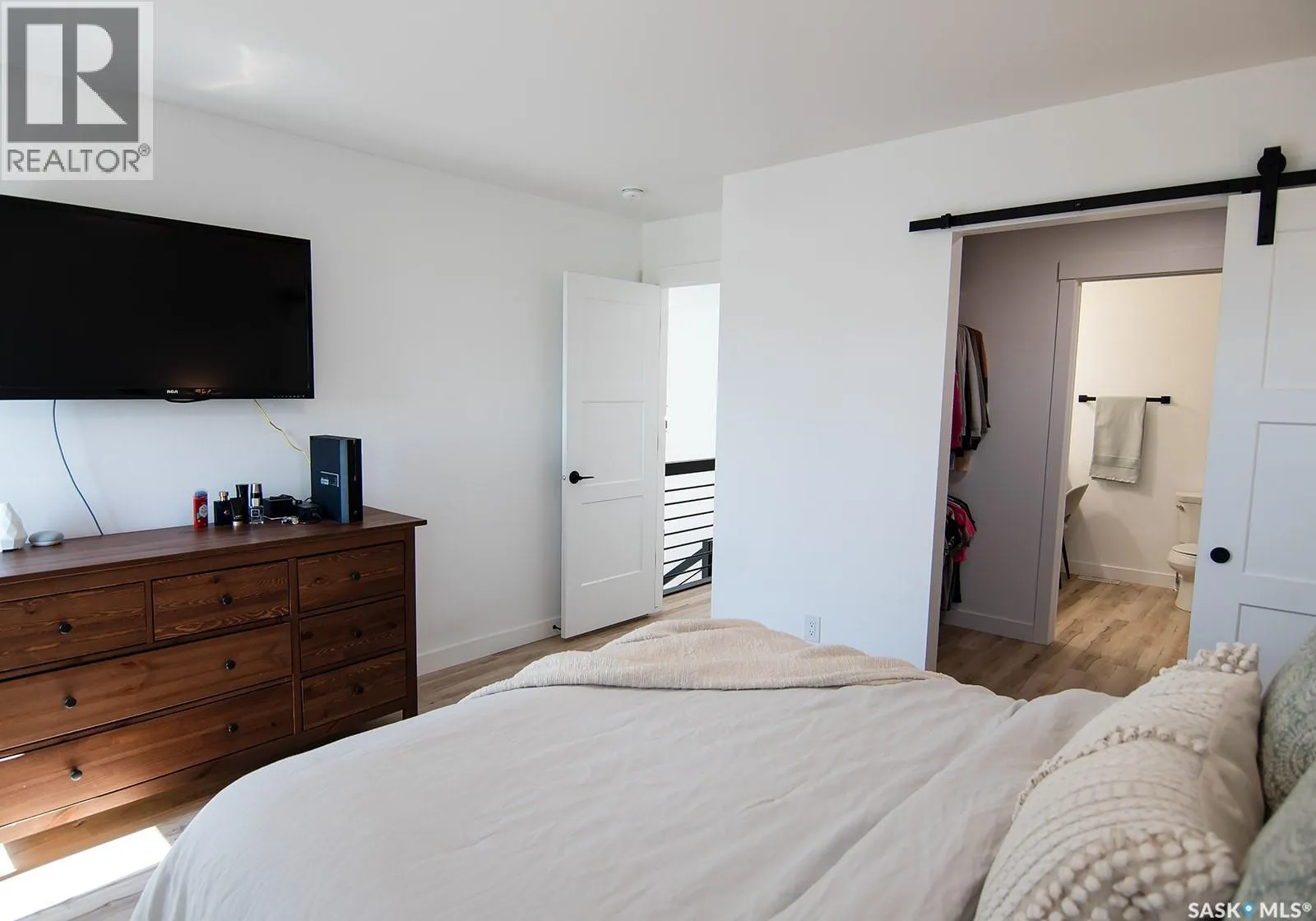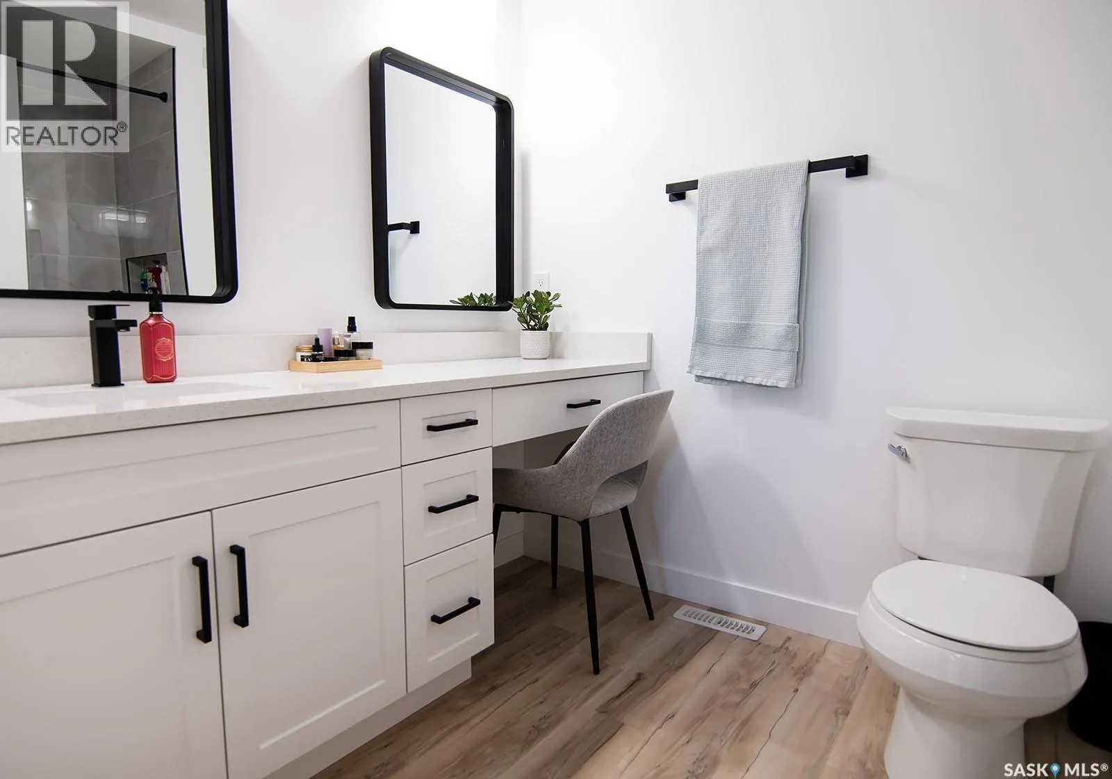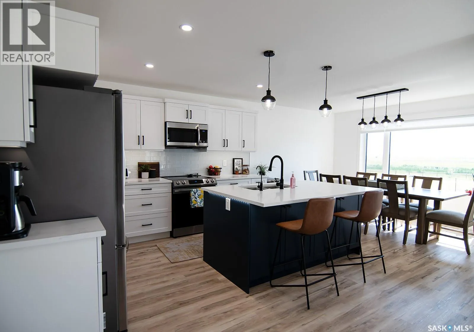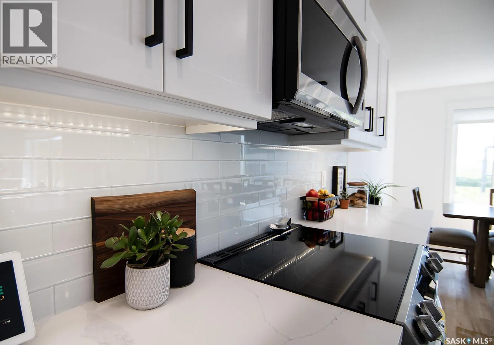 Welcome to this stunning 2-storey custom built home located in the desirable neighbourhood of the Greens on Gardiner! With only one owner and built on piles, this home features a functional layout with modern aesthetic finishes. As you enter the home you are greeted with 17â high ceilings and large windows allowing ample daylight in. The open concept layout makes it perfect for hosting and entertaining family and friends. Making your way through the spacious living room, you will find a kitchen full of stainless steel appliances, two-tone cabinetry with plenty of cabinets, modern backsplash and a walk through pantry for some additional storage. Off the kitchen you have a large size dining area with a door that leads to your spacious 16âx10â deck that has a privacy fence and natural gas hookup. Making your way up the second level you will find three bedrooms and two full bathrooms. The primary bedroom features a nice size walk-through closet to the primary en-suite which offers custom tile work in the shower, and a large vanity with a getting ready seating area. Not far down the hall you also have two very nice sized bedrooms with large windows in each. Some other nice features this home has includes a high-efficiency furnace, water softener, reverse osmosis system, xeriscaped front yard, fully insulated garage, rough in gas hookup and electrical for a future garage heater, triple pane low-e windows throughout, roughed-in plumbing in the basement with the bathroom and a bedroom framed and roughed in electrical in the basement. This home blends comfort and convenience while being in close proximity to schools and all the amenities the Greens has to offer! (id:27476)