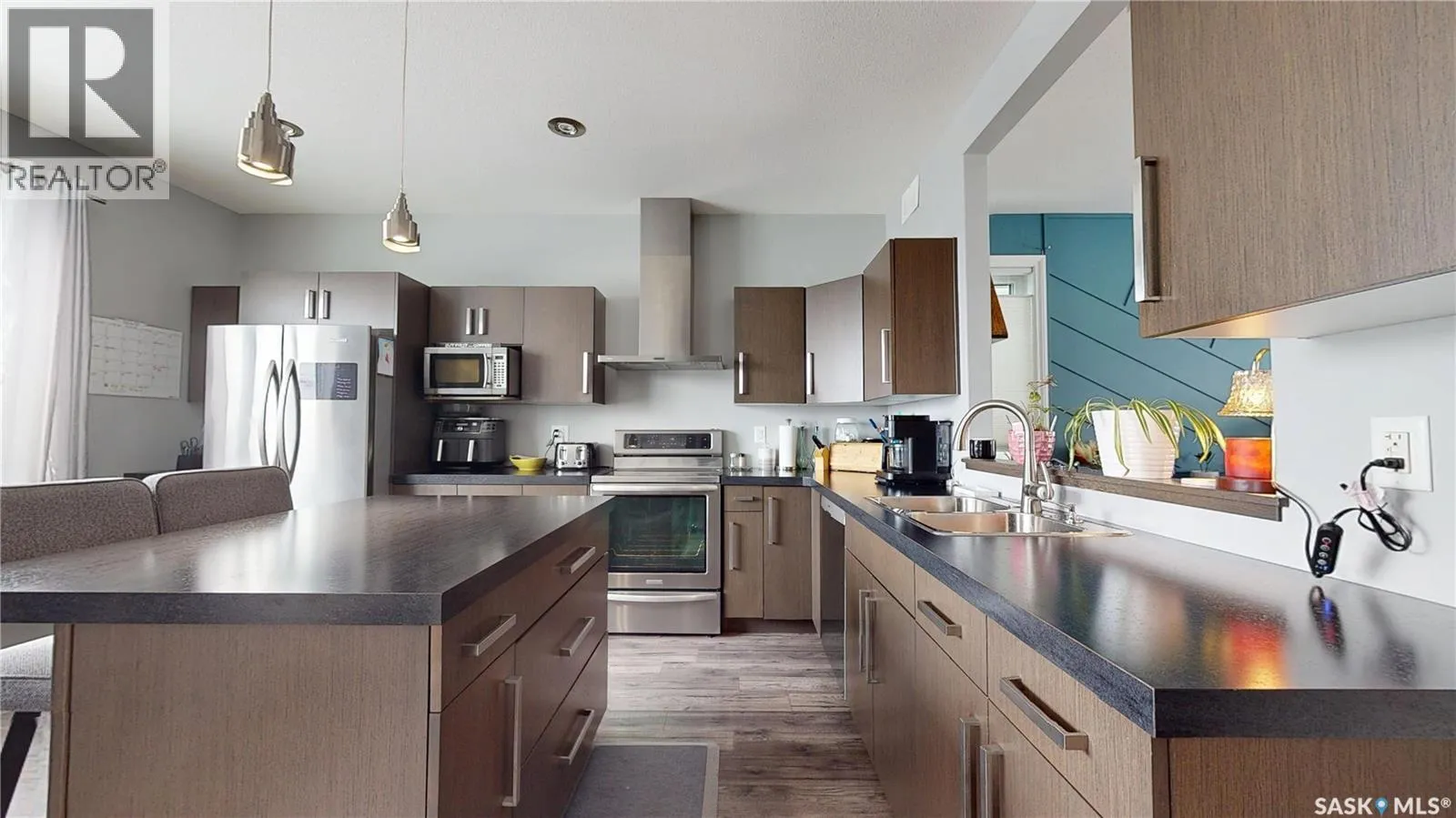 Beautiful two-storey home built by Varsity Homes, located in the highly desirable neighbourhood of Hawkstone. This home is in excellent condition and features a modern open-concept floor plan with stunning natural light from large east- and west-facing windows. The home also offers added square footage from the original design, providing an oversized living room and a dream kitchen. The kitchen includes a large island with kick-sweep central vacuum, excellent counter space, curio shelving, pot lighting, commercial-style hood fan, stainless-steel appliances, huge east-facing windows, and an abundance of high-quality cabinetry. A rear mudroom leads to the fully landscaped backyard and an impressive double heated garage. The garage measures 24â x 24â, is built on a 1â grade beam, features 10â ceilings, and an oversized 20â wide overhead door. A convenient 2-piece bathroom is also located just off the back entry. A gorgeous wide staircase leads to the upper level, which features a high-quality ownersâ suite with a large walk-in closet and a beautiful 3-piece ensuite with his-and-hers sinks. Two additional spacious bedrooms and a full main bathroom complete this level. The fully developed basement includes a large rec room, a fourth bedroom (no closet), laundry area, and a 3-piece bathroom, all finished in durable vinyl plank flooring. Exterior features include attractive landscaping front and back as well as permanent soffit lighting on the front of the home. This is a move-in-ready property with pride of ownership throughout. (id:27476)