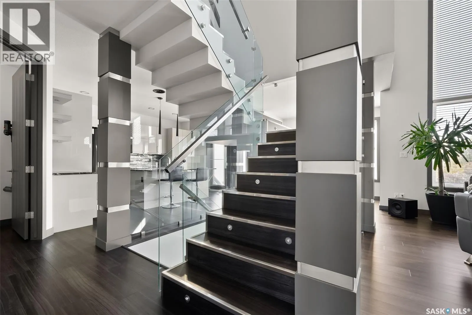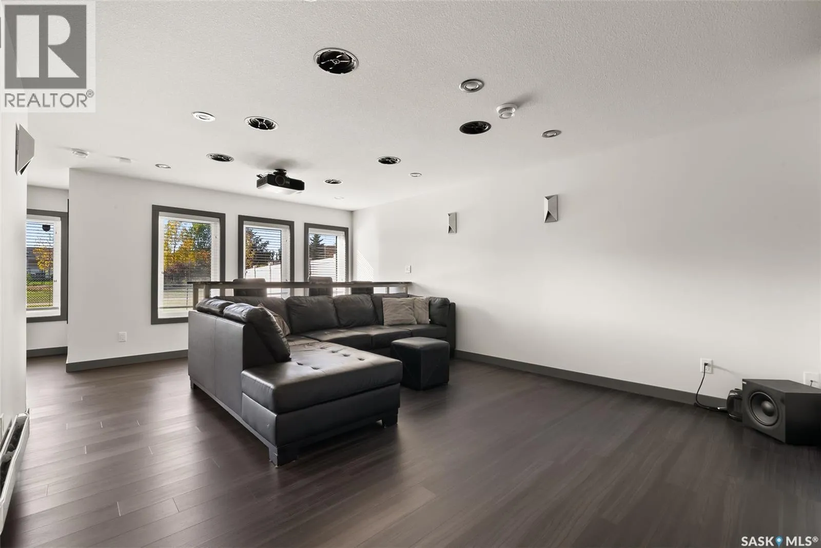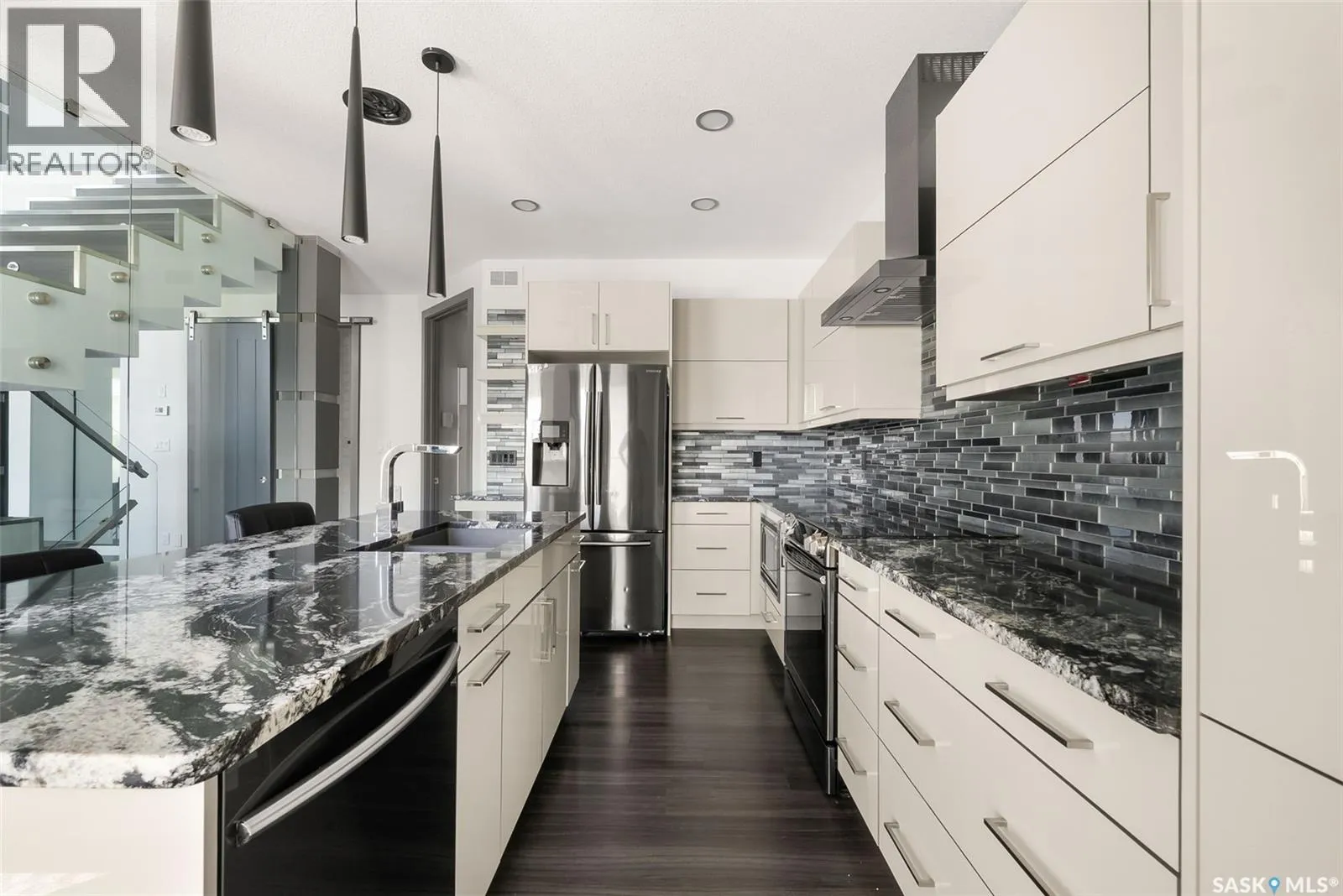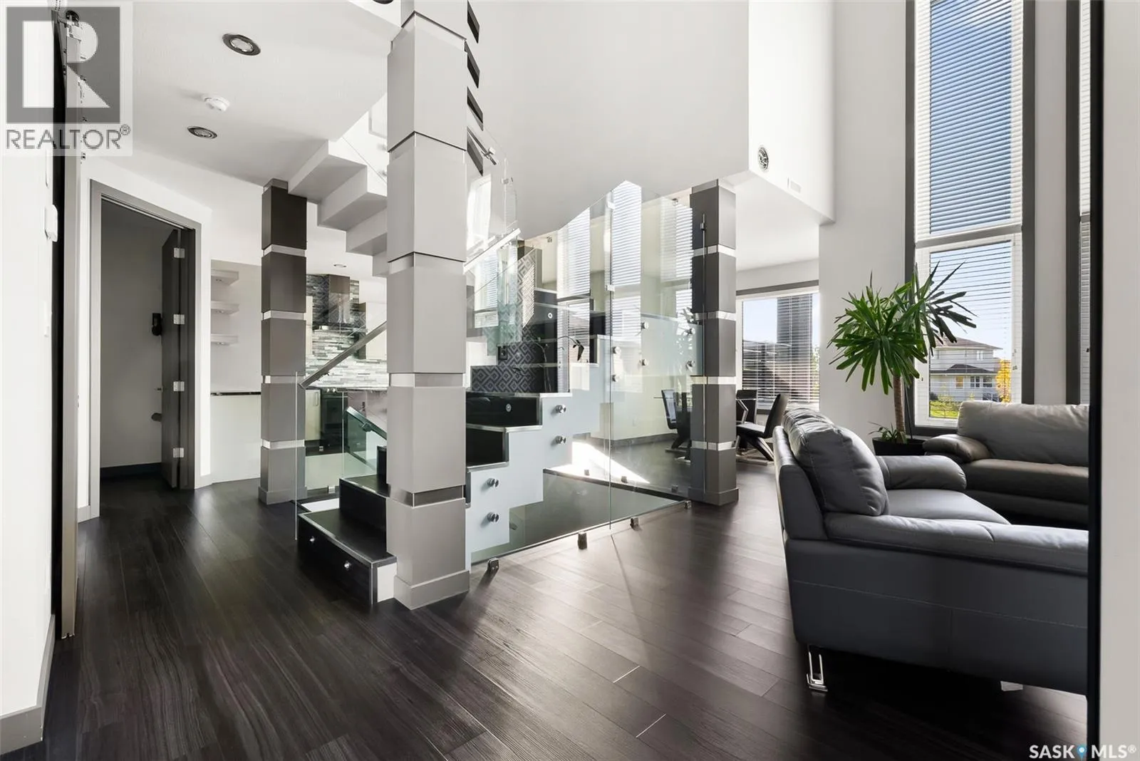 Welcome to this stunning custom-built walkout in Fairways West! This home is in a prime location and backs the beautiful green space and walking path leading to the Goulet Golf Course. The moment you step inside, 19-foot ceilings and floor-to-ceiling windows create a dramatic sense of space and light. A striking glass-and-stainless steel staircase, accented with subtle stair lighting, introduces the homeâs modern, refined style. The kitchen is both beautiful and practical, featuring custom white cabinetry, a generous sit-up island, granite countertops and premium stainless-steel appliances. There is garden door access from the kitchen which opens onto a private west-facing deckâideal for morning coffee or evening entertaining while taking in the peaceful green space. Upstairs youâll find the primary retreat, complete with a walk-in closet and a luxurious five-piece ensuite featuring dual vanities, a stand-alone soaker tub and a custom-tiled shower. Two additional bedrooms, a four-piece bath, and a convenient laundry room complete this level. The fully developed walkout basement is built for entertaining or unwinding after a long day. The rec room is set up as a perfect home theatre complete with a projector screen and built-in sound system! A sleek wet bar adds style and convenience, while the fourth bedroom doubles as a guest room, office, or home gym. Expansive windows keep the space bright and welcoming. The oversized double attached garage is a standoutâheated, drywalled and equipped with 12-foot ceilings, a floor drain, and water taps. There are built-in speakers throughout the house and receivers are all included. Every detail in this home combines contemporary design with practical luxury. Discover a residence where craftsmanship and lifestyle meet in one exceptional property. This Fairways West show piece is one you do not want to miss out on! (id:27476)