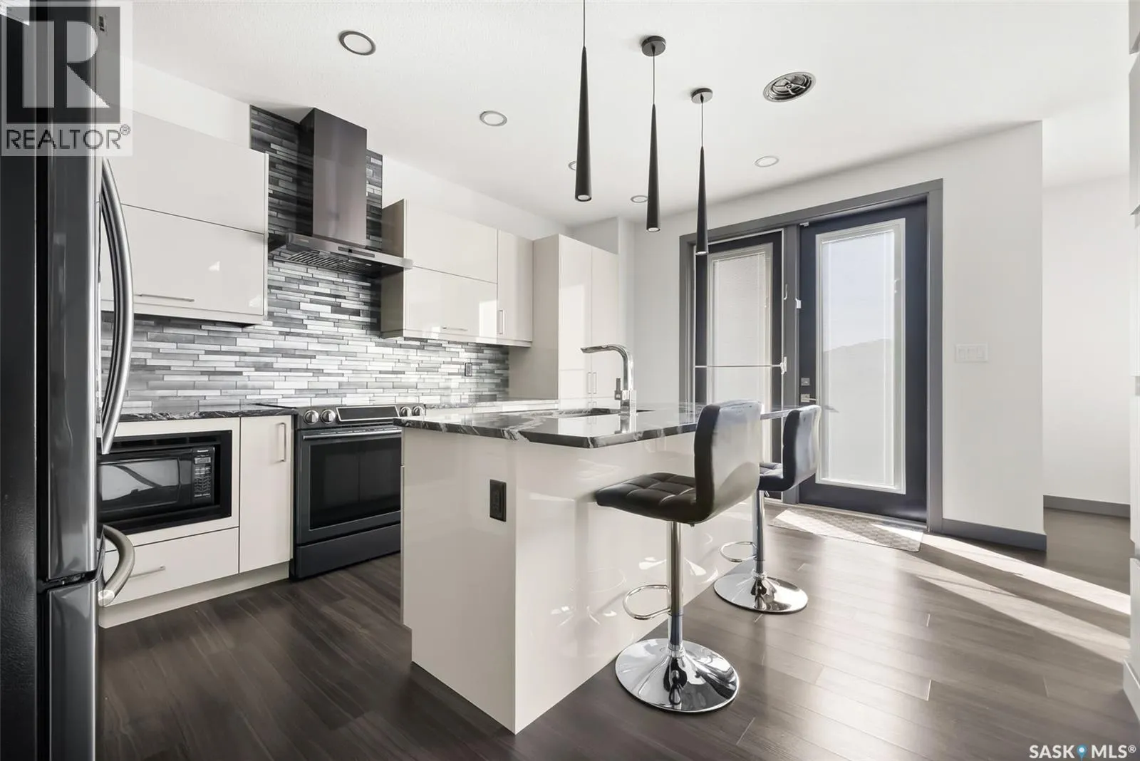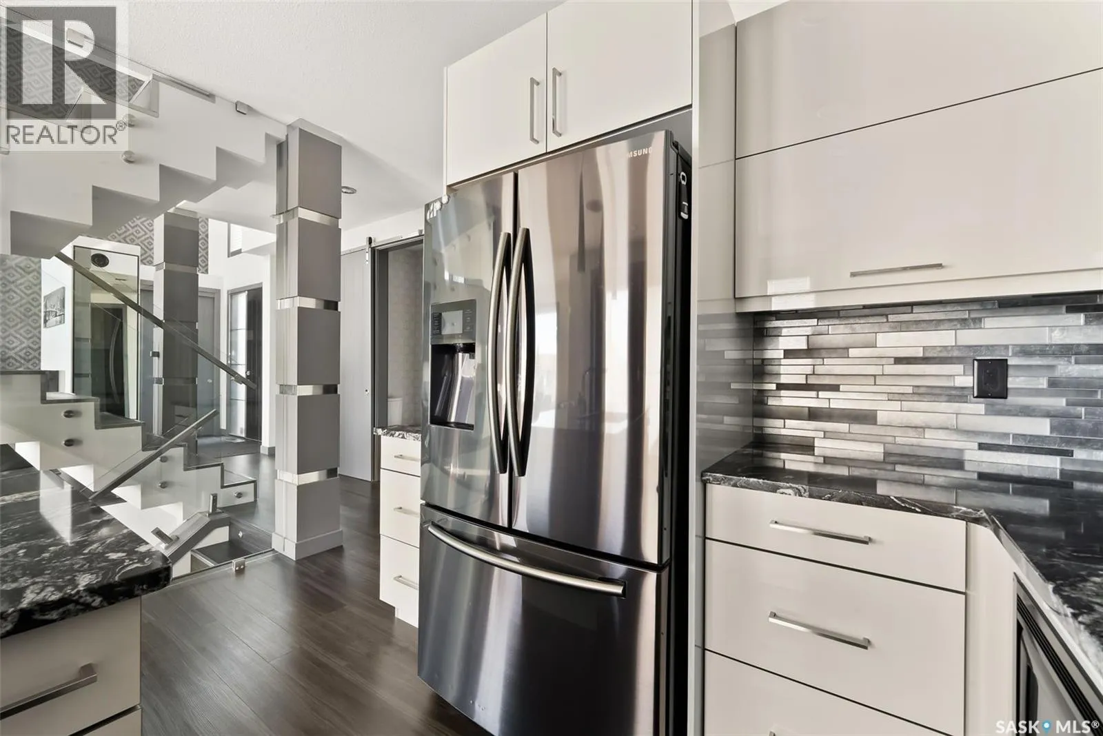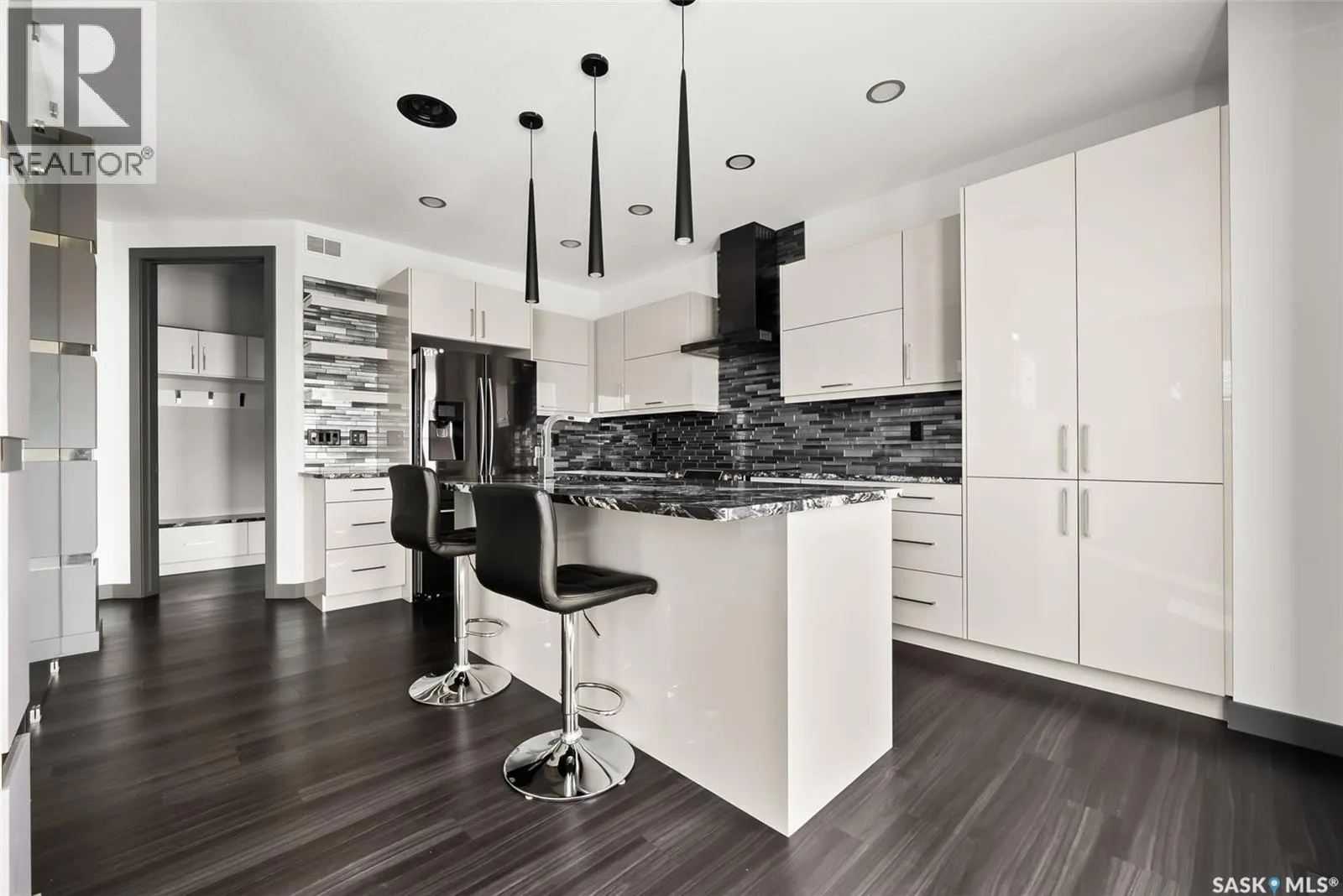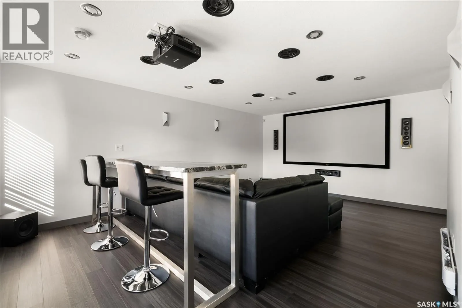 Welcome to this stunning custom-built walkout in Fairways West! This home is in a prime location and backs the beautiful green space and walking path leading to the Goulet Golf Course. The moment you step inside, 19-foot ceilings and floor-to-ceiling windows create a dramatic sense of space and light. A striking glass-and-stainless steel staircase, accented with subtle stair lighting, introduces the homeâs modern, refined style. The kitchen is both beautiful and practical, featuring custom white cabinetry, a generous sit-up island, granite countertops and premium stainless-steel appliances. There is garden door access from the kitchen which opens onto a private west-facing deckâideal for morning coffee or evening entertaining while taking in the peaceful green space. Upstairs youâll find the primary retreat, complete with a walk-in closet and a luxurious five-piece ensuite featuring dual vanities, a stand-alone soaker tub and a custom-tiled shower. Two additional bedrooms, a four-piece bath, and a convenient laundry room complete this level. The fully developed walkout basement is built for entertaining or unwinding after a long day. The rec room is set up as a perfect home theatre complete with a projector screen and built-in sound system! A sleek wet bar adds style and convenience, while the fourth bedroom doubles as a guest room, office, or home gym. Expansive windows keep the space bright and welcoming. The oversized double attached garage is a standoutâheated, drywalled and equipped with 12-foot ceilings, a floor drain, and water taps. There are built-in speakers throughout the house and receivers are all included. Every detail in this home combines contemporary design with practical luxury. Discover a residence where craftsmanship and lifestyle meet in one exceptional property. This Fairways West show piece is one you do not want to miss out on! (id:27476)