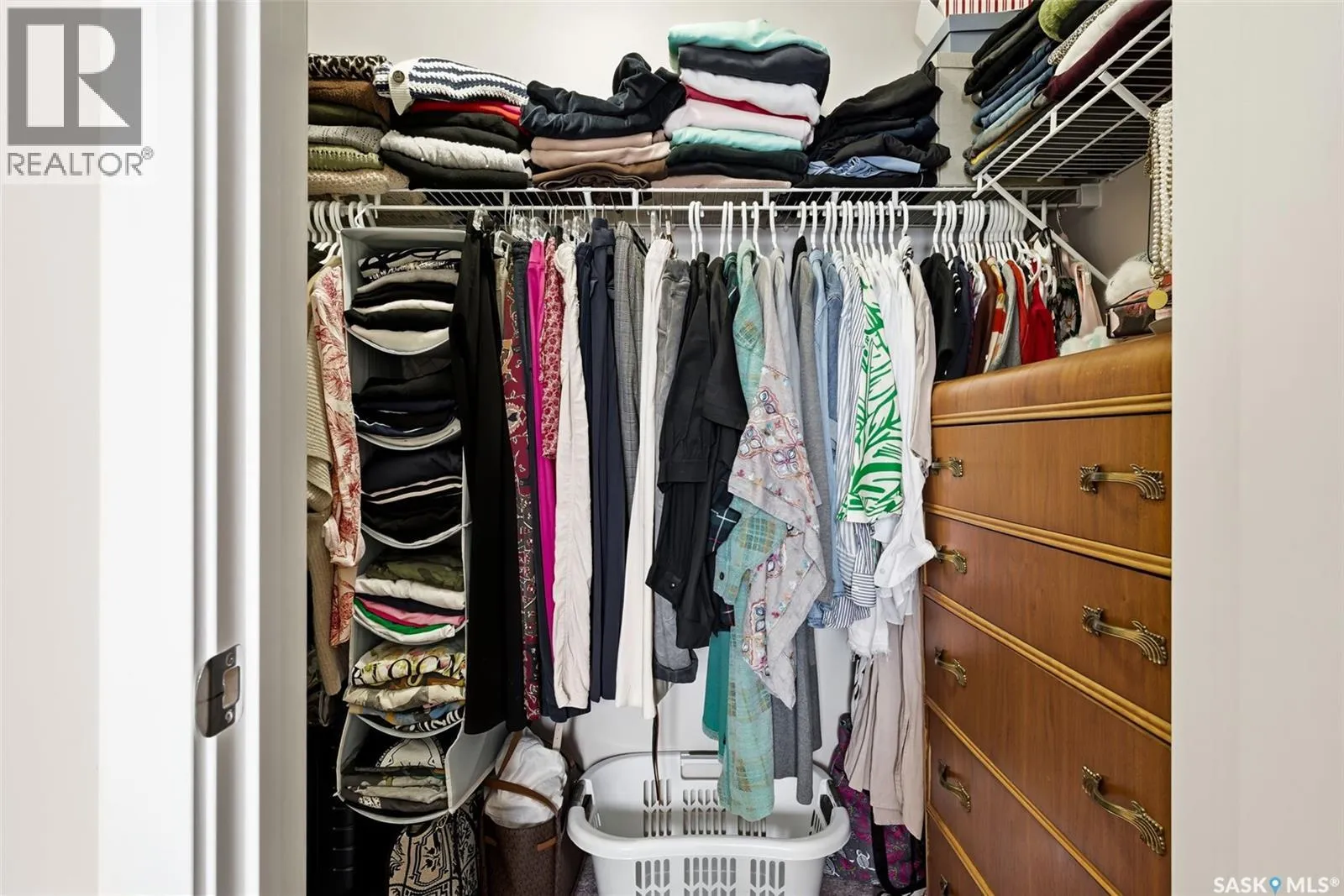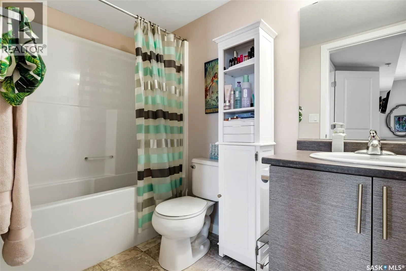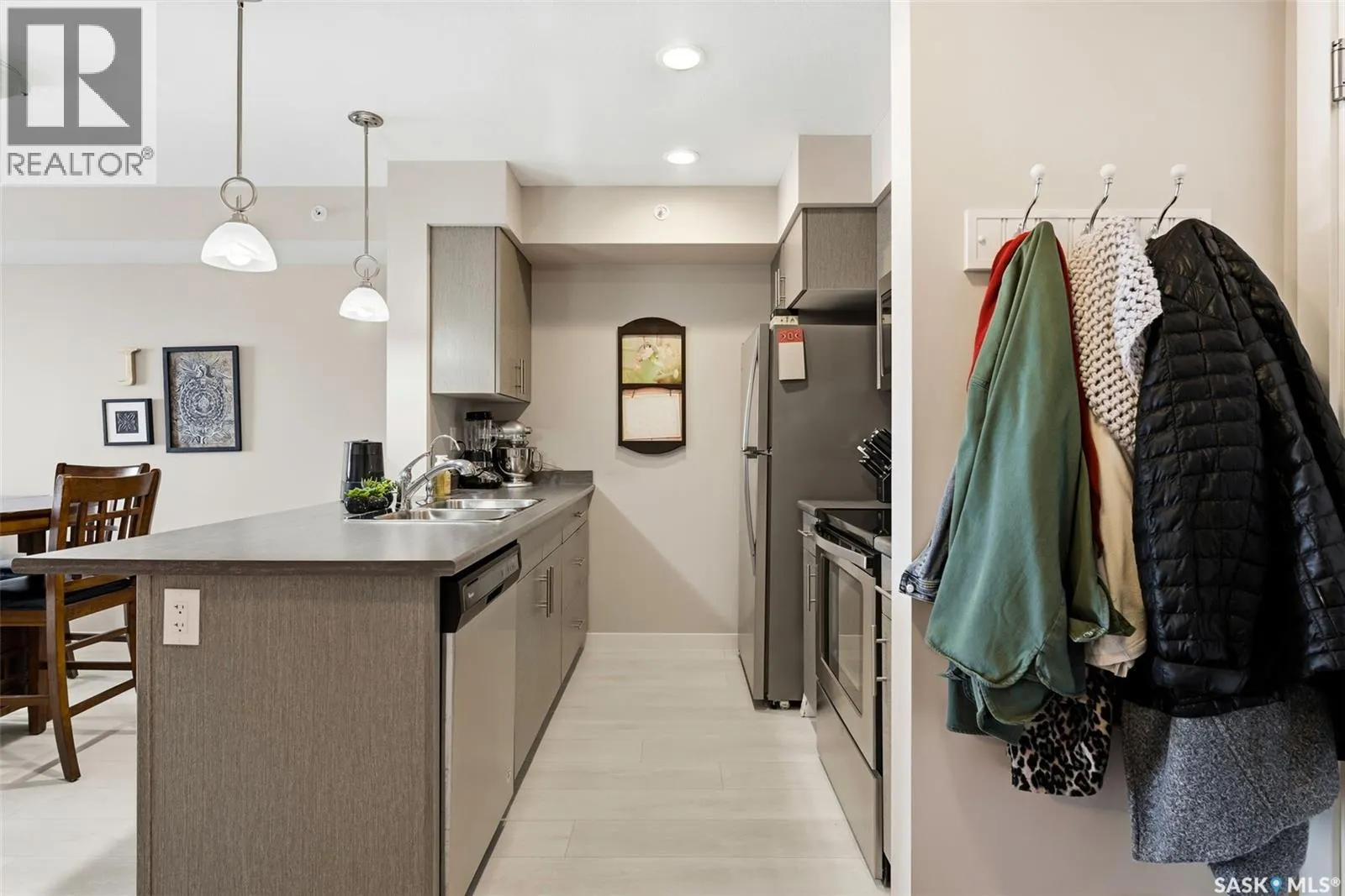 Welcome to #2418 â 5500 Mitchinson Way! This top-floor condo truly shows like no otherâno upstairs neighbours and flooded with natural light thanks to its south-facing exposure. From the moment you step inside, youâre greeted by light, airy flooring and a bright, welcoming atmosphere that instantly feels like home. The thoughtfully designed layout offers an open-concept living and dining space thatâs both cozy and functional. The well-maintained galley kitchen features stainless steel appliances and a convenient counter overhangâperfect for casual meals, working from home, or entertaining. The living room is filled with sunshine and includes large patio doors that lead out to the balcony, an ideal spot to enjoy your morning coffee or curl up with a good book. Just off the kitchen is a conveniently located 4-piece bathroom for guests and everyday use. The secondary bedroom is generously sized and versatileâperfect as a guest room, home office, or rec space. The primary bedroom offers a walk-in closet and a private ensuite, creating a comfortable retreat at the end of the day. Additional highlights include in-suite laundry, underground parking, and a storage unit located directly in front of the parking stallâan incredibly convenient bonus. This professionally managed complex offers exceptional value, with condo fees that include: heat, water, sewer, snow removal, lawn care, garbage, common area and exterior maintenance, insurance (common), reserve fund contributions, elevator access, visitor parking, and access to a BBQ/entertainment area. This charming, well-planned condo is the perfect place to settle in and enjoy a bright, carefree condo lifestyle. (id:27476)