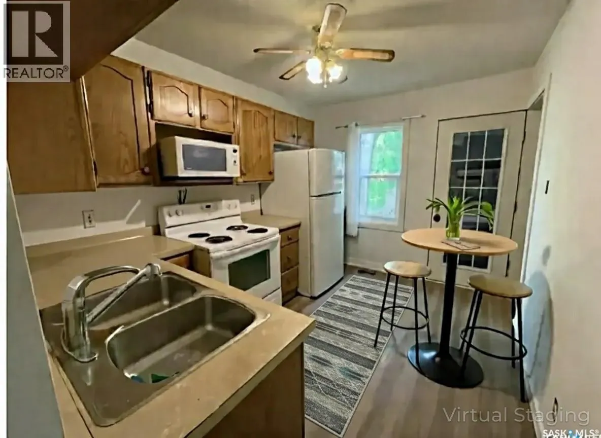 Great Starter or revenue with a great location 2-3 short blocks to Maple Leaf pool and the General Hospital. Walk to downtown or Wascana Park and enjoy easy access to all areas of the city. The private back yard of this oversized (29') lot has almost a full canopy of shade and leads to the oversized double garage. The garage has natural gas and 220 power running to it but requires Repair and has great potential!. Upgrades include newer flooring, PVC windows, shingles to the home, and lots more!! Some listing pictures are virtually staged for design ideas Call your Realtor today to schedule a person viewing (id:27476)