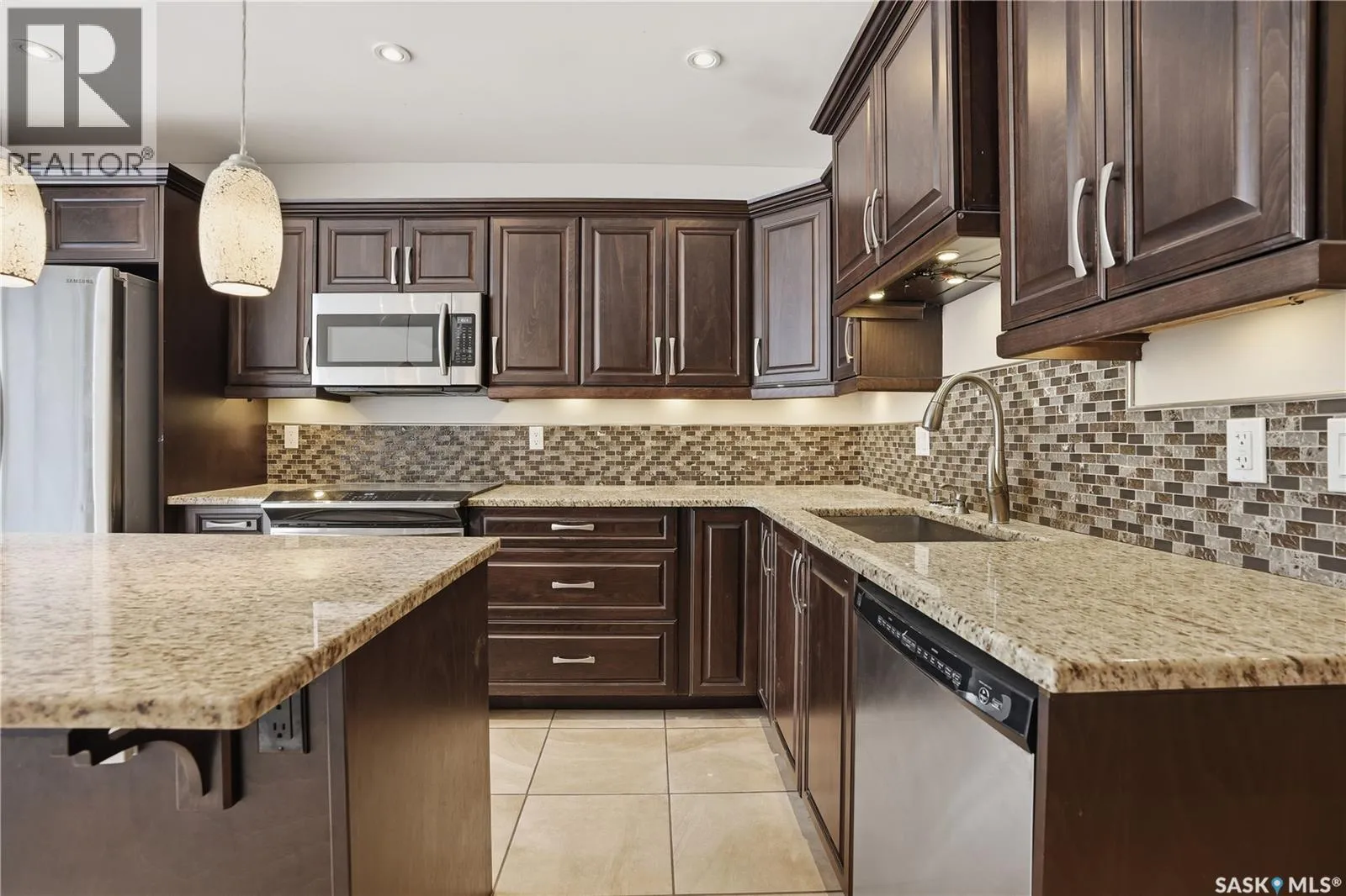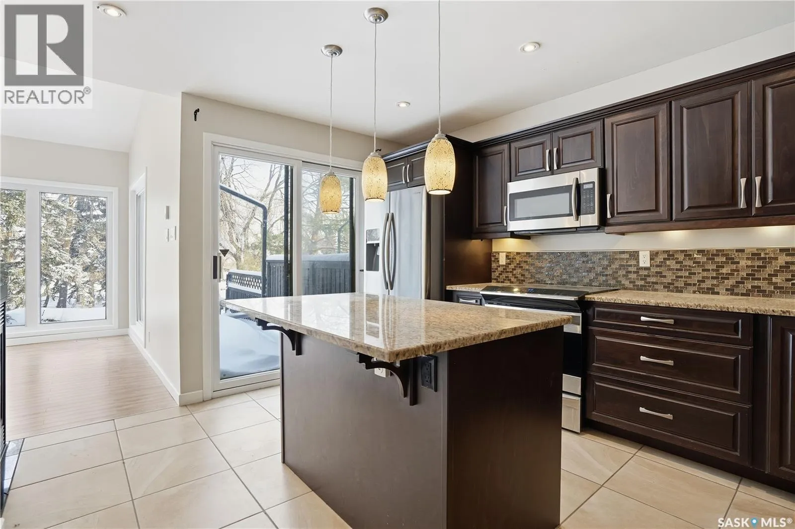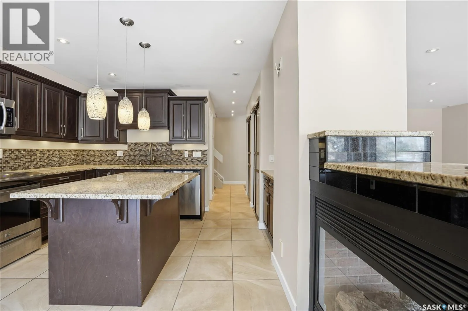 Welcome to 19 Martin Crescent. Rare opportunity to own an over 2,000 sq ft semi detached split level condo on a quiet crescent and backing directly onto park space with views toward Wascana Parkway and Wascana Lake. Enjoy privacy with no rear neighbours, while being within walking distance to the University of Regina and just a five minute drive to downtown, restaurants, and public transit. The main floor features a large foyer with French doors leading into a bright, open living space with 9 foot ceilings, large windows, and a three way natural gas fireplace. Patio doors open to a spacious deck and patio area with natural gas BBQ hookup. The dining area offers vaulted ceilings and heated floors, flowing into the kitchen complete with dark chocolate cabinetry, soft close drawers and doors, granite countertops, a large centre island, extra pantry and storage, phone nook, and heated flooring. Sliding doors off the kitchen lead to a second patio. A two piece bathroom and direct access to the rare heated double attached garage complete this level. The second level is dedicated to the primary retreat, featuring heated floors, a private deck, semi walk in closet with mirrored doors, and a spa like ensuite with heated floors, double glass shower, jet and soaker tub, and marble topped vanity with his and her sinks. The third level offers a cozy den, three additional good sized bedrooms, a full bathroom, and conveniently located laundry. The fully carpeted basement provides a large recreation area and an oversized storage room with extensive built in shelving. Freshly painted throughout with recently updated exterior siding. Additional features include central vacuum, included appliances, garage door opener with remotes, and access to condo amenities including a swimming pool, tennis court, and visitor parking. Condo fees are $687.67 per month and include exterior and common maintenance, water, sewer, snow removal, lawn care, reserve fund, and insurance. As per the Sellerâs direction, all offers will be presented on 01/26/2026 5:00PM. (id:27476)