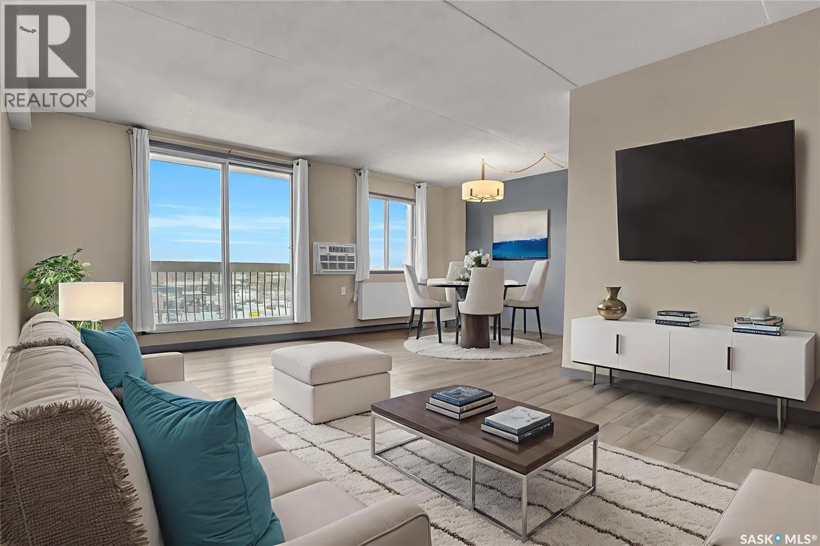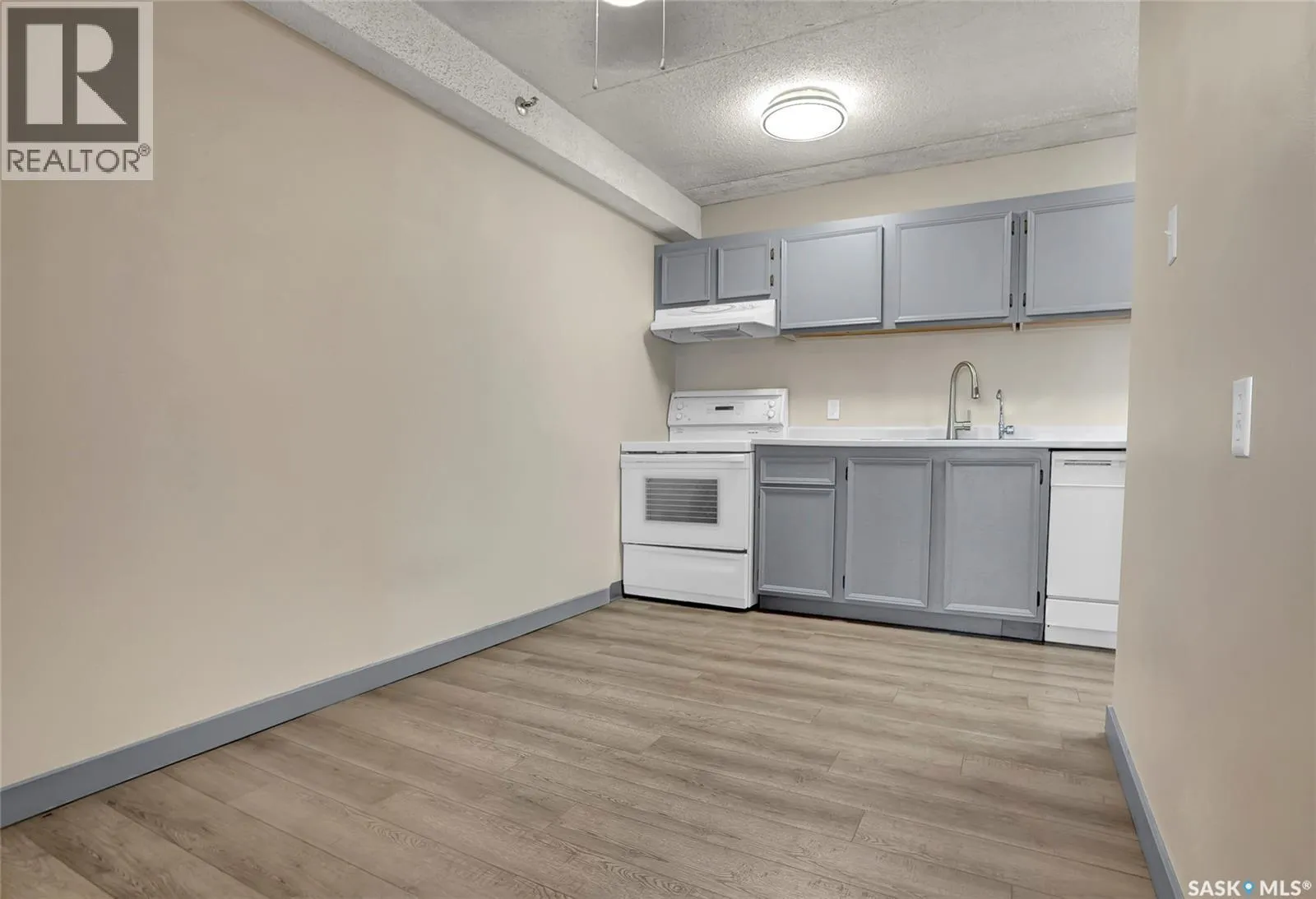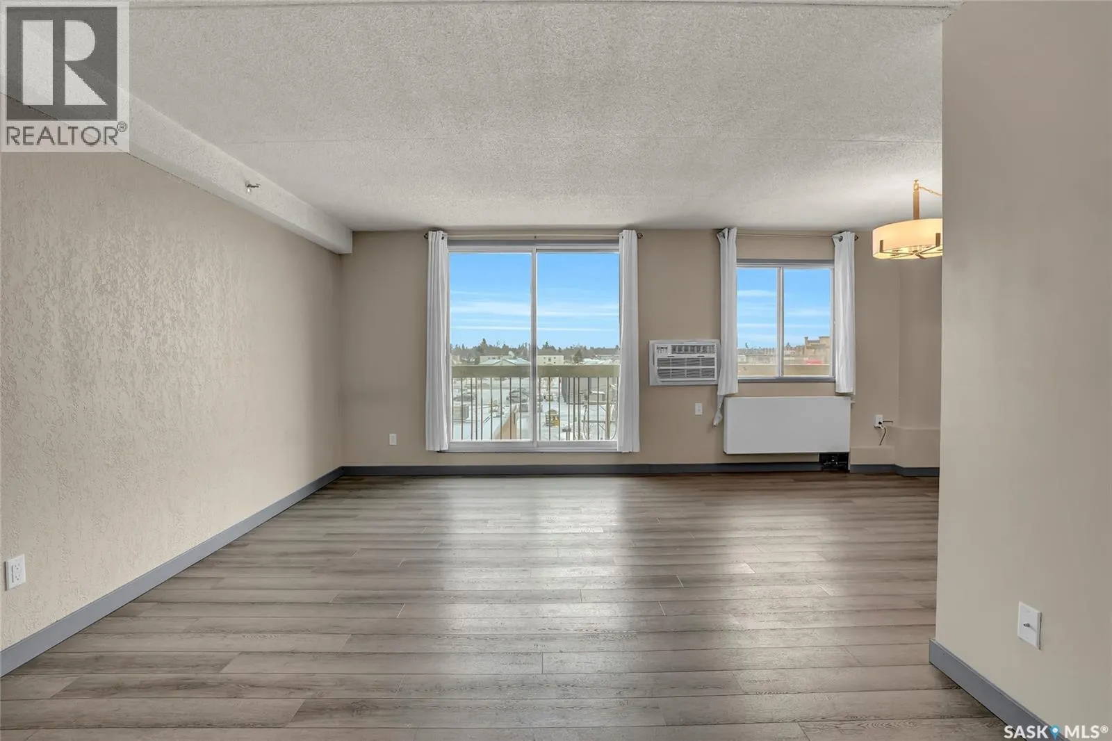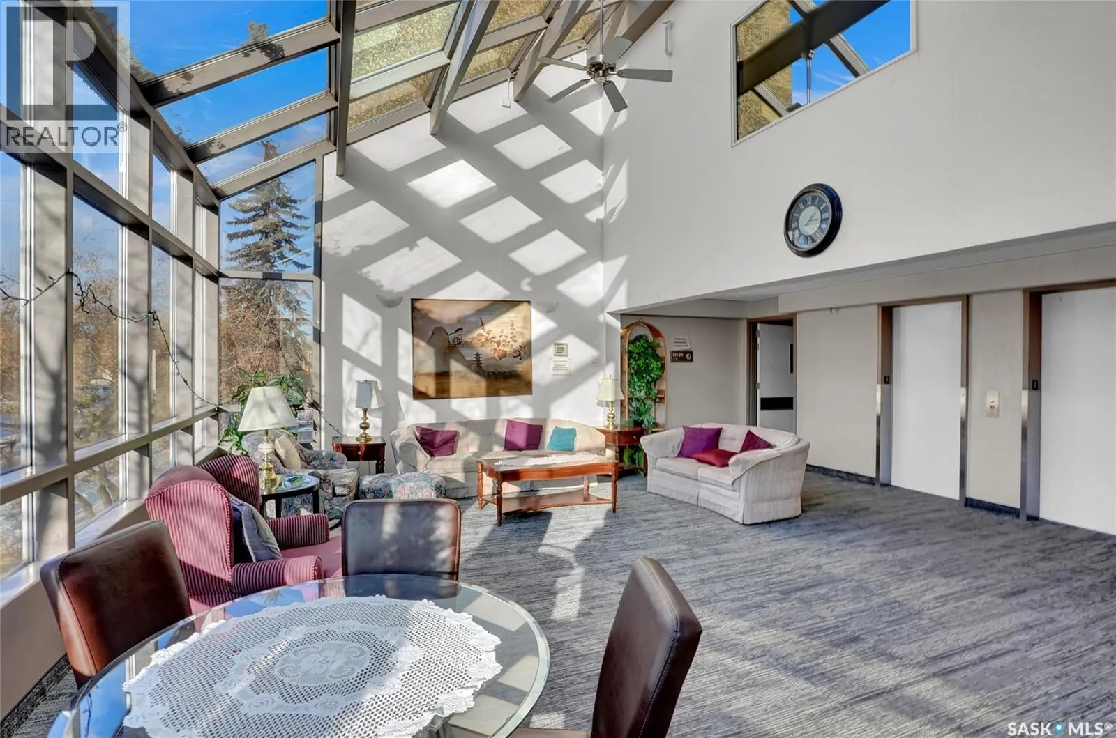The Atrium Condo Complex, located in a fantastic Southwest area of Regina in Parliament Place is an extremely well-maintained 2 bedroom apartment-style condo that offers both convenience & comfort. Its proximity to shopping, restaurants, & medical clinics makes it an ideal spot for those who enjoy city living. Perfect for 1st time buyers, downsizing & investors. This desirable location & condo complex is constructed from concrete, ensuring security & quietness for all residents. Additionally, it offers various shared spaces such as an amenities room, Atrium lounge on the 2nd floor, an exercise area, visitor parking & common laundry rooms as well is wheelchair accessible w/elevator and underground parking. This unit is situated on the 5th floor and provides great views from its expansive balcony, making it perfect for enjoying summer evenings. Welcome new vinyl floor plank flooring that runs through the unit, creates a seamless connection in the open concept design. The living & formal dining areas enjoy large windows and patio doors to the balcony and are spacious. The dining area opens into the casual dining nook that connects to the galley style kitchen. All appliances are included. The kitchen even has a breakfast bar nook overlooking the living room which adds not only openness but extra workspace. Being one of the larger units in the building, there are 2 bedrooms with the primary bedroom boasting an oversized walk-in closet that offers additional storage space. Completing this unit is a 4pc. bath and a practical storage space which is perfect for pantry items. This condo combines practicality with elegance, making it a desirable choice for anyone looking to enjoy urban living with all the comforts of home in an affordable and prime location. (Some photos for Living, Dining and Bedrooms have been virtually staged to show space and possible furniture arrangements). CLICK ON THE MULTI MEDIA LINK FOR A FULL VISUAL TOUR and call today for a personal tour. (id:27476)
