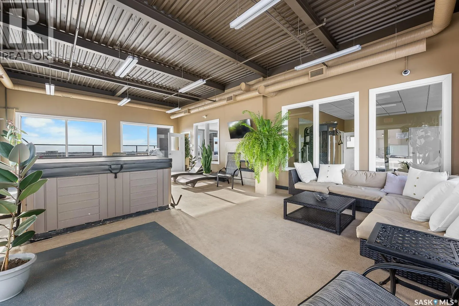 Welcome to 2055 Rose Street, Unit 602; located in Regina's Downtown District, this is a 1 bedroom + 1 den unit that have been renovated in recent years. Located just blocks away from shopping centers, restaurants, Wascana Park, and all the Downtown Regina amenities! This 6th floor corner unit features an amazing view, a modern open concept layout that is perfect for a young couple, business professional or the retired couple. Upon entering, you will find gorgeous hardwood floors throughout the living, dining and kitchen areas. The kitchen provides plenty of cabinet space for your day to day needs, stainless steel appliances, and tile backsplash, with quartz countertop finish. The large primary bedroom gives you the wow factor feeling with wrap around windows and features a 4-piece en-suite. There is also a good sized den, 2-piece bathroom, and in-suite laundry to complete the condo. The unit features a covered, spacious balcony and 2 underground, exclusive-use parking stalls. The exclusive clubhouse for condo residents is conveniently located on the top of the building which features a hot tub, private function room, and gym. Condo fees include heat, water, sewer, exterior and interior building maintenance, snow removal, building insurance, and reserve fund contributions. (id:27476)