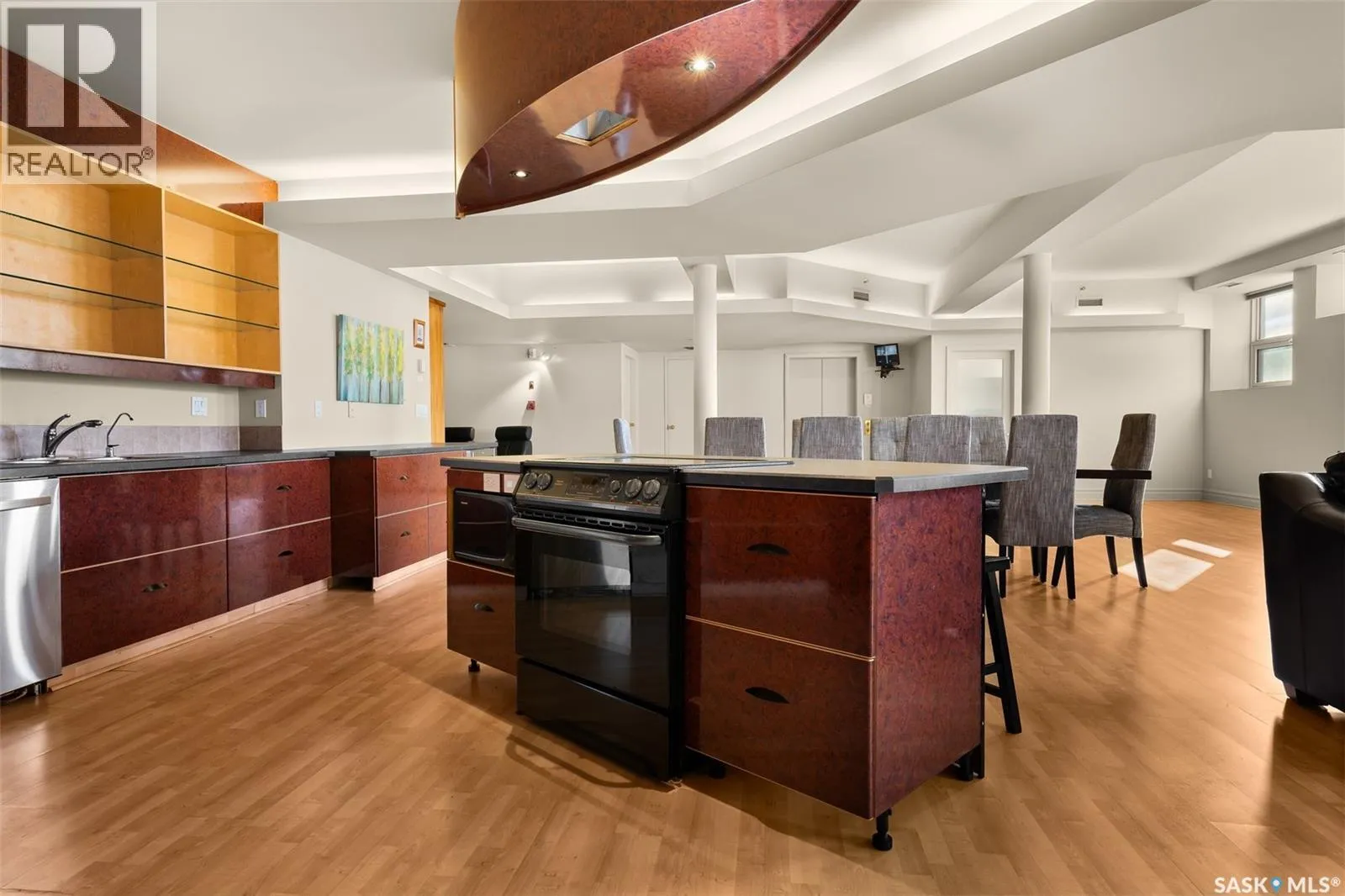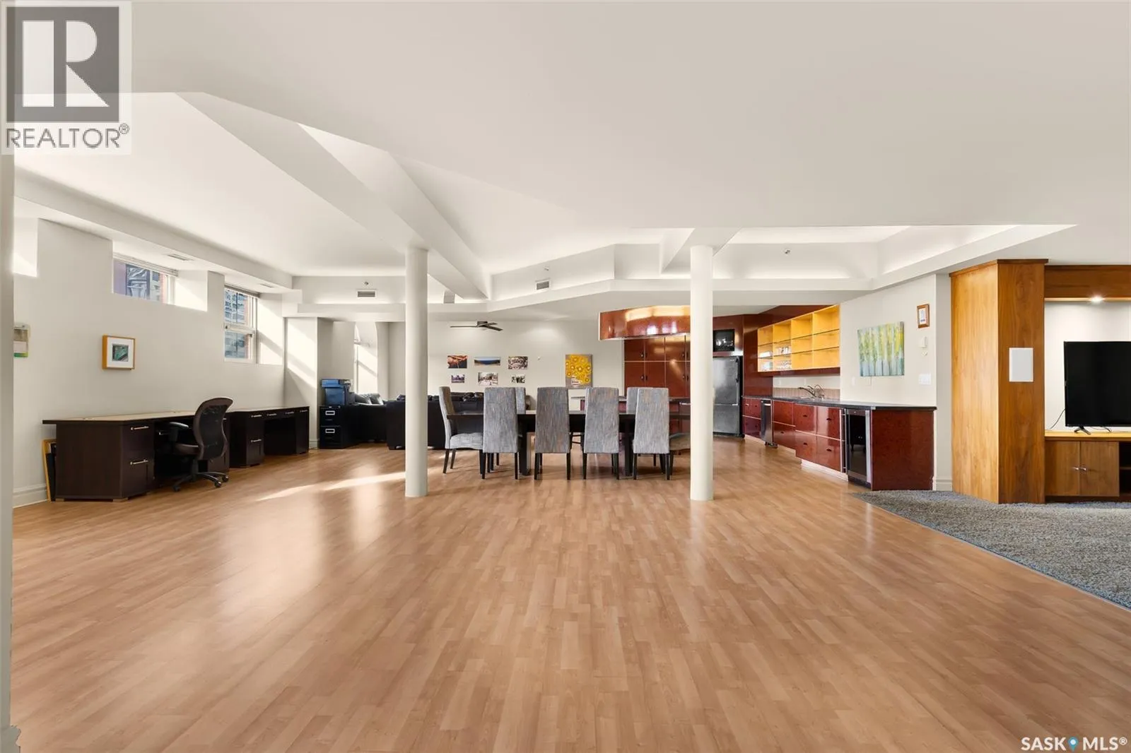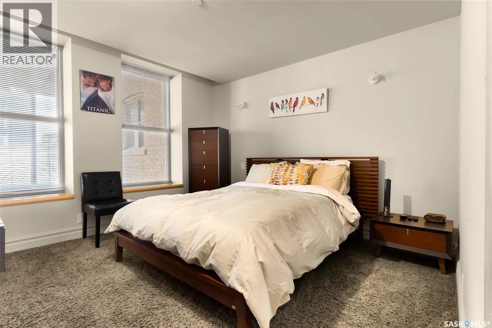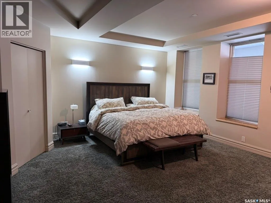 Experience executive loft living in the iconic Northern Bank Building, a historic landmark set in one of downtownâs most sought after locations. Step off the private elevator directly into 2,532 square feet of open, airy living space designed for both entertaining and everyday comfort. This expansive residence features an open concept kitchen, dining, and living area, complemented by a dedicated theatre room, making it perfect for movie nights or hosting guests. Offering three bedrooms and three bathrooms, the layout balances generous space with thoughtful functionality. The primary suite impresses with a massive walk-in closet and a spa like, five piece ensuite. The second bedroom enjoys its own private three piece bathroom, while a spacious front room easily serves as a home office or third bedroom. Additional highlights include in-suite laundry and storage, exclusive access to a rooftop patio on the adjacent building, and two parking stalls in the heated underground parkade. (id:27476)