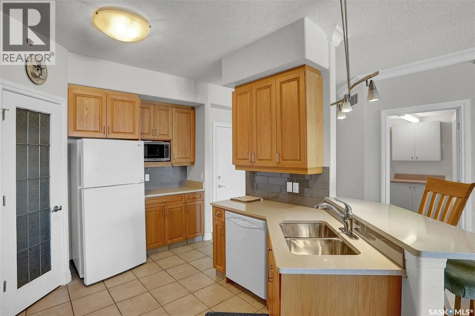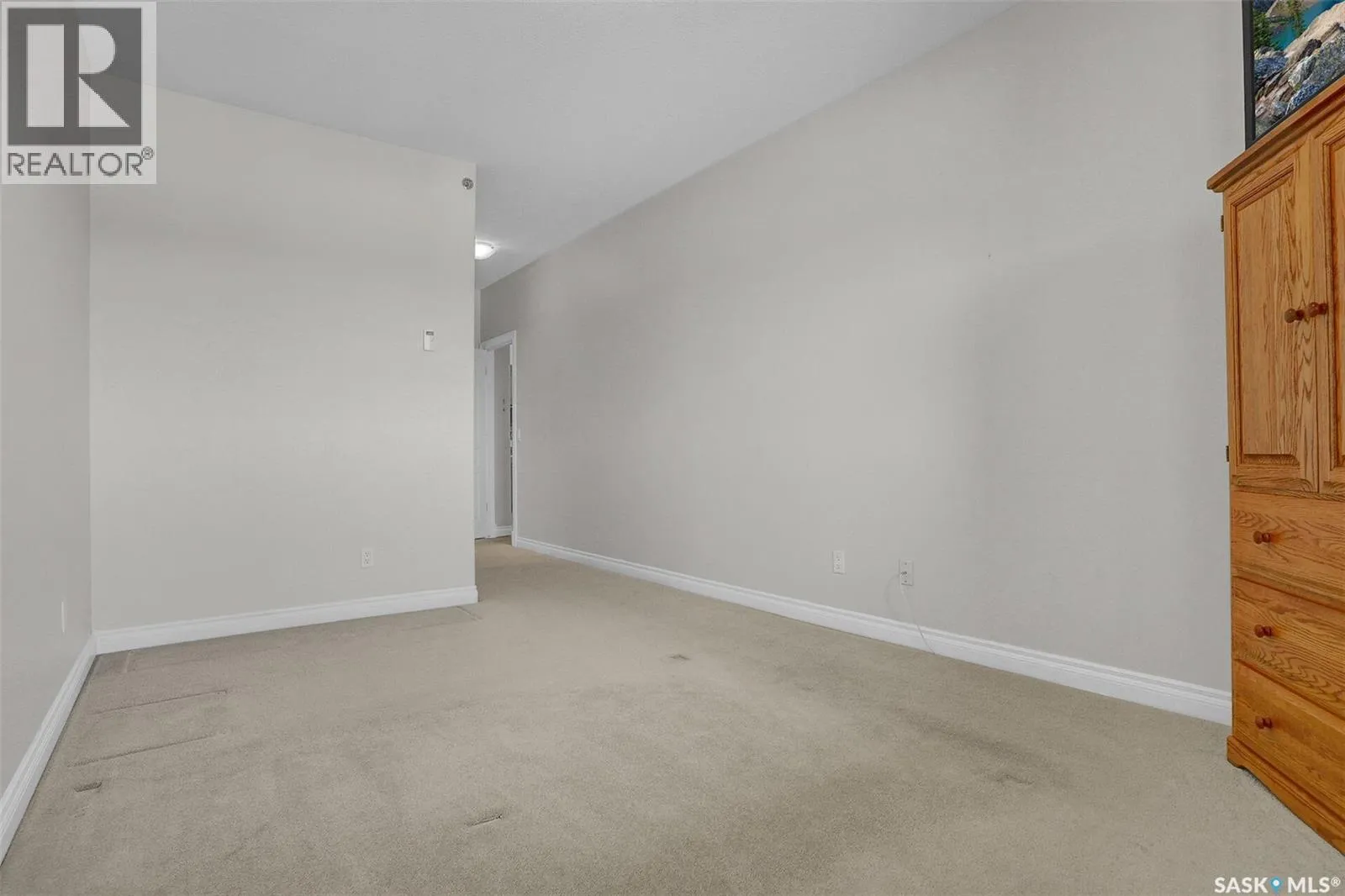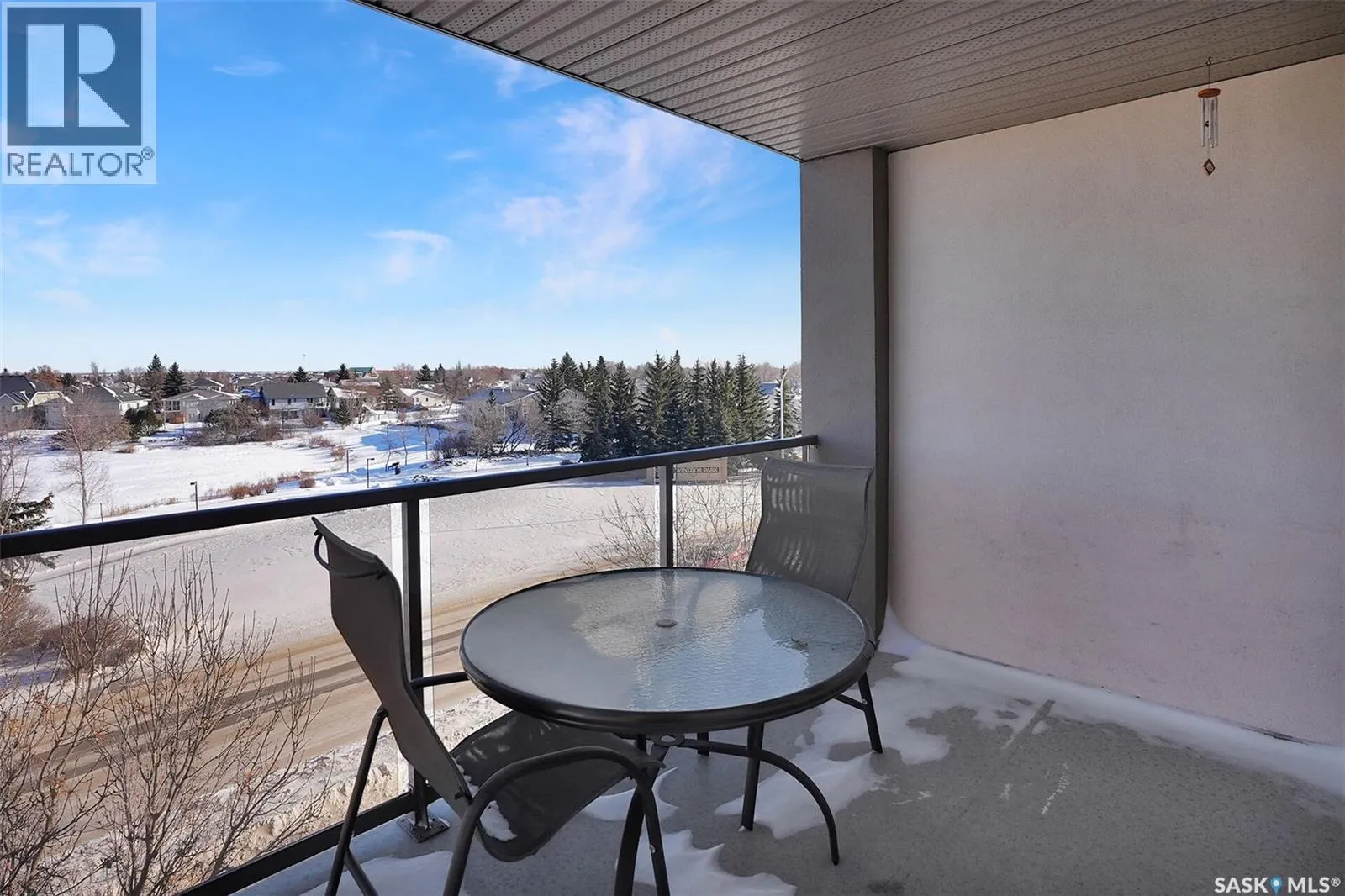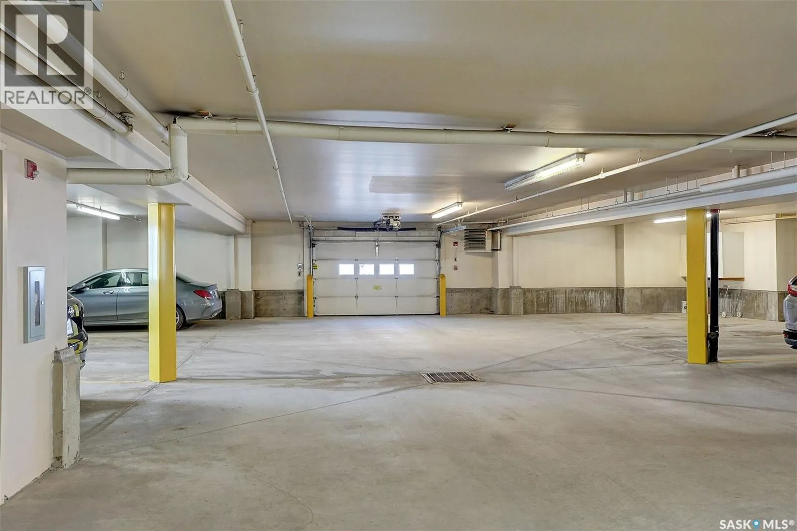 Welcome to this lovely top floor condo that offers 2 spacious bedrooms, 2 bathrooms, and 2 designated parking spots. This condo offers beautiful views of the lake, Sandra Schmirler Leisure Centre, all while being steps away to a coffee shop, library, walking paths, and more. A bright airy condo in an unbeatable location. This spacious and well- designed unit features a fantastic floorplan that is both functional and comfortable. The kitchen is a standout with solid wood cabinets, upgraded granite countertops, ample storage, and a sit up peninsula island â that is perfect for casual dining, and entertaining. The living room and dining area are perfect to relax and enjoy family gatherings. The primary bedroom offers a large walk- in closet and a 4pc ensuite. The 2nd bedroom is spacious and there is a 2nd main 4pc bathroom. You will enjoy the convenience of in suite laundry with storage room. Just off the living area, is access to your private balcony where you can take in the beautiful scenic views, extending your living space outdoors. The condo has been freshly painted and is truly move in ready. There is an additional storage room located on the same floor. The parkade is located on the main floor and includes a wash bay for all residents to use. The building offers a games room, and amenities room. Extremely well maintained, and ready for a new owner, this condo offers an undeniable presence rarely found in the market. Condo fees include: Heat, Water, Sewer, Building Insurance, Common Exterior and Interior maintenance, Lawn Care, Snow Removal and Reserve Fund. (id:27476)