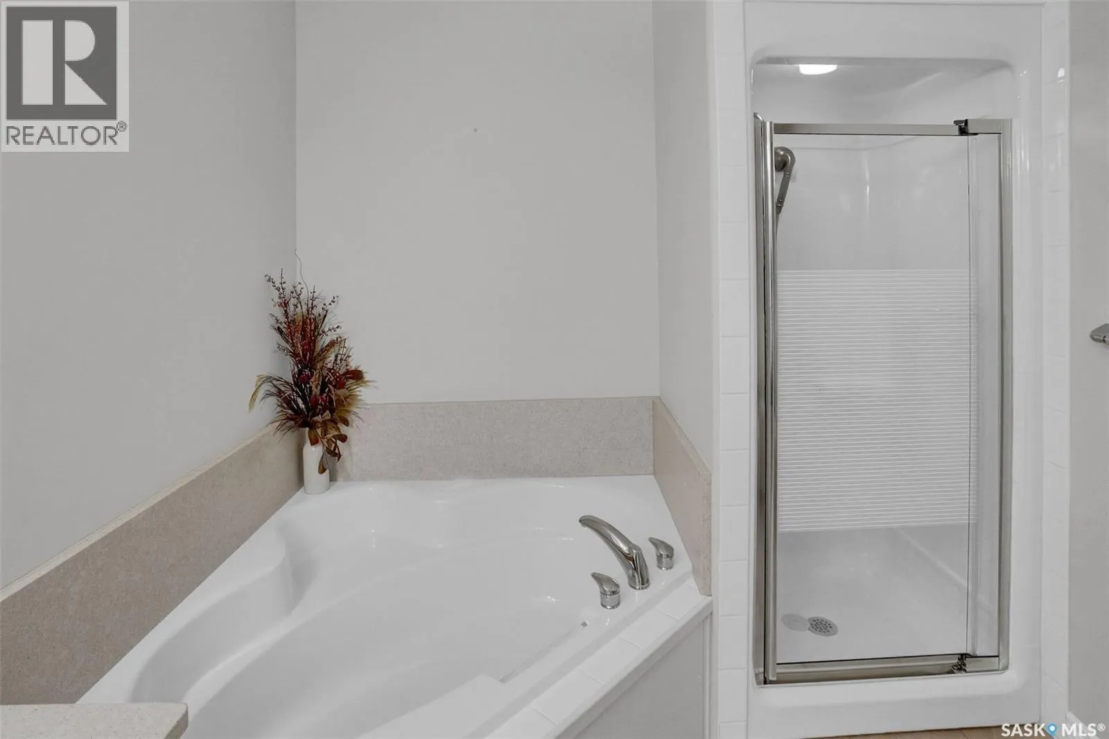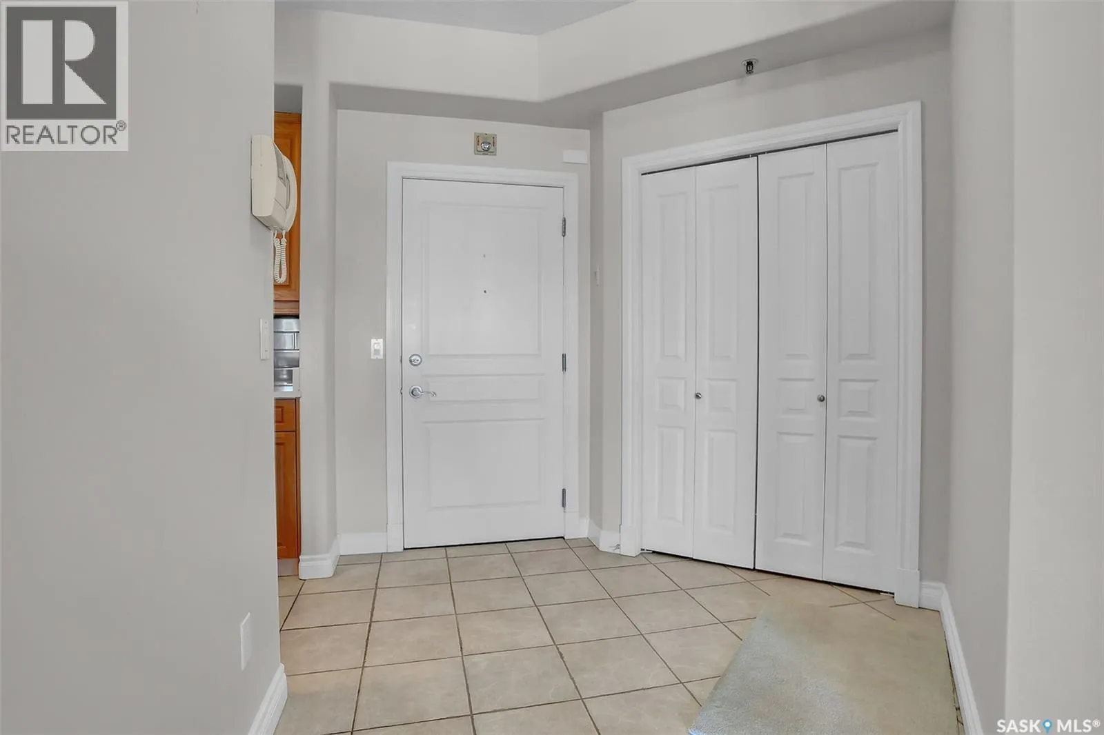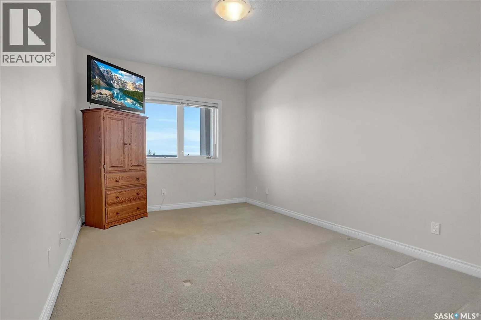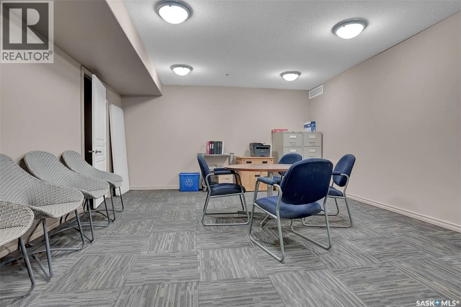 Welcome to this lovely top floor condo that offers 2 spacious bedrooms, 2 bathrooms, and 2 designated parking spots. This condo offers beautiful views of the lake, Sandra Schmirler Leisure Centre, all while being steps away to a coffee shop, library, walking paths, and more. A bright airy condo in an unbeatable location. This spacious and well- designed unit features a fantastic floorplan that is both functional and comfortable. The kitchen is a standout with solid wood cabinets, upgraded granite countertops, ample storage, and a sit up peninsula island â that is perfect for casual dining, and entertaining. The living room and dining area are perfect to relax and enjoy family gatherings. The primary bedroom offers a large walk- in closet and a 4pc ensuite. The 2nd bedroom is spacious and there is a 2nd main 4pc bathroom. You will enjoy the convenience of in suite laundry with storage room. Just off the living area, is access to your private balcony where you can take in the beautiful scenic views, extending your living space outdoors. The condo has been freshly painted and is truly move in ready. There is an additional storage room located on the same floor. The parkade is located on the main floor and includes a wash bay for all residents to use. The building offers a games room, and amenities room. Extremely well maintained, and ready for a new owner, this condo offers an undeniable presence rarely found in the market. Condo fees include: Heat, Water, Sewer, Building Insurance, Common Exterior and Interior maintenance, Lawn Care, Snow Removal and Reserve Fund. (id:27476)