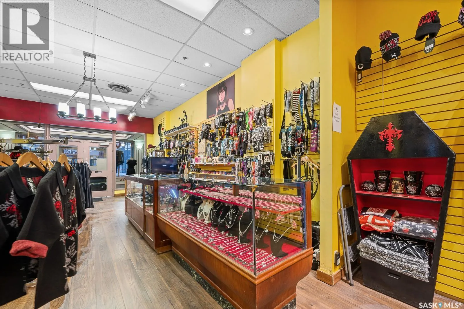 Rare opportunity for purchase 1,250 sq. ft. retail space currently used as women's fashion boutique store. Prime location and ideal for all general retail use. Features a bright showroom, cash counter, fitting room, washroom, and a full basement for storage. Located in the heated Scarth Street Pedway with 24/7 security by Harvard Development. Enjoy being downtown Regina and benefit from high foot traffic and nearby amenities. This property is an excellent home for your business venture. Current existing inventory and business can be for purchase as well. (id:27476)