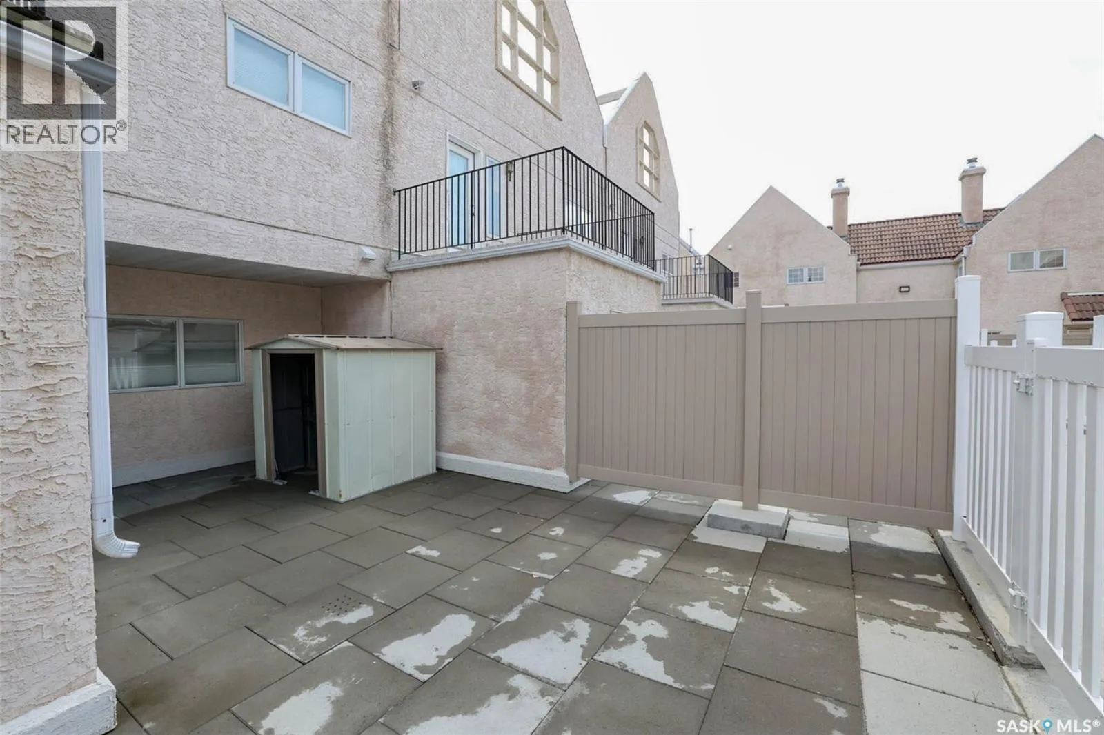 Quick Possession, Pet Friendly! Meticulously maintained 1870 sq ft condo with many recent upgrades. Gorgeous, lush landscaping greets you with raised new front decks and outdoor seating area overlooking greenspace. Like new condition the main level is perfect for entertaining, featuring an open-concept living and dining area that flows seamlessly into the functional kitchen with upgraded appliances, garburator, plenty of cabinet and counter space and built in desk. Newer luxury vinyl plank runs throughout the main living areas. Upgraded modern gas fireplace feature wall and large newer picture window flood the space with natural light and offers a view onto adjacent open area. Handy 2pc bath and very large rear multi-purpose room perfect for home office, gym area or mudroom has rear yard access to enclosed courtyard patio. Under stair storage offers additional space for larger items. New carpet leads to 2nd level featuring massive primary suite with 3pc ensuite with soaker tub, gorgeous hardwood floors and large walk-in closet. 2 additional bedrooms also with new carpet are generous in size along with an updated full bath complete the 2nd One more level up you will find the rooftop patio (with additional waterproofing added) offering even more outdoor space is waiting for your perfect potted garden, sunbathing or entertaining and dining space. Direct access to the heated underground parking garage with 2 stalls, wash bay and large storage room. Many upgrades including new Hunter Douglas blinds throughout (some on remote) new stove, luxury vinyl plank, carpet and toilets. Complex has had many recent upgrades and ideally located close to schools, U of R, bike and walking paths, bus stop right out front allows easy access east side shopping, downtown and University. Perfect for an executive with also enough space for a family. Truly a pleasure to show, quick poss available. Call today! (id:27476)