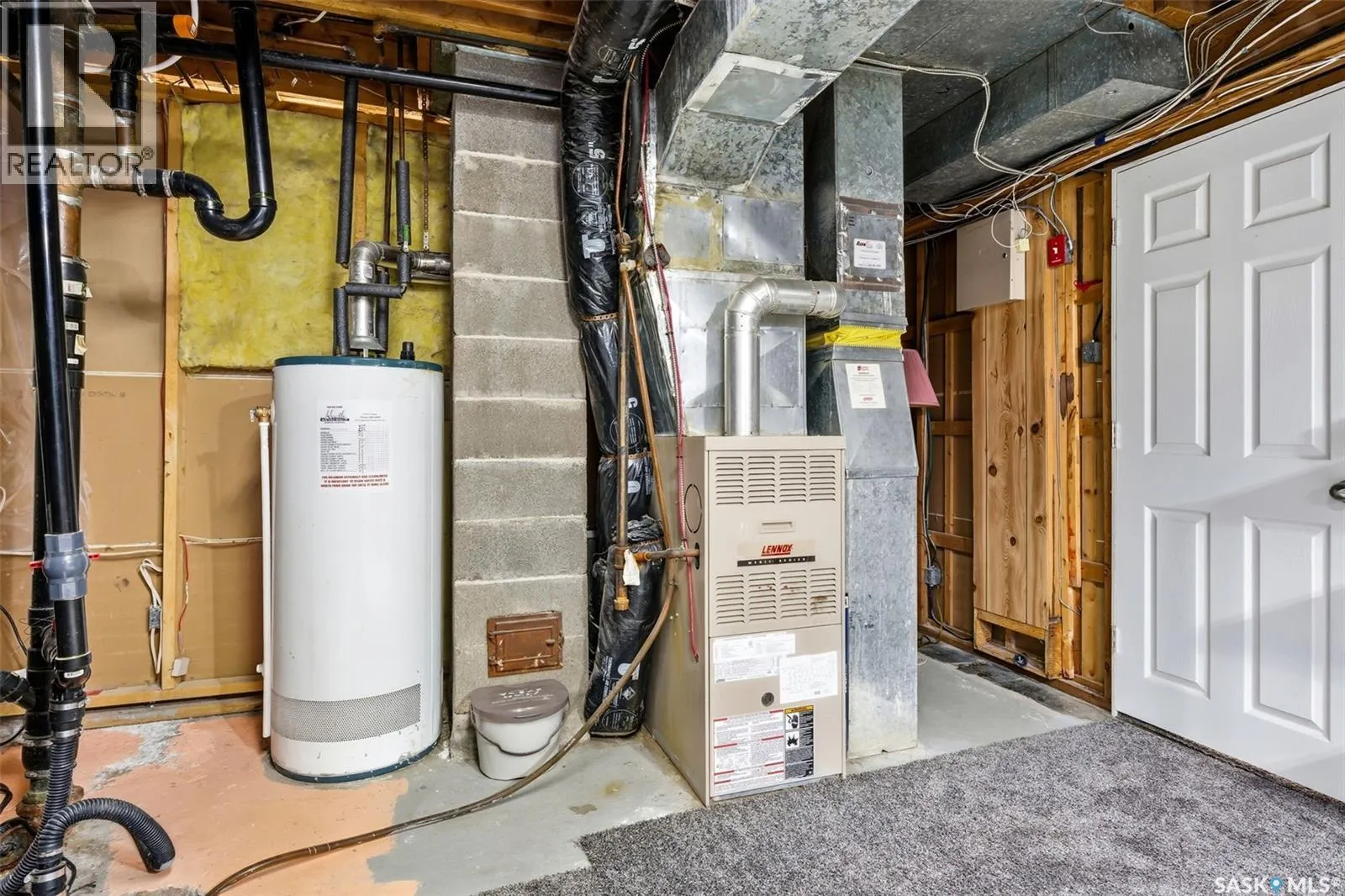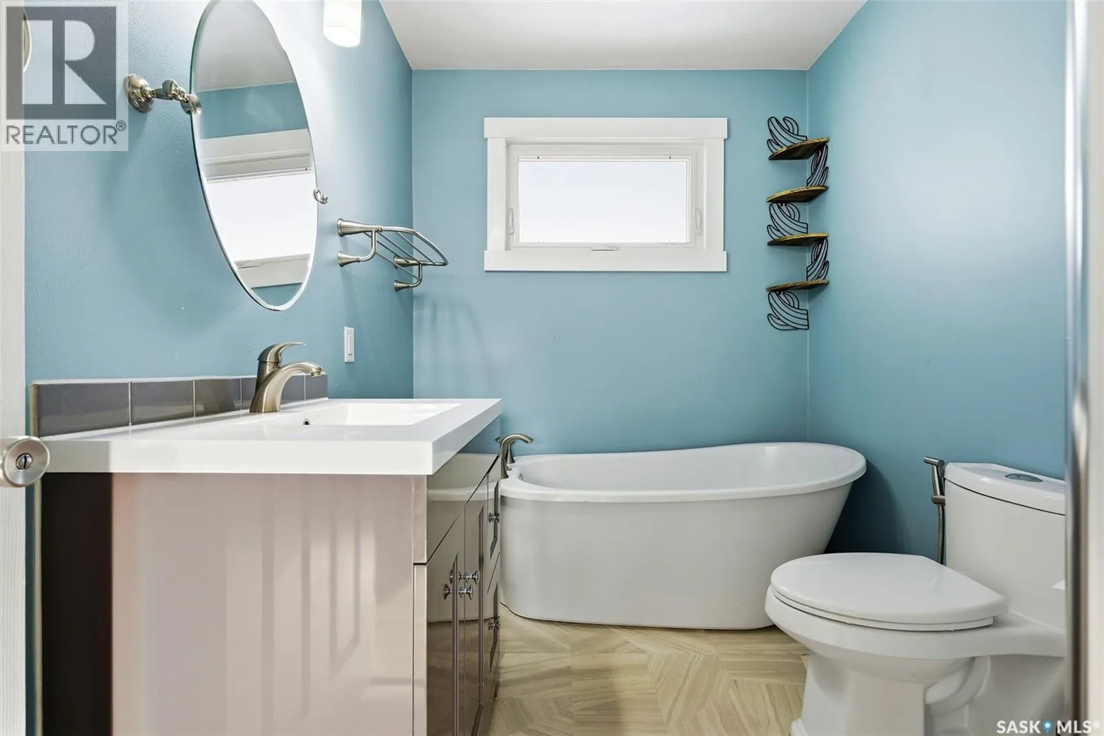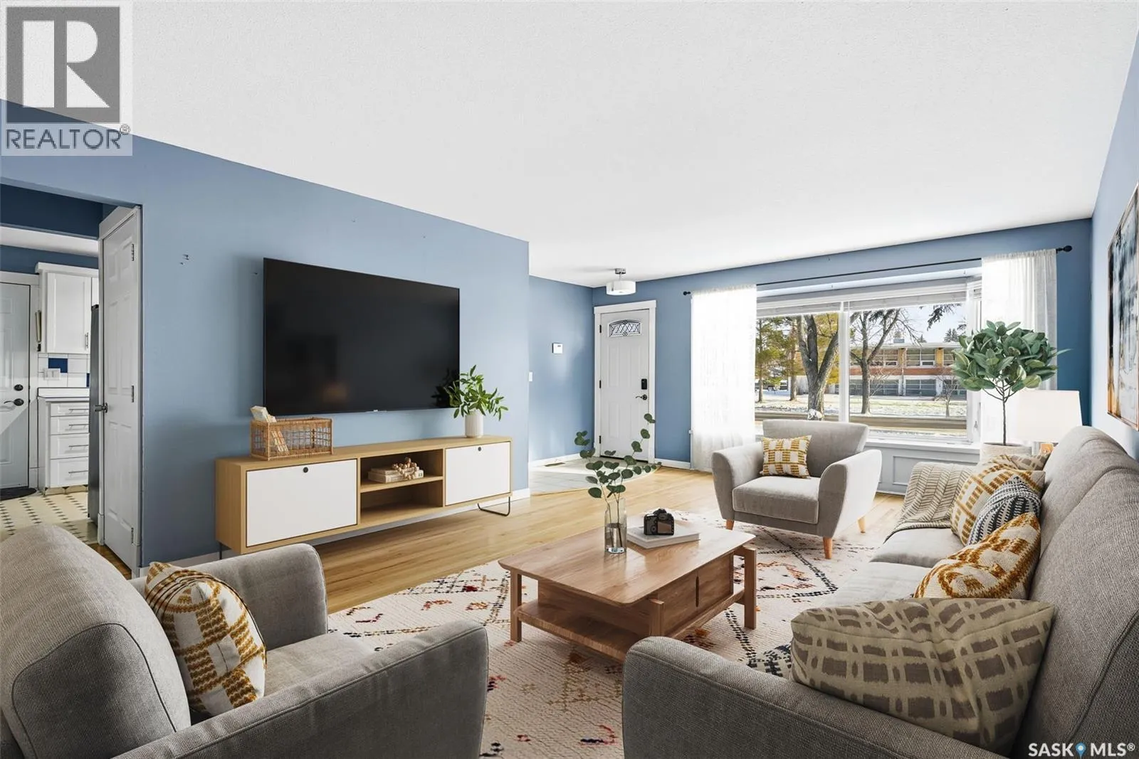 Beautiful 4-bedroom, 2-bathroom bungalow in the heart of Whitmore Park. This well-kept 1,134 sq ft home offers great curb appeal, an attached single garage (converted from a carport in 2024), and a long list of updates completed by both the previous and current owners. Recent improvements include: windows, window treatments, kitchen cabinet doors, backflow valve, front and backyard landscaping, and a concrete driveway (2018). Additional upgrades by the current owner feature LG ThinQ dishwasher, washer, and dryer (2022), stainless steel deep laundry sink, over-the-range microwave (2022), closet shelving (2022), LG ThinQ stove (2024), basement window (2024), roof professionally cleaned (2023), regrading completed in 2024, and the 2024 carport-to-garage conversion. Inside, you are welcomed by a spacious living room highlighted by large windows that fill the space with natural light. The kitchen and dining area are thoughtfully separated from the main living space, offering added privacy. The main floor features hardwood flooring throughout, three generous bedrooms, and a 4-piece bathroom complete with a deep soaker tub. The primary bedroom boasts a large window and excellent natural light. The professionally developed full basement adds even more versatility, offering an additional bedroom, a recreation room, a bonus room, and a 3-piece bathroomâideal for extended family, guests, or extra living space. Located in the highly desired neighbourhood of Whitmore Park, this home is close to multiple schools, the University of Regina, and a wide range of south-end amenities including restaurants, Southland Mall, gas stations, and grocery options. The concrete double driveway provides ample parking, while the lovely fenced backyard and side deck offer a perfect space for gardening, relaxing, and family gatherings. A wonderful opportunity in a fantastic location. A must-see. (id:27476)