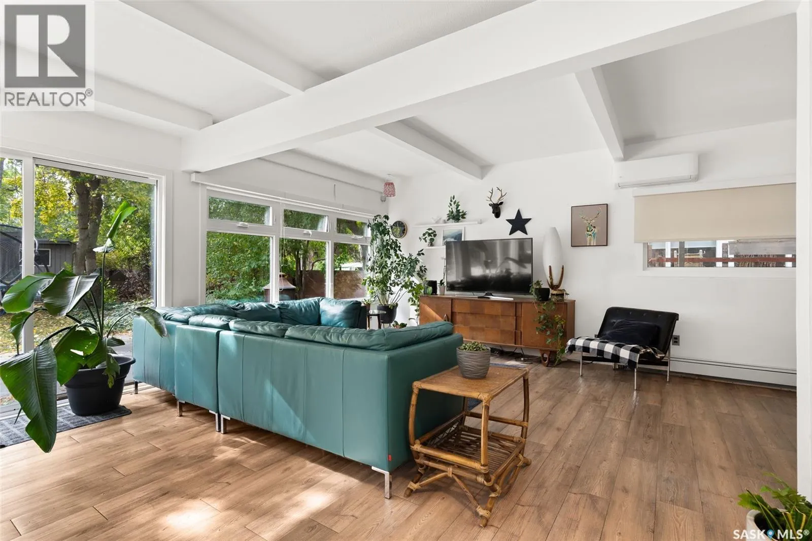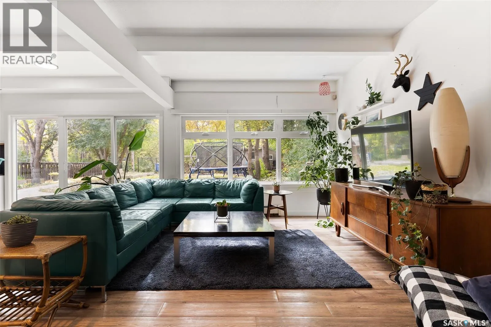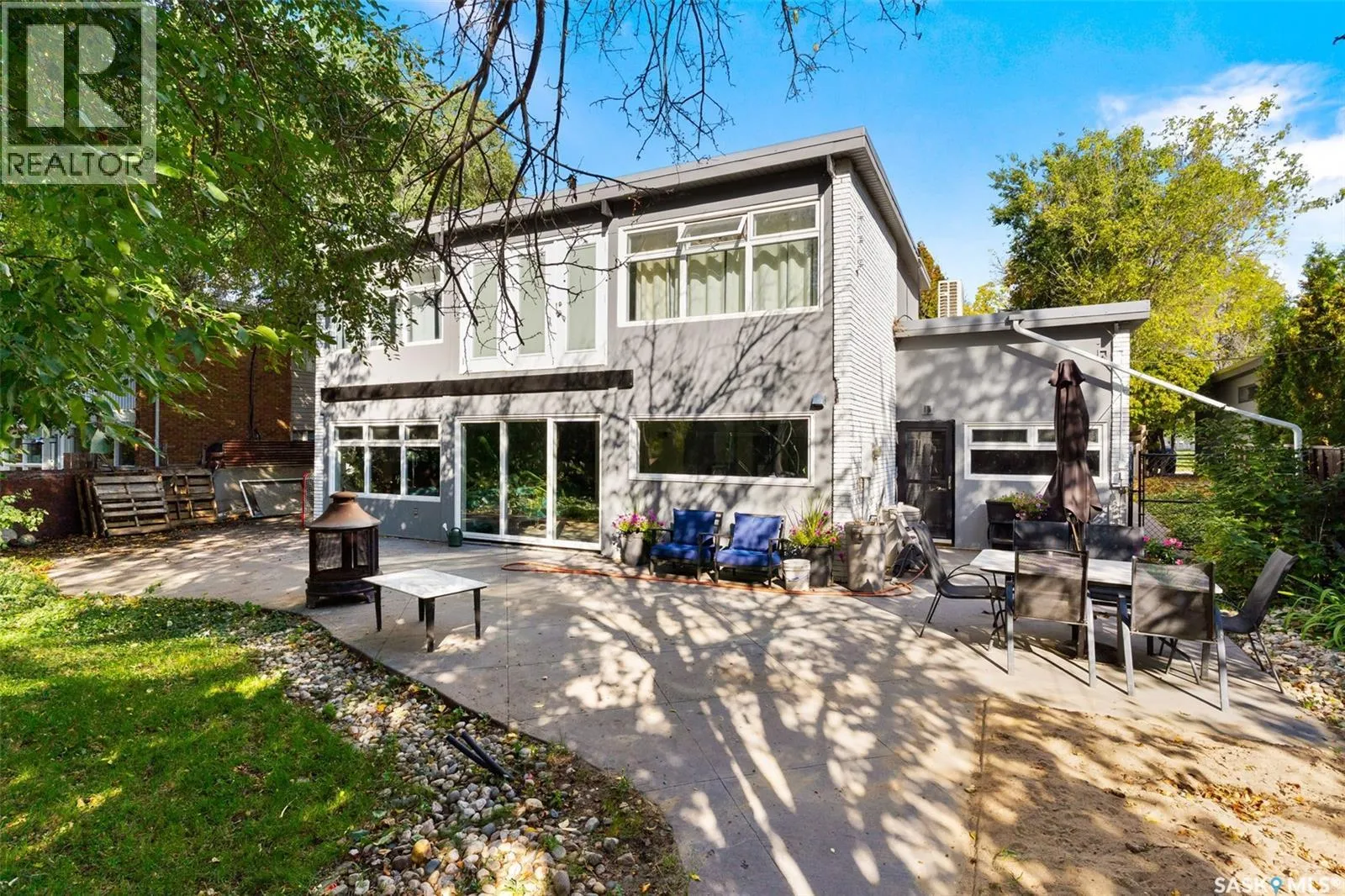 Welcome to 3051 Quinn Drive, a beautifully updated mid-century modern home in Reginaâs desirable Arnhem Place neighbourhood. This rare property is steps away from the lush green spaces of Wascana Park, offering unmatched access to walking trails, playgrounds, and the lake just steps from your door. This split-level home boasts over 2,500 sq. ft. of living space with an open-concept design, exposed beams, and oversized windows that fill the home with natural light. The stylish kitchen features quartz countertops, modern cabinetry, stainless steel appliances, a gas range, and a large island with seating. Multiple living areas, including a sun-filled living room and lower-level family/media room, provide flexibility for both relaxation and entertaining. The home offers 3 bedrooms and 3 bathrooms, including a spacious primary suite and updated spa-like bathrooms. A sauna, versatile recreation spaces, and contemporary finishes enhance everyday comfort. Outdoors, the private backyard is a true retreat with mature trees, a large patio, raised garden beds, and room for kids to play. The property also includes a double attached garage and additional driveway parking. Located in one of Reginaâs most sought-after areas, youâll enjoy the perfect balance of nature and convenience, with schools, downtown, and amenities all nearby. Donât miss this opportunity to own a one-of-a-kind home in an incredible park-side location! (id:27476)