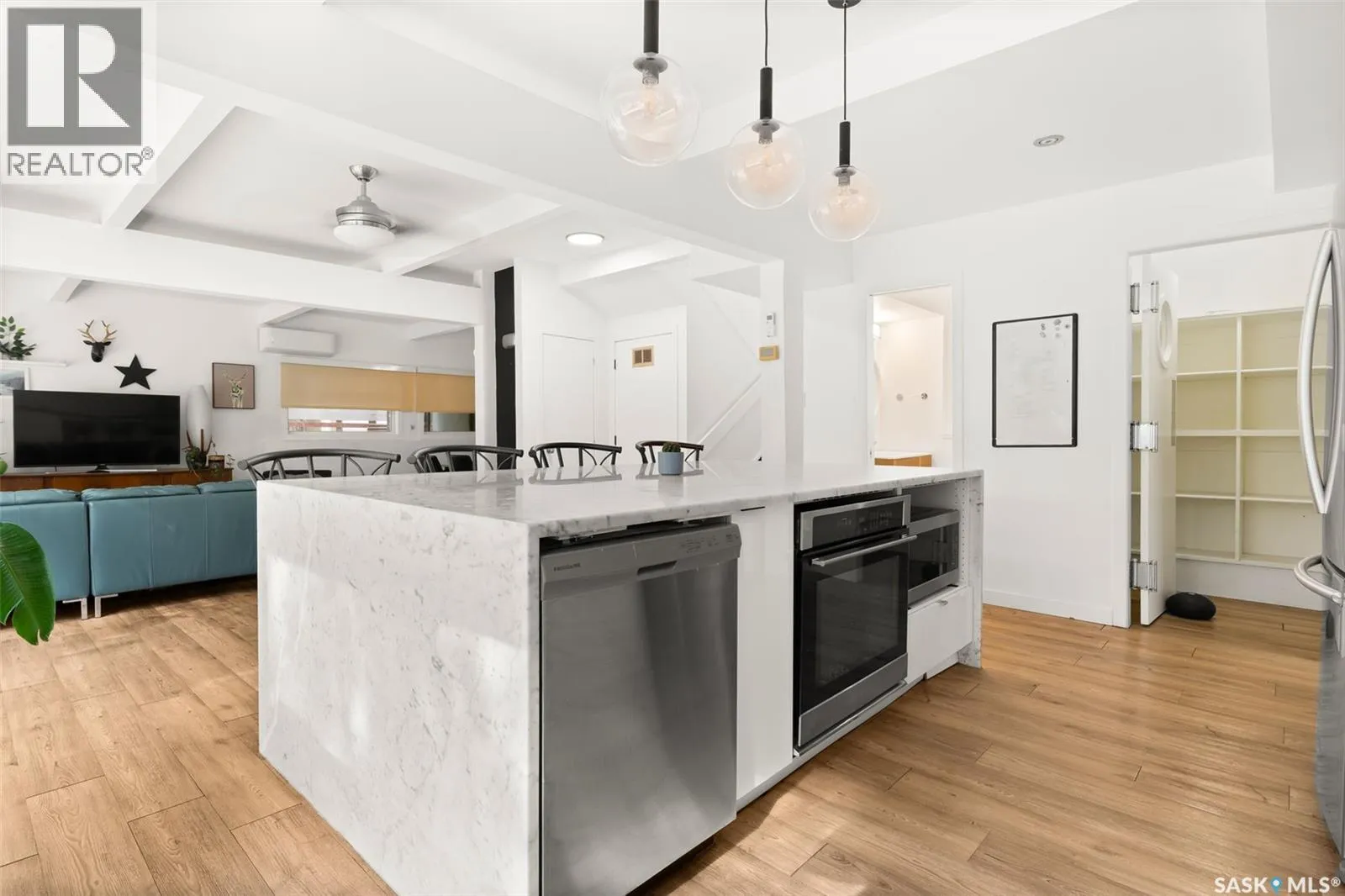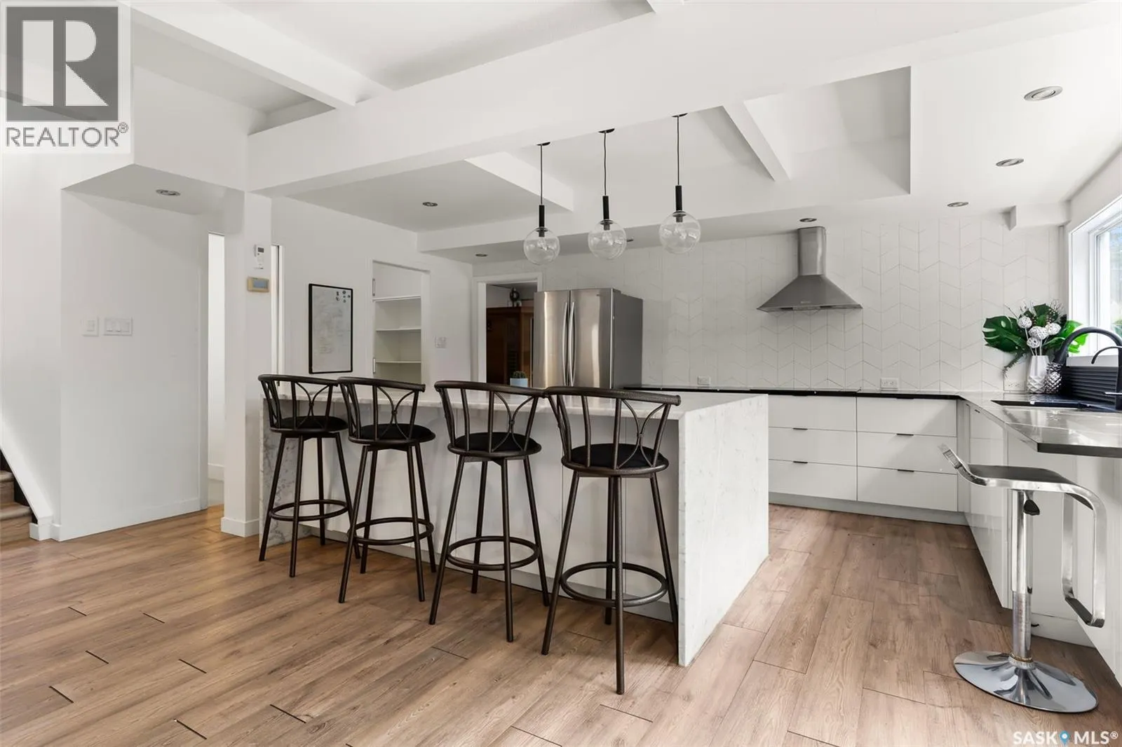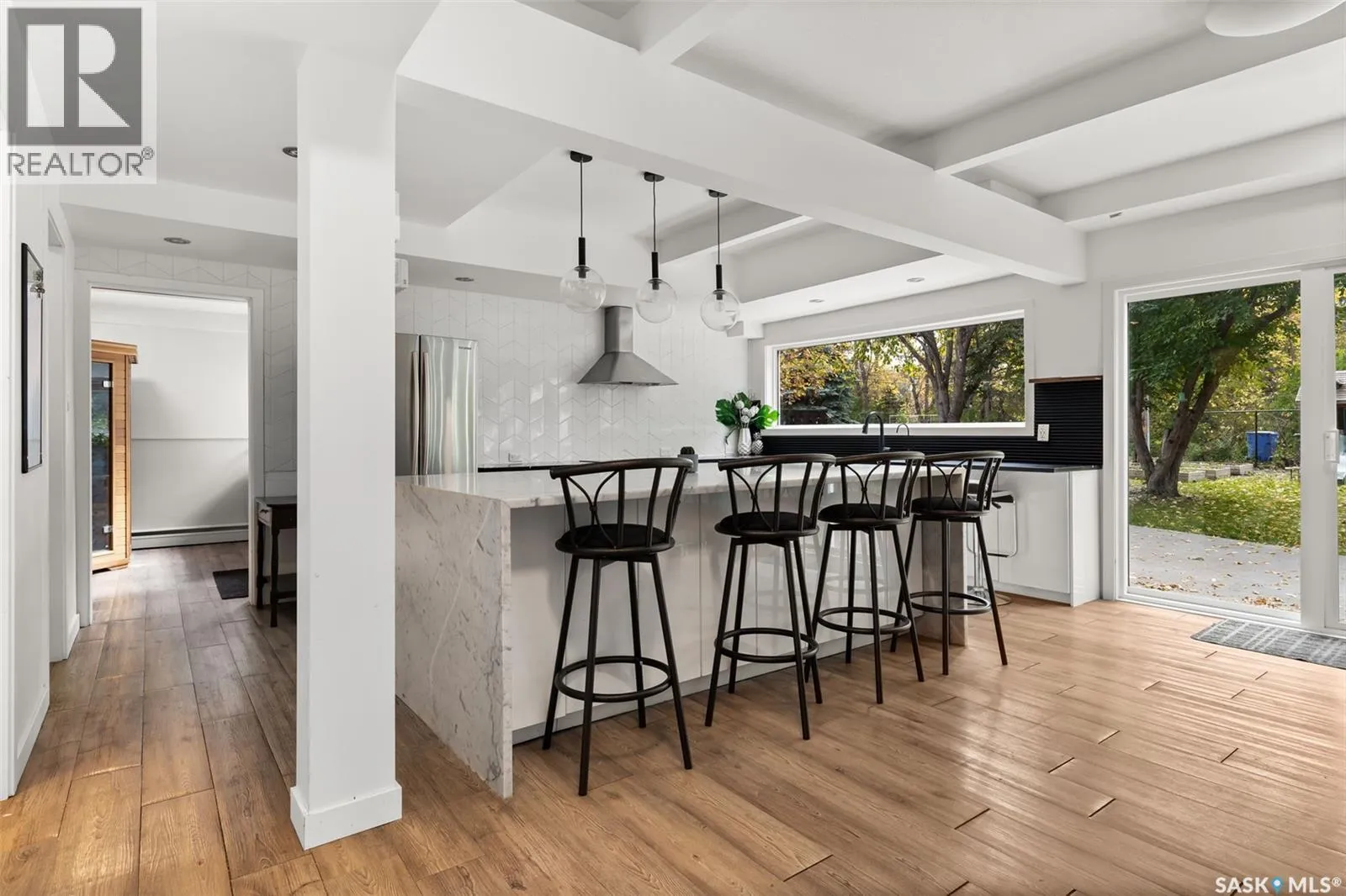Welcome to 3051 Quinn Drive, a beautifully updated mid-century modern home in Reginaâs desirable Arnhem Place neighbourhood. This rare property is steps away from the lush green spaces of Wascana Park, offering unmatched access to walking trails, playgrounds, and the lake just steps from your door. This split-level home boasts over 2,500 sq. ft. of living space with an open-concept design, exposed beams, and oversized windows that fill the home with natural light. The stylish kitchen features quartz countertops, modern cabinetry, stainless steel appliances, a gas range, and a large island with seating. Multiple living areas, including a sun-filled living room and lower-level family/media room, provide flexibility for both relaxation and entertaining. The home offers 3 bedrooms and 3 bathrooms, including a spacious primary suite and updated spa-like bathrooms. A sauna, versatile recreation spaces, and contemporary finishes enhance everyday comfort. Outdoors, the private backyard is a true retreat with mature trees, a large patio, raised garden beds, and room for kids to play. The property also includes a double attached garage and additional driveway parking. Located in one of Reginaâs most sought-after areas, youâll enjoy the perfect balance of nature and convenience, with schools, downtown, and amenities all nearby. Donât miss this opportunity to own a one-of-a-kind home in an incredible park-side location! (id:27476)