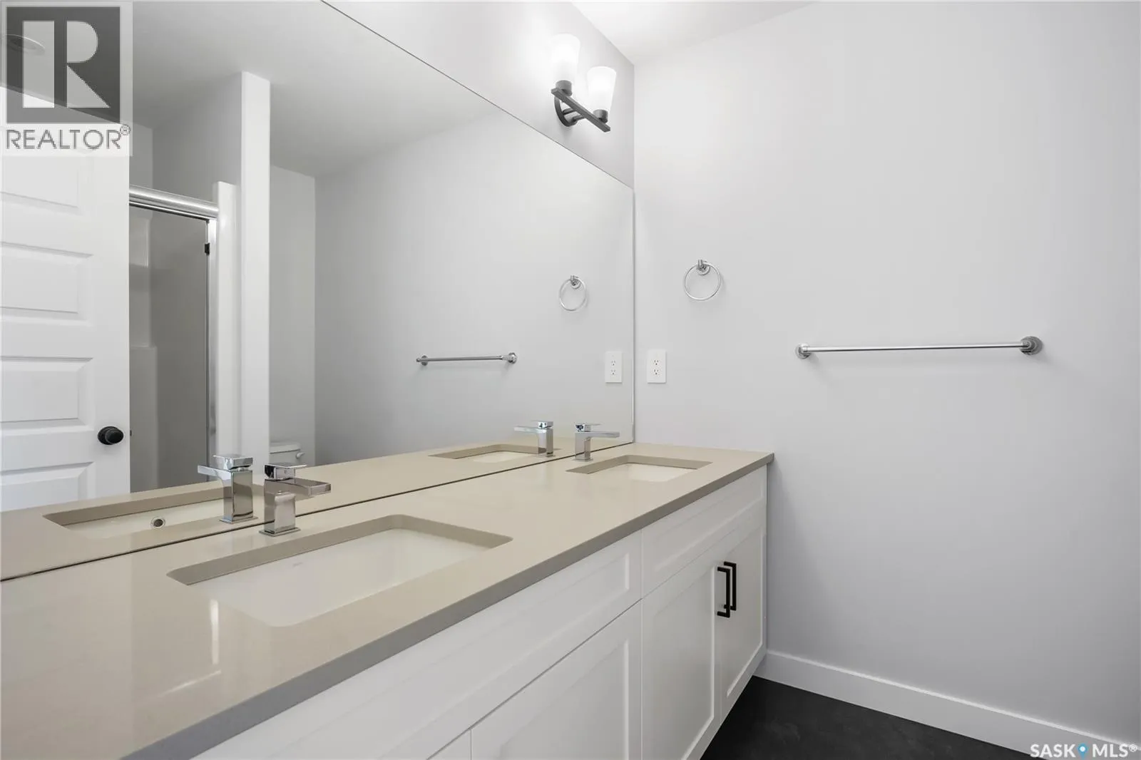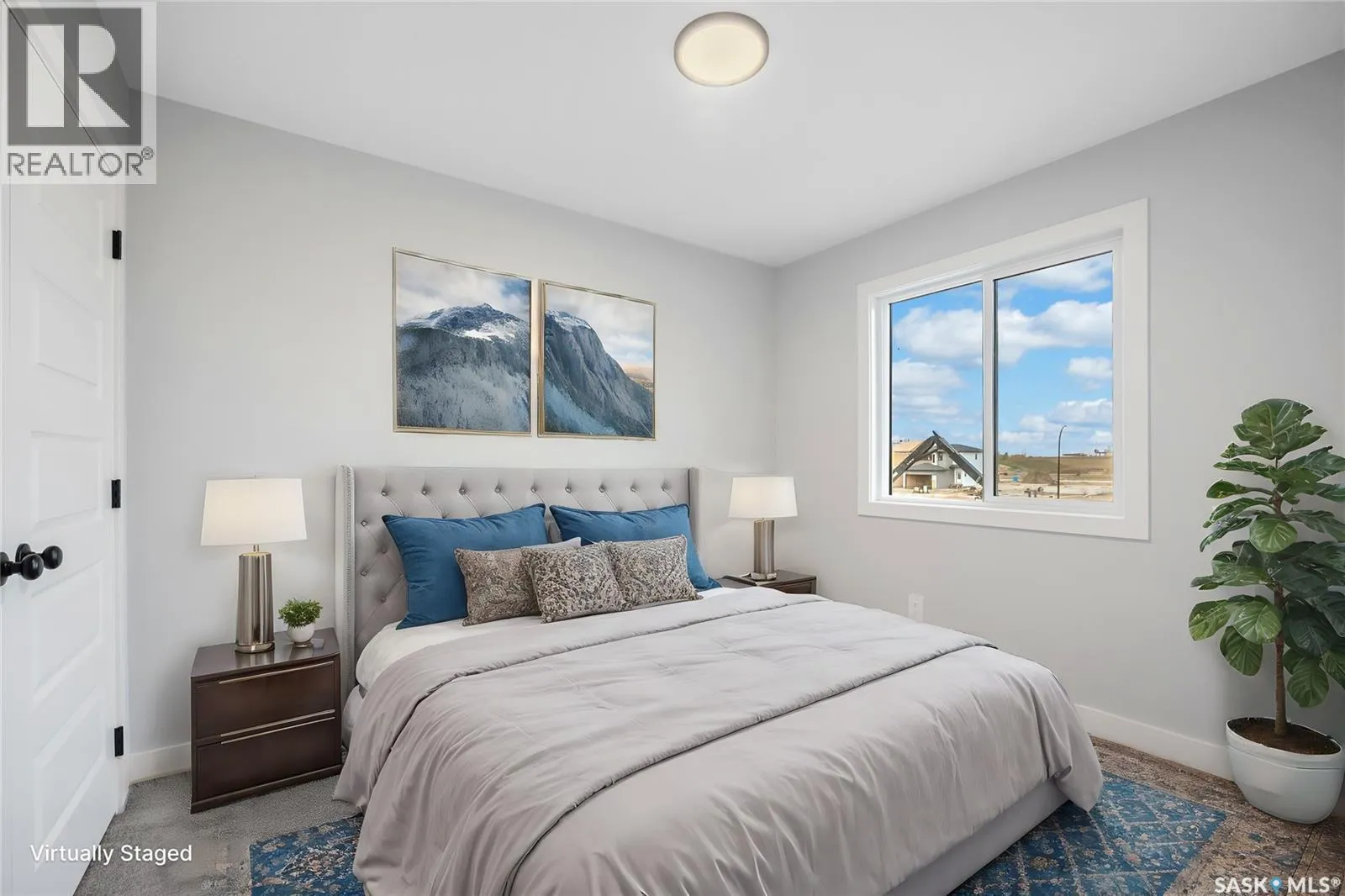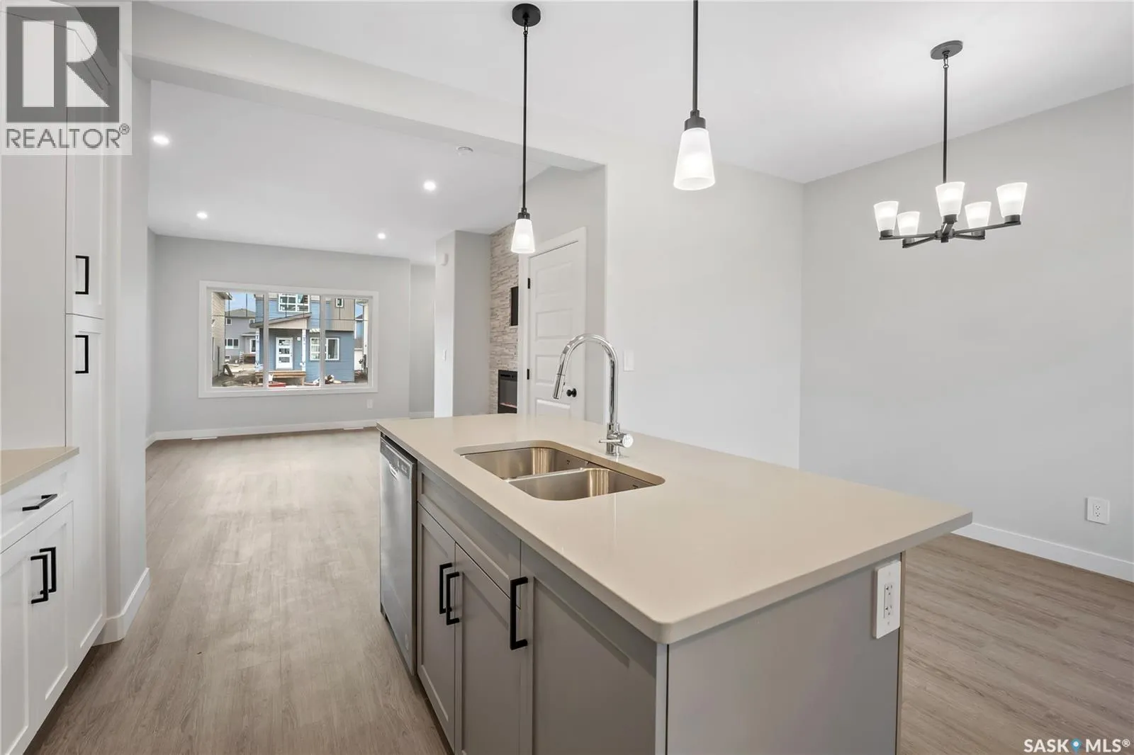 Welcome to the Ashwood, premier builder Ehrenburg Home's latest offering in Eastbrook! Laneway homes now including double detached garages! A vibrant new area close to all amenities, schools and parks. Top quality construction and materials used throughout. Main floor layout is perfect for entertaining. Spacious front entry leads to a wide open floor plan. Large living room with stack stone feature wall with electric fireplace. Beautiful contemporary design. Kitchen features center island/eating bar, pantry, and quartz counters. Extra large eating area to accommodate family dinners. Handy 2 piece bath off the rear door. 2nd level boasts large primary suite with walk in closet and ensuite, two additional bedrooms, full bath and handy laundry room. Bsmt has side entrance for future development. Exterior walls are framed and insulated with roughed in plumbing. All Ehrenburg Homes offer a superior construction foundation with a 4" rebar reinforced slab and is built on piles. Double detached garage 20x22. Exterior front landscaping, and underground sprinklers (front only) are included. Sask new home warranty included. So many extras with an Ehrenburg Home call today for more details! PHOTOS FROM PREVIOUSLY STAGED BUILD (id:27476)