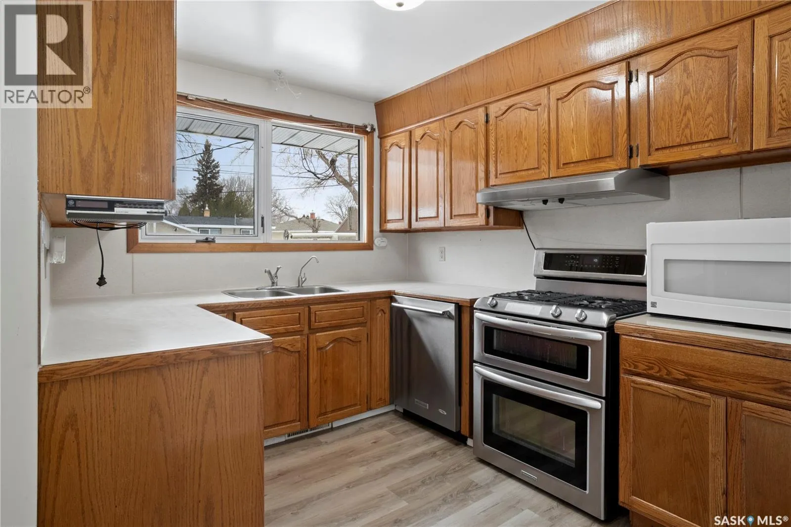 Welcome to this well-maintained family home offering numerous upgrades and timeless appeal. Recent improvements include new flooring, fresh neutral paint throughout, a new furnace, a new water heater, and gas stoves on both the main floor and in the basement. The main level features three spacious bedrooms with new LVP flooring extending through the bedrooms, dining area, and hallway. The updated kitchen showcases classic oak cabinetry and a built-in breakfast nook, perfect for everyday living. The fully developed basement adds excellent additional living space with a large recreation room, a 3-piece bathroom, and two additional bedrooms ideal for guests, extended family, or flexible use. Conveniently located close to schools, shopping, churches, public transportation, and more, this home is truly move-in ready. (id:27476)