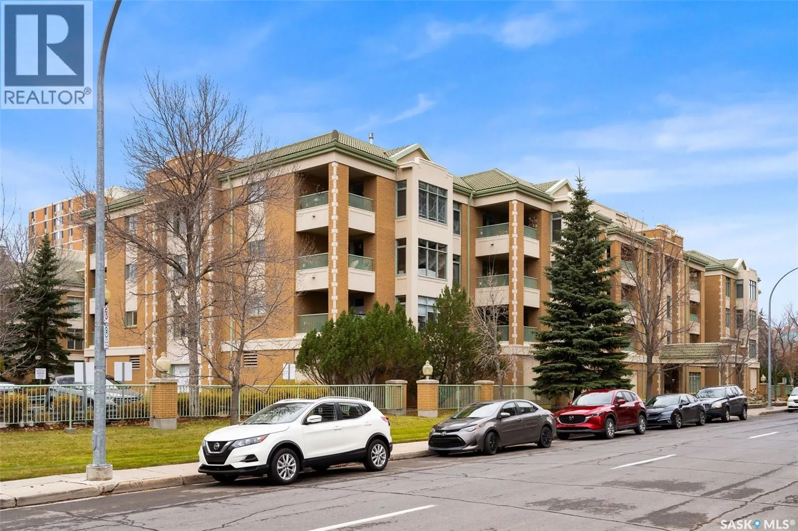 Experience the height of elegant, easy living in this impressive executive condo in the highly sought-after College Park community. Offering 1,338 square feet of thoughtfully designed space, this third-floor unit is filled with natural light and features an open-concept layout ideal for relaxing or entertaining. Step into a grand tiled foyer that leads to the spacious main living area. The inviting living room is anchored by a cozy gas fireplace and a sunlit alcove surrounded by windowsâperfect for reading, working, or unwinding. The dining area easily accommodates a large table, while the well-appointed kitchen offers ample cabinetry, white appliances including a built-in oven and cooktop, and generous counter space. A covered east-facing balcony provides a peaceful retreat for morning coffee, complete with a gas BBQ hookup for outdoor dining. The spacious primary suite includes a large walk-in closet and a sleek three-piece ensuite with an oversized shower. A second bedroom offers flexible space for guests or a home office, with a four-piece main bath nearby. Additional conveniences include in-suite laundry with shelving, custom blinds, central air, and elevator access. This condo also includes a secure storage room and a heated underground parking stall (#31). Residents enjoy an amenities room with games and fitness equipment, a parkade car wash, off-street visitor parking, and a same-floor garbage chute. Steps from Wascana Park, shopping, dining, and essential services, itâs also within walking distance to downtown, Darke Hall, and the refurbished Globe Theatre. Enjoy refined urban living at its bestâcondo fees cover heat, water, sewer, garbage/recycling, exterior maintenance, lawn care, snow removal, building insurance, and reserve fund contributions. Contact your realtor for more information or a private tour. (id:27476)