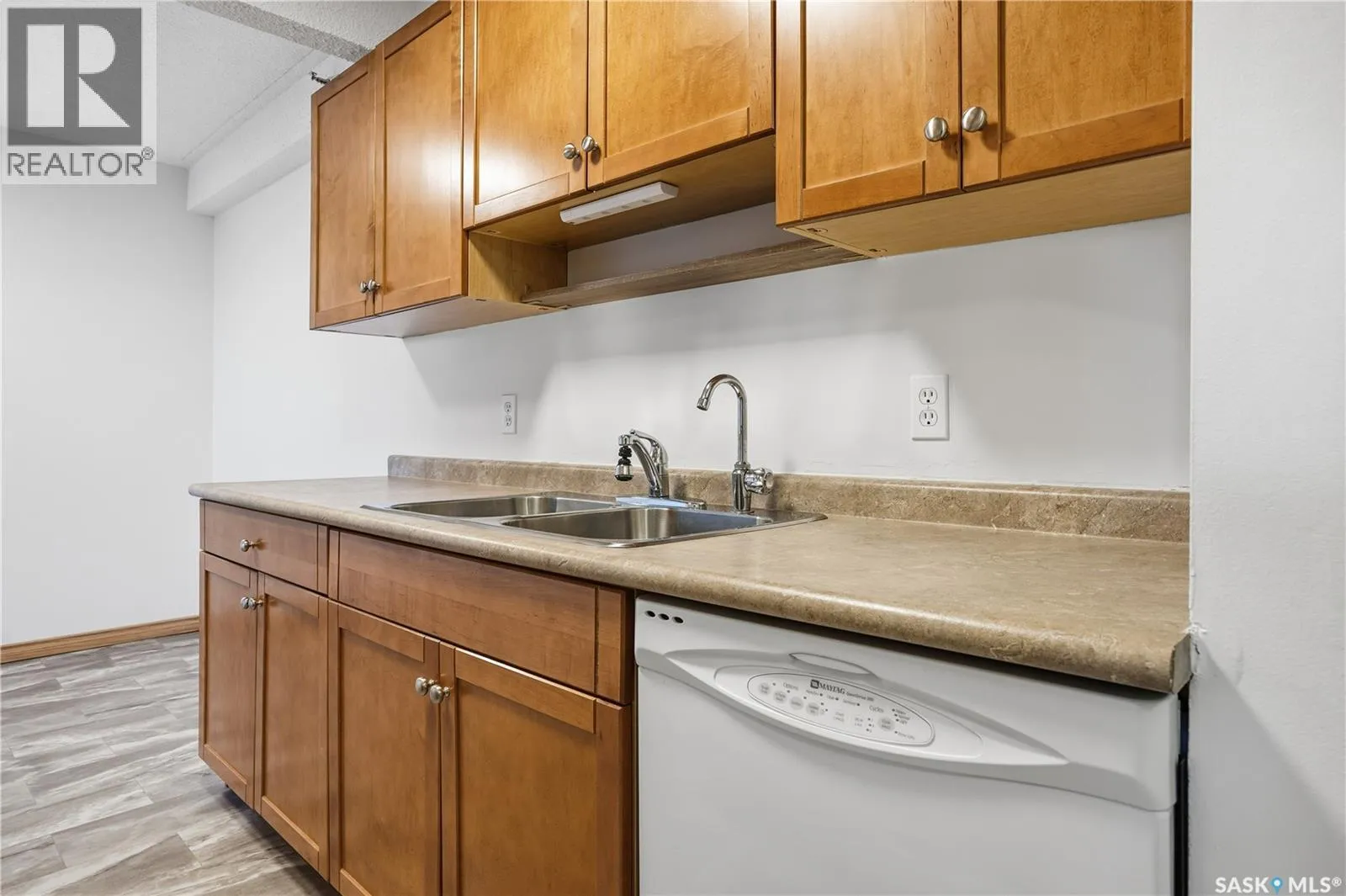 Located in the Atrium on Rae, this move in ready 1 bedroom condo comes with maple kitchen cabinets, dishwasher and stove included. This unit has an in-suite storage room, wall air conditioner and large West facing balcony. Shared coin operated laundry is down the hall. This unit comes with one covered parking stall. Condo fees include heating, water, sewer, garbage, common building insurance, common area maintenance, external building maintenance, snow removal, lawn care and reserve fund. (id:27476)