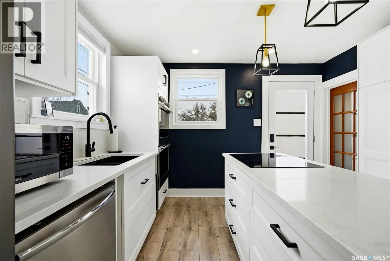 Looking for an upgraded character home with modern style and function? This beautifully updated property blends charm and contemporary living in all the right ways. The front foyer has been transformed into a moody, magazine-worthy mudroom that makes a stunning first impression while adding practical storage. Large PVC windows flood the main floor with natural light, highlighting the thoughtfully opened-up layout between the kitchen, dining, and living areas. The fully remodelled kitchen features crisp white cabinetry, quartz countertops, a large island with additional storage, and new appliancesâincluding double built-in wall ovensâideal for those who love to cook and host. Two generously sized bedrooms are located on the main floor, along with a fully upgraded four-piece bathroom complete with modern fixtures and classic subway tile surround. The solid, unfinished basement provides excellent storage space and future development potential. Outside, enjoy a private backyard with a tall fence, fresh landscaping, large patio, newer deck, and garden boxesâperfect for relaxing or entertaining. A single detached garage with back lane access completes the package. Upgrades include: PVC windows, high efficient furnace, newer central air conditioning, updated shingles, newer electrical throughout. Centrally located in a friendly neighbourhood with fantastic street appeal this home is truly move-in ready and full of character. As per the Sellerâs direction, all offers will be presented on 02/14/2026 12:04AM. (id:27476)