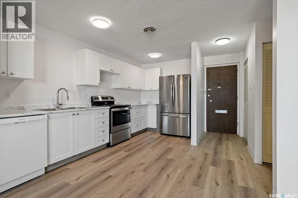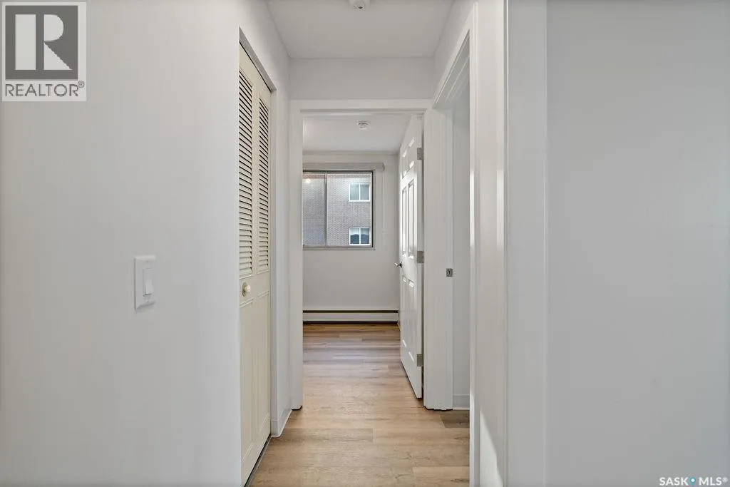 This condo is the perfect blend of homeownership and convenience, ideally located in Reginaâs desirable south end within walking distance to numerous amenities, parks, and public transit, making everyday living effortless. Offering just under 1,000 sq ft of living space, the unit features two well-sized bedrooms and one full bathroom, along with an updated kitchen and bathroom that add both style and functionality. Recent improvements include a fresh coat of paint throughout and brand-new flooring completed this month, making the space completely move-in ready â simply bring your furniture and settle in. Thoughtful storage is found throughout, with generous closet space as soon as you walk in for coats and household items, additional storage built into the bathroom, and even more storage available in the basement. The unit also includes a dedicated parking stall, while the well-maintained building offers shared amenities such as a common recreation room, workshop space, and shared laundry facilities, making this an excellent option for first-time buyers, downsizers, or anyone looking to start their homeownership journey with minimal maintenance and maximum convenience. As per the Sellerâs direction, all offers will be presented on 02/16/2026 4:00PM. (id:27476)