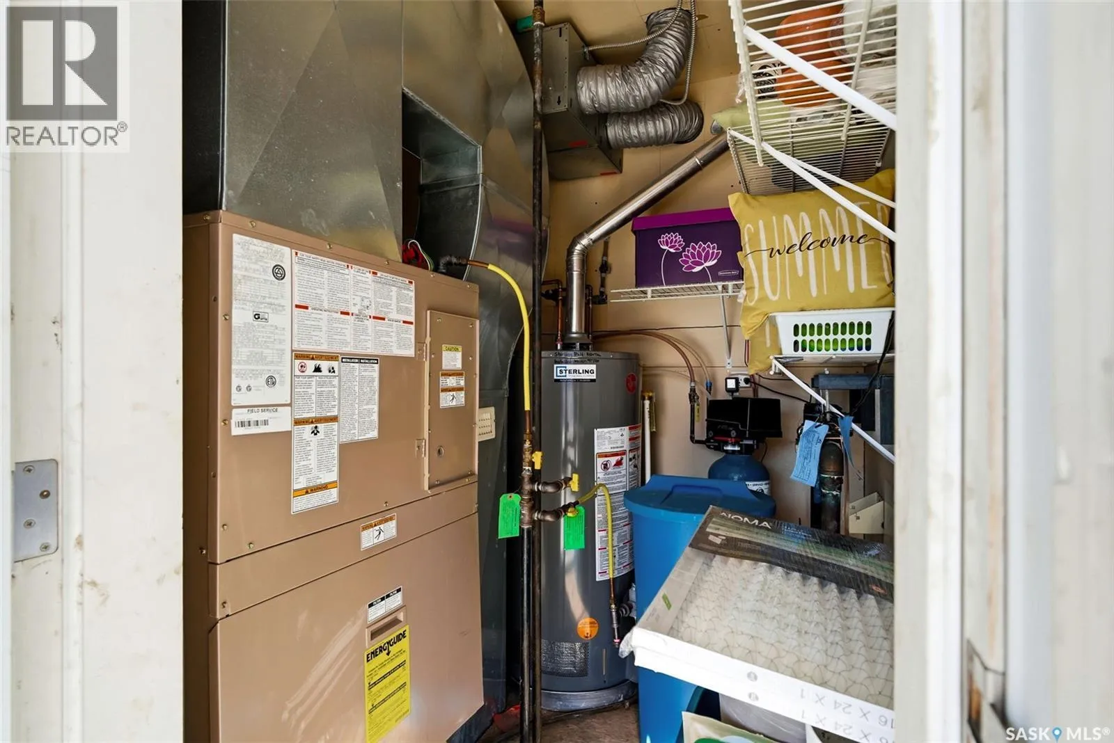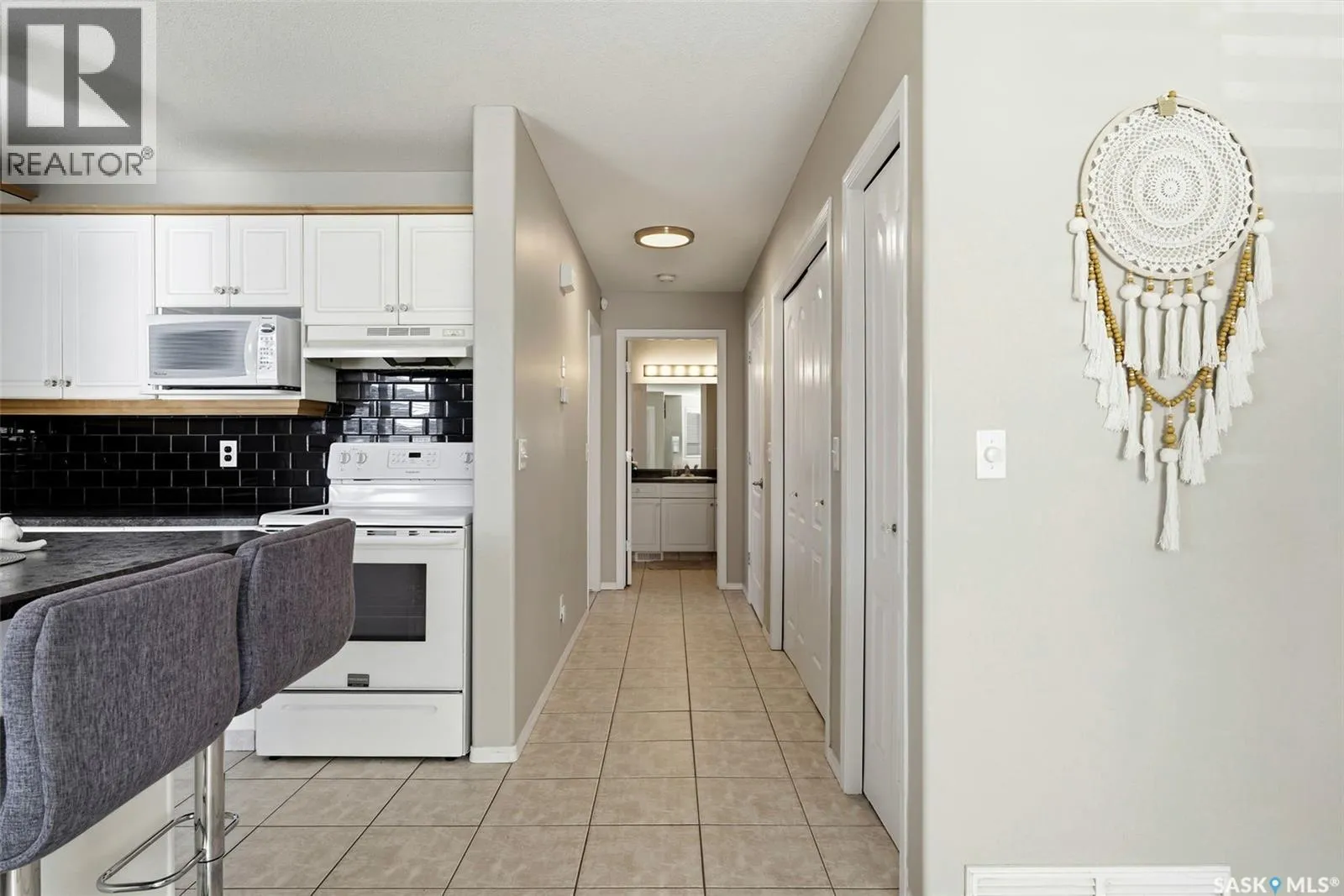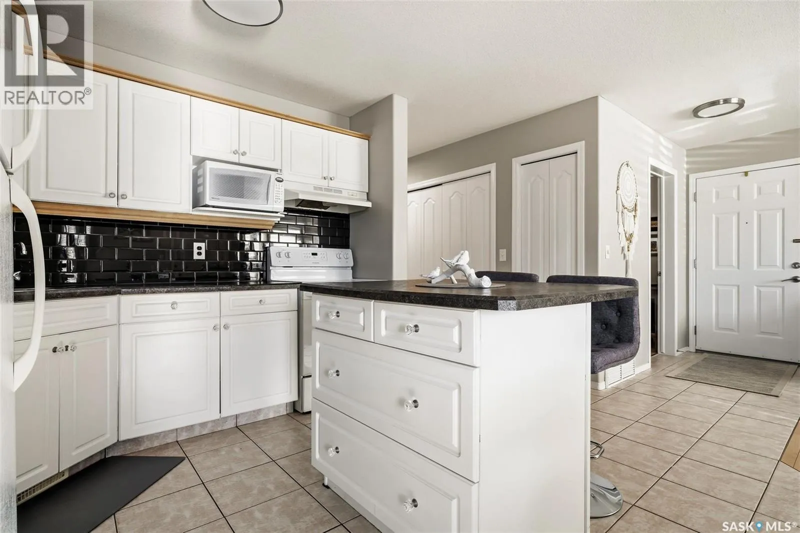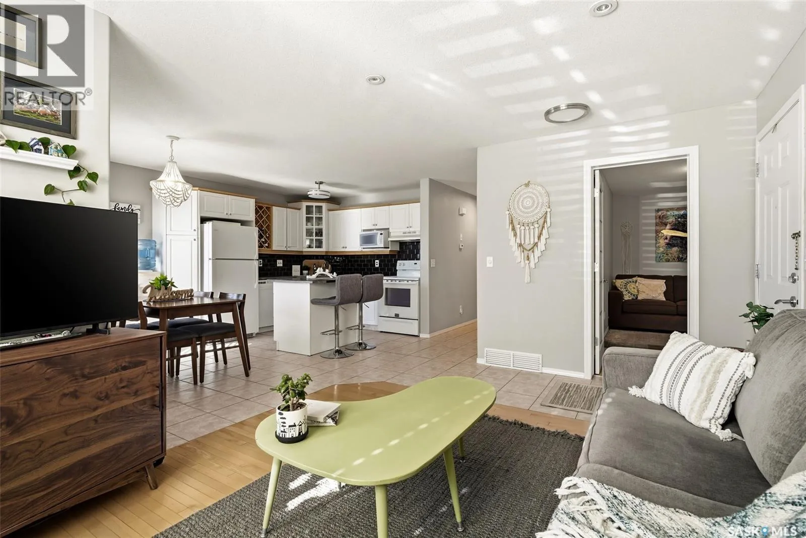 Every home has a story, and this one is filled with love, joy, and connection. From lunch-and-learns with coworkers to book club nights, grandchildrenâs birthdays, and sleepovers, this condo has been truly lived in and cherished. This 960 sq ft ground-floor condo offers the perfect balance of space and coziness. Bathed in south-facing sunlight, the open, flowing floor plan feels warm and serene. The eat-up island provides extra dining space, excellent storage with roll-out drawers, and is moveable, giving you flexible options when family comes over. The spacious primary bedroom includes a 3-piece ensuite and walk-in closet. The second bedroom works beautifully as a guest room or office and features new vinyl plank flooring and its own walk-in closet. A generous 4-piece main bath with built-in storage is ideal for linens. The wide hallway accommodates both a large pantry and a separate laundry/freezer space. Step outside to the covered south-facing patio, your perfect morning coffee spot or peaceful evening reading nook, privately tucked beside a green space. The utility shed houses mechanical components and offers bonus storage. Additional perks include a single detached garage (with extra storage) plus one electrified surface parking stall. This is a unique 4-plex unitâthe only one of its kind in the complex (all others are 8-unit buildings). Itâs ideally located near green space, visitor parking, and backs onto residential homes for added privacy. Youâre also close to schools, the walking path to the Sandra Schmirler Leisure Centre, Everyday Kitchen, and east-end shopping. Itâs a wonderful neighbourhood to call home. Donât miss this rare opportunity in Windsor Park. As per the Sellerâs direction, all offers will be presented on 02/17/2026 12:00PM. (id:27476)