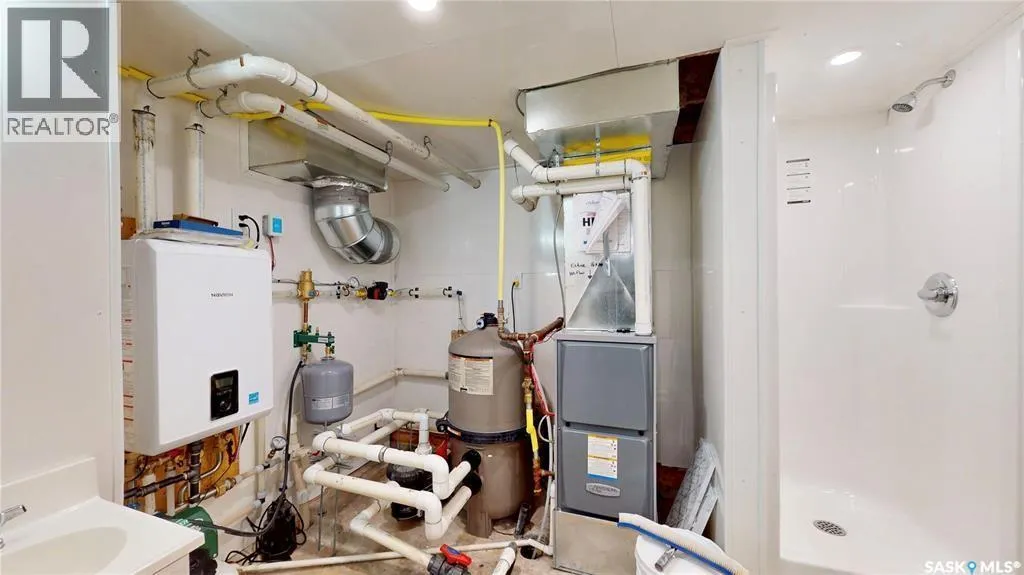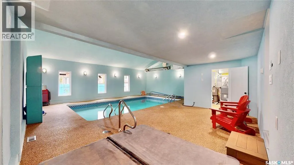 Tucked in one of Reginaâs most sought-after east-end neighborhoods, this 3365 sq/ft home sits proudly on a spacious 6200 sq/ft corner lot just steps away from W.S. Hawrylak School and the University of Regina. Perfect for large or growing families. With extensive renovations completed in 2025, this property combines impressive updates with everyday comfort. The highlight of the home is the indoor pool, offering year-round enjoyment. The pool area received a full overhaul that includes a new HVAC system, high-efficiency furnace, on-demand water heater, new shower, upgraded electrical and plumbing, fresh stucco, windows and doors, and waterproofing throughout. Even the pipe from the skimmer to the pump has been lined to prevent leaks, and a new pool cover is on order. Every detail was carefully considered to create a clean, functional, and efficient space. Inside, the kitchen features custom-built cabinetry topped with black granite counters and ceramic tile flooring. Under the bay window, spray foam insulation was added for efficiency. The upper level has seen a complete refresh with new vinyl flooring, updated electrical and lighting in the media room, new interior doors, and all new windows. The upstairs bathrooms have new fans and exterior vent piping, and modern lighting brightens the stairway. The cozy wood-burning fireplace, finished with ledgestone grey tile, was redone in 2017. The home is supported by two steel main beams, and the living room sits on piles for lasting stability. Other notable features include main floor laundry, central vacuum, a double attached garage, underground sprinklers in the front and back, and professional interior painting throughout. The attic insulation was fully replaced and blown in new, while the exterior shines with new shingles, eaves, fascia, soffits, and windows, all completed in 2025. This is a rare opportunity to own a truly unique property that offers both size and substance in a prime Regina location. (id:27476)