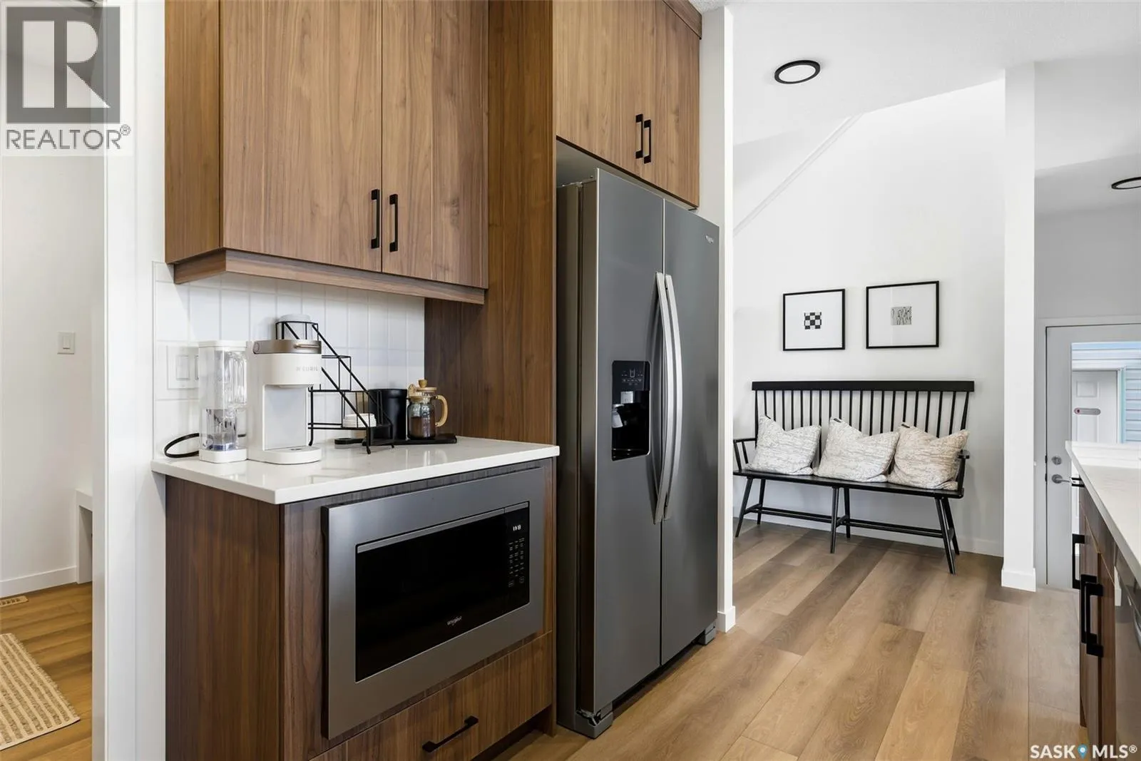 Welcome to Homes by Dream's Gardner showhome, beautifully positioned backing an environmental reserve in Eastbrook at 3204 Favel Drive. It's located near shopping, restaurants, an elementary school, walking paths & within walking distance to beautifully designed parks. It's main floor open concept design features 9' ceilings, a bright kitchen with an eat up island, full height cabinetry, quartz countertops, ceramic tile backsplash, soft close to the drawers & doors, stainless steel fridge, gas stove, chimney hoodfan, built in microwave, dishwasher and pantry. The main floor also features a mudroom with a built in bench and coat hooks, 2 piece bath, dining area and a spacious living room, with large west facing windows that overlook a serene environmental reserve. The second floor features a front facing bonus room, ideal for a media room, additional living space, home office, or study area. The large primary bedroom is thoughtfully designed overlooking the environmental reserve and is complete with a spacious spa like ensuite, that includes a soaker tub, separate shower, double sinks and water closet. Finishing off the 2nd floor are 2 additional nice size bedrooms, 4 piece bathroom and laundry room. The 4 piece bath & ensuite are stylishly finished with quartz countertops, ceramic tile flooring, ceramic tile backsplash and soft close to the drawers & doors. There's a side entry door to the basement and the basement is bright with large windows that meet egress and is ready for future development. The foundation features a DMX foundation wrap and the home also includes a rear deck, front and back yard landscaping, irrigation, central air conditioning & window treatments. (id:27476)