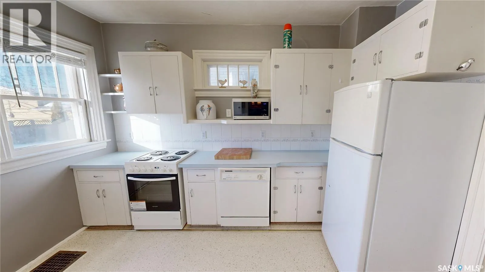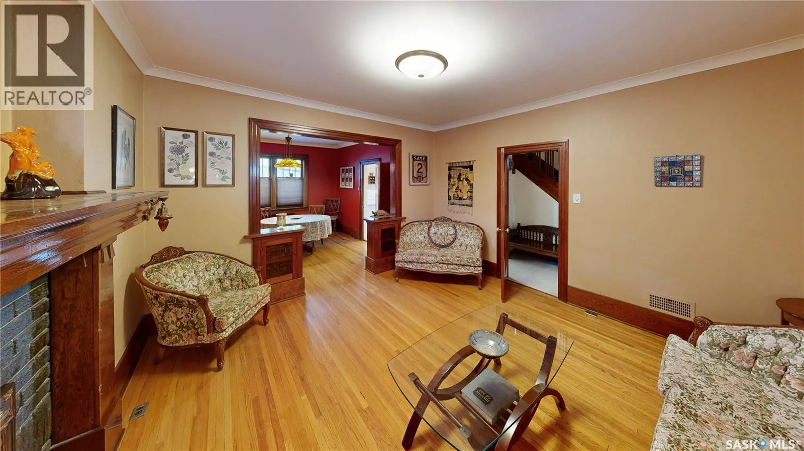 Welcome to 1517 Victoria Avenue in the General Hospital neighborhood area of Regina just minutes from downtown, as well as multiple local restaurants and the General Hospital itself. This 3 bedroom, One and ¾ Storey house was built in 1925 and is 1085 sqft in size and sits on a 3377 sqft lot. The front of the home has landscaping and a brick path to the front door. The fully fenced, south facing backyard has a lawn, patio and garden area. There is also access to the oversized single detached garage which has both 220 V plug-in and a heater. Thereâs also an additional parking pad adjacent to garage. You enter the home into the adorable covered porch. The living room is overflowing with original character with its hardwood floors, crown moulding, built-in cabinetry, classic piano windows and large picture windows with bottom up top down blinds and a decorative fireplace. The dining room has ample space for a table and chairs, and has a vintage, stained glass hanging feature light that enhances the homeâs historic appeal. The kitchen thoughtfully blends modern convenience with classic style. Something rarely found in homes of this era. It has a plethora of electrical outlets to run every kitchen appliance, a pull out cabinet, pantry space, lots of counter space and the fridge, stove, dishwasher and microwave are all included. Upstairs on the second floor the first stop is a good sized bedroom followed by the larger primary bedroom complete with two closets and crown moulding. Thereâs a 4 piece bathroom with a clawfoot tub followed by the third bedroom. The full basement is unfinished but offers plenty of potential to expand your living space. It features a cold storage room, laundry area with included washer and dryer and the owned furnace. This home also has central air conditioning, an owned alarm system and the water and sewer lines were both replaced last year proving peace of mind for years to come. Some of the vintage furniture is also negotiable! (id:27476)
