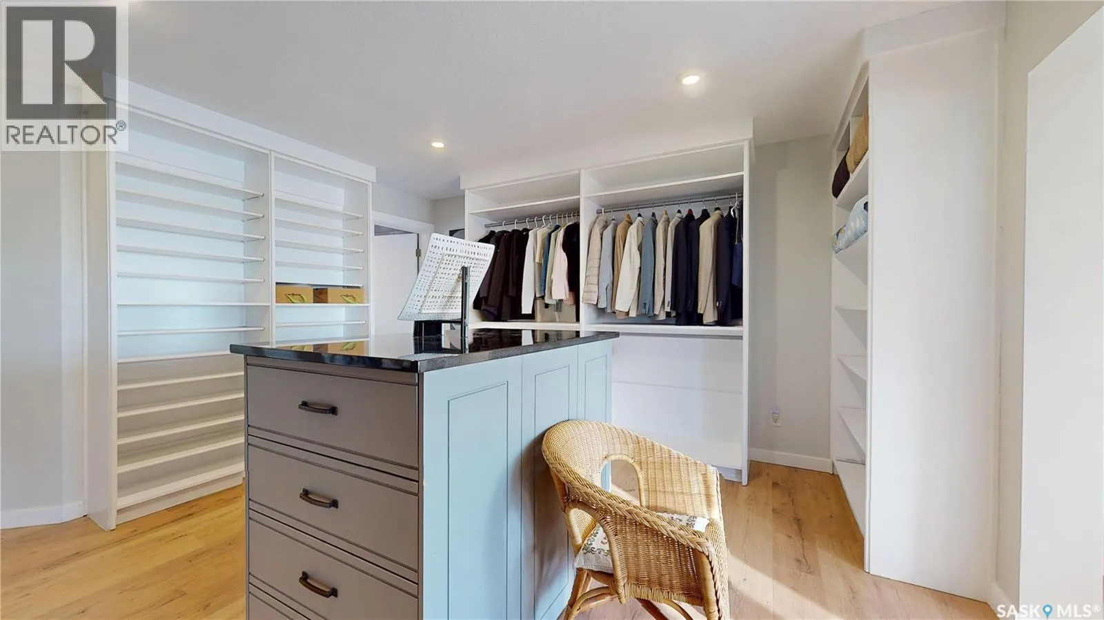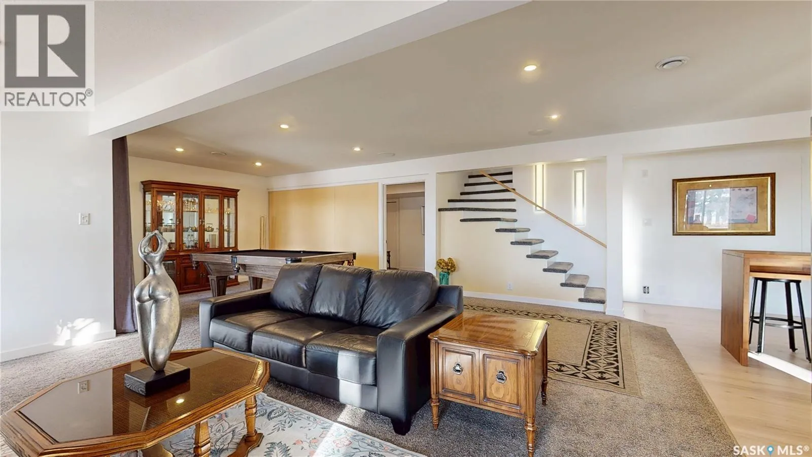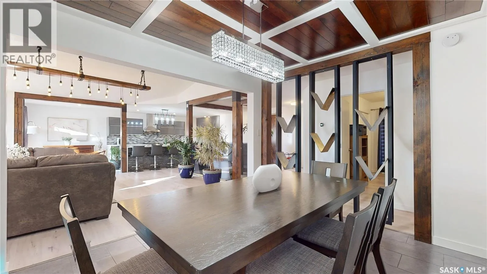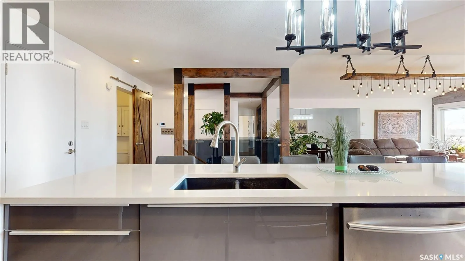 Welcome to this stunning executive home located in the prestigious Westhill neighborhood of Regina. Perfectly positioned to back onto the Goulet Golf Course, this property offers elegance, comfort, and breathtaking views in every direction. Step inside to a bright, open floor plan designed for modern living and effortless entertaining. The kitchen, dining, and living spaces flow seamlessly together, highlighted by wood beams, glass railings, and large windows that capture the beauty of the golf course beyond. The kitchen is as functional as it is stylish, with plenty of workspace and direct access to the expansive back deck â perfect for morning coffee or evening sunsets. The master retreat is truly exceptional â featuring a spacious sitting area, private access to the deck, and a lavish 5-piece ensuite complete with a soaker tub. The expansive walk-in closet provides ample storage and organization for a truly luxurious experience. The main floor is complete with a second bedroom. The fully developed walkout basement offers the ultimate in recreation and relaxation. Enjoy a large games area, stylish wet bar, cozy rec room, and one bedroom and a den â ideal for guests or family. The basement is complete with a sunroom, that can be used for every season. A well-appointed bathroom completes this versatile space, with direct access to the backyard. The outdoor spaces have been thoughtfully designed to make the most of the serene golf course setting. The yard offers privacy, space, and impeccable landscaping, creating a tranquil oasis for entertaining or unwinding in style. This is a must see home to be truly appreciated. (id:27476)