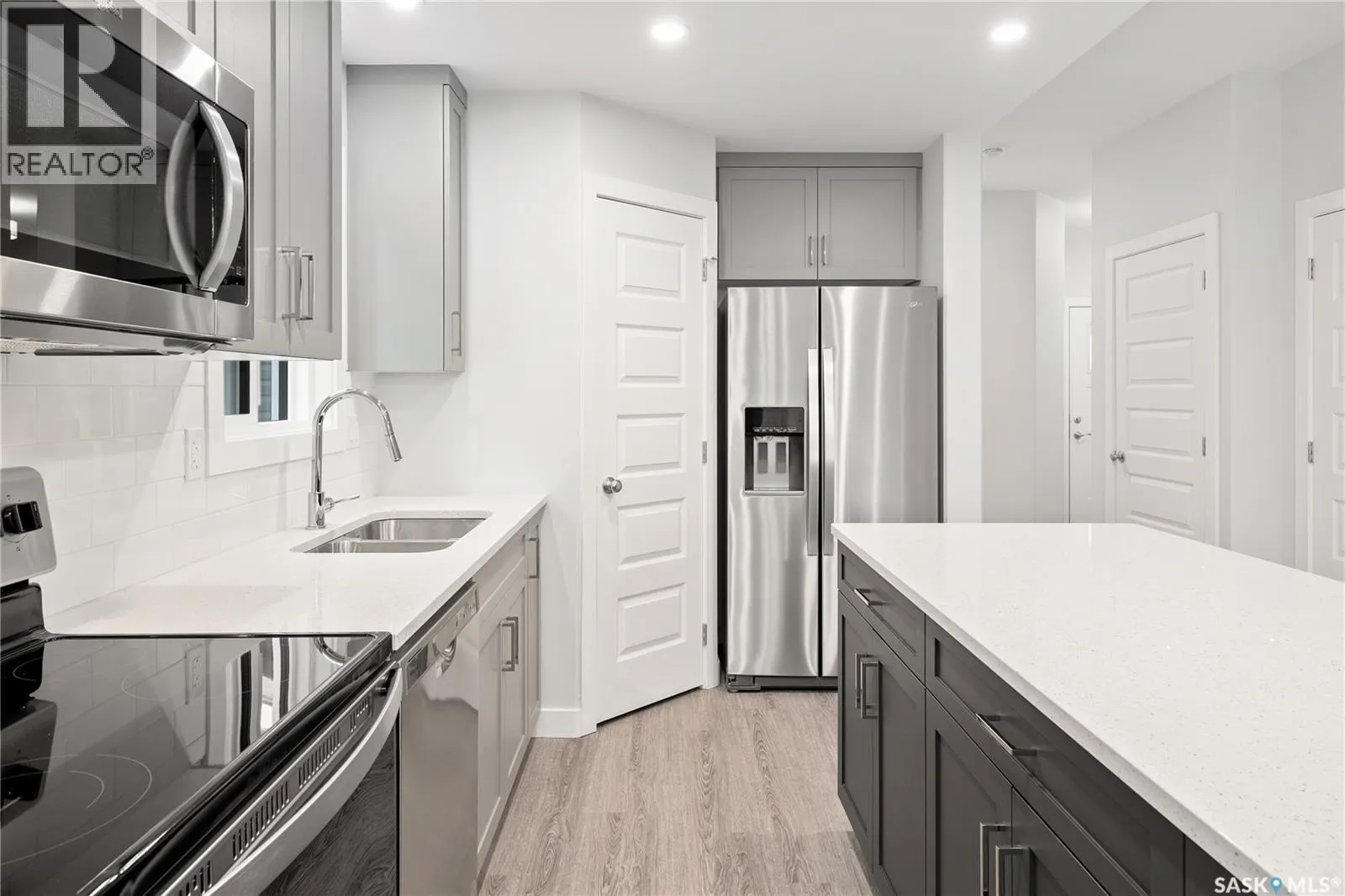 Welcome to âThe Richmondâ by premier builder Ehrenburg Homes, located in the vibrant Eastbrook community of Regina. This beautifully designed two-storey row/townhome offers 1,576 sq. ft. of above-grade living space and showcases quality craftsmanship with modern, functional finishes throughout. The main floor welcomes you with a bright, open-concept design finished in vinyl plank flooring, ideal for family living and entertaining. The spacious living room is filled with natural light and flows seamlessly into the dining area. The contemporary kitchen is the heart of the home, featuring a large island with eating bar, modern cabinetry, and excellent workspaceâperfect for gatherings and everyday living. A convenient 2-piece bathroom completes the main level. Upstairs, youâll find three generous bedrooms, including a well-appointed primary suite with a walk-in closet and a private 5-piece ensuite. Two additional bedrooms are served by a 4-piece bathroom, while the second-floor laundry adds everyday convenience. A versatile bonus room provides additional living space, ideal for a family lounge, playroom, or home office. The full basement is unfinished, offering excellent potential for future development to suit your needs. Built with wood-frame construction, forced-air natural gas heating, and a gas water heater, this home is designed for efficiency and comfort. Outside, enjoy a single attached garage, underground sprinkler system, and a low-maintenance lot. The home is currently under construction, with possession to be determined upon completion. Backed by the Saskatchewan New Home Warranty and Ehrenburg Homesâ superior craftsmanship, The Richmond is the perfect blend of style, space, and peace of mind. PST & GST are included in the purchase price. Note: Interior photos are from a previous build of the same model; finishes and colors may vary. (id:27476)