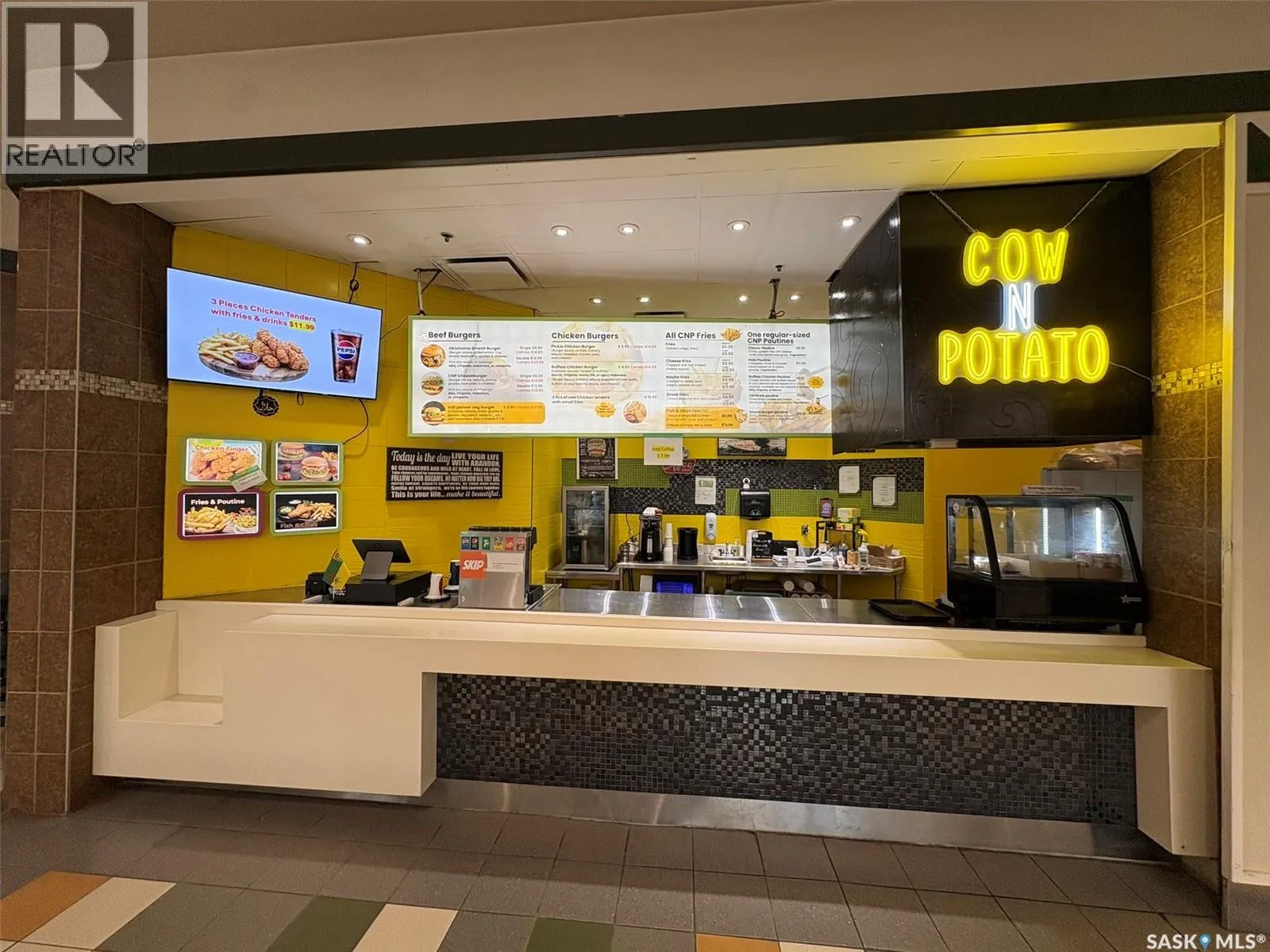 Turnkey Halal Fast-Food Business â Prime Northgate Mall Location! Cow N Potato Food Bar Ltd. is a well-established, fully operational halal fast-food business located in the high-traffic food court of Northgate Mall, offering excellent visibility and steady walk-in customers. This successful operation has built a loyal customer base and strong community presence, with consistent sales and growth potential. The sale includes all equipment, signage, permits, trade name, and goodwill â making this a true turnkey opportunity for an owner-operator or investor. Current lease secured through December 31, 2028. Excellent opportunity to step into an established business with room to expand and increase revenue! (id:27476)