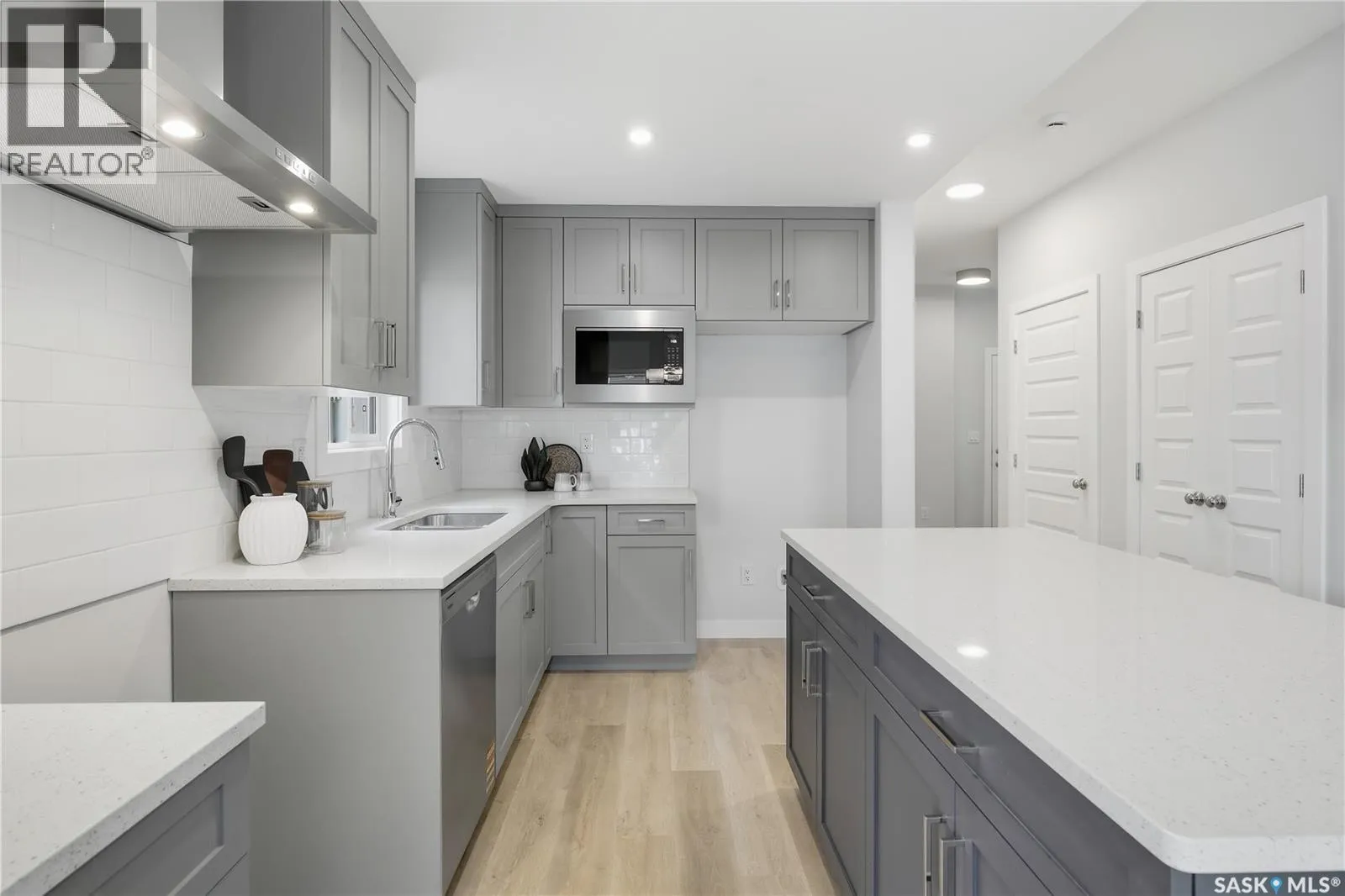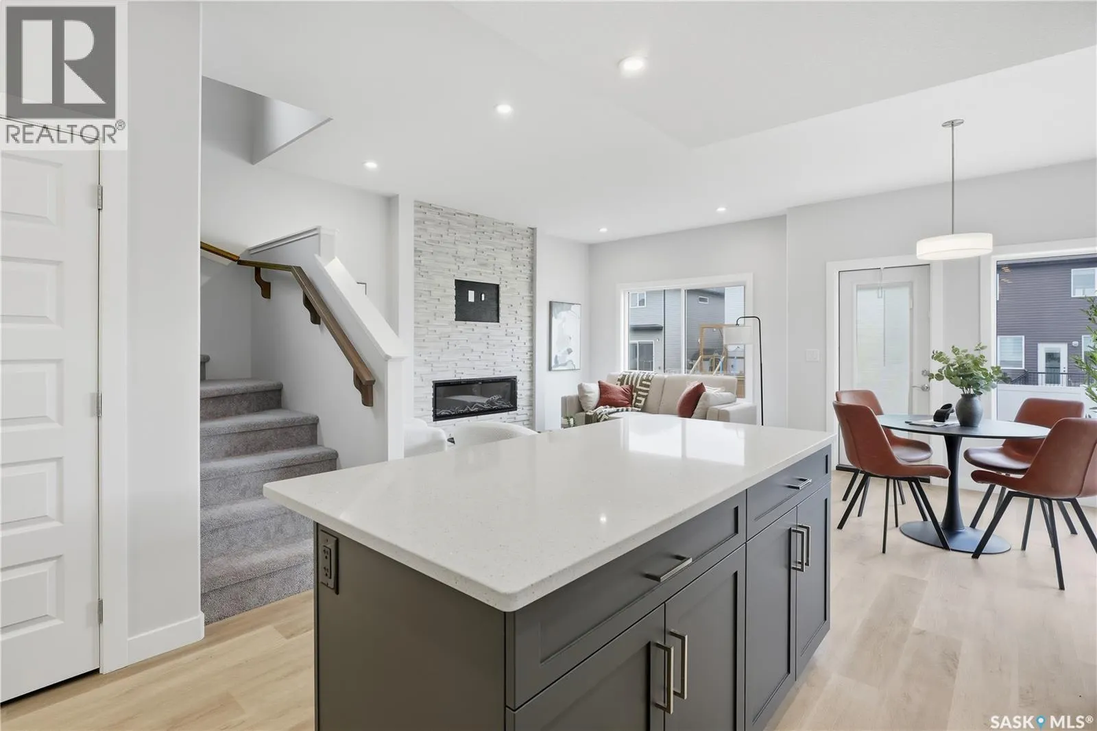 Welcome to the Wasserberg Townhome! Ehrenburg Homes latest offering in the vibrant community of Eastbrook. This one of kind new build offers spacious family living with contemporary design. Lovely street appeal with charming from verandah. Spacious entry leads to large living room with picture window views of Maka Park. Kitchen featuring, centre island, 2 pantry's! and abundance of stone countertops and custom tiled backsplash flows into the oversized dining room with plenty of space to accommodate large family gatherings. 2pc powder room and large rear entry lead to the massive 21.4x25.9 double attached rear garage with back alley access. 2nd level features massive primary suite with walk-in closet and full 4pc ensuite. Large bonus room and 3 additional bedrooms are genrously sized. 2nd floor laundry and main 4pc bath. This end unit Townhome also offers side entrance for future suite development. Exterior walls are framed and insulated with roughed in plumbing. Superior construction foundation has a 4â rebar reinforced slab and is built on piles. Exterior features front landscaping, sidewalk, and underground sprinklers. Interior photos from previous build layout and colors may vary. Call for more information! (id:27476)