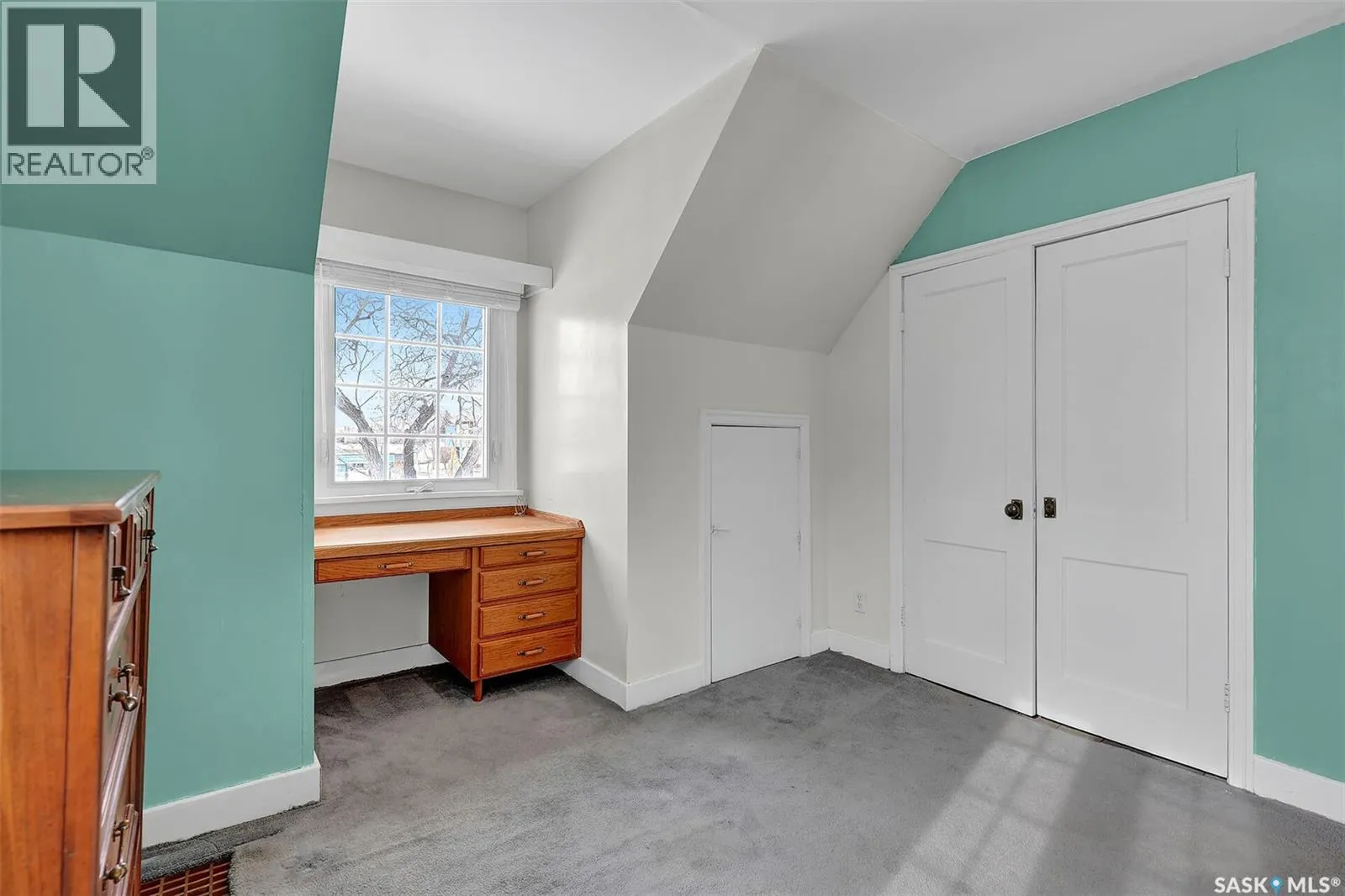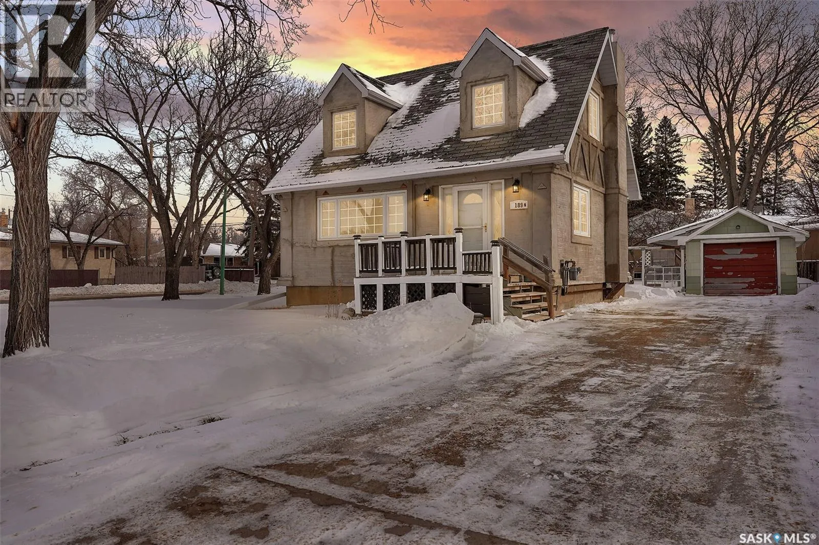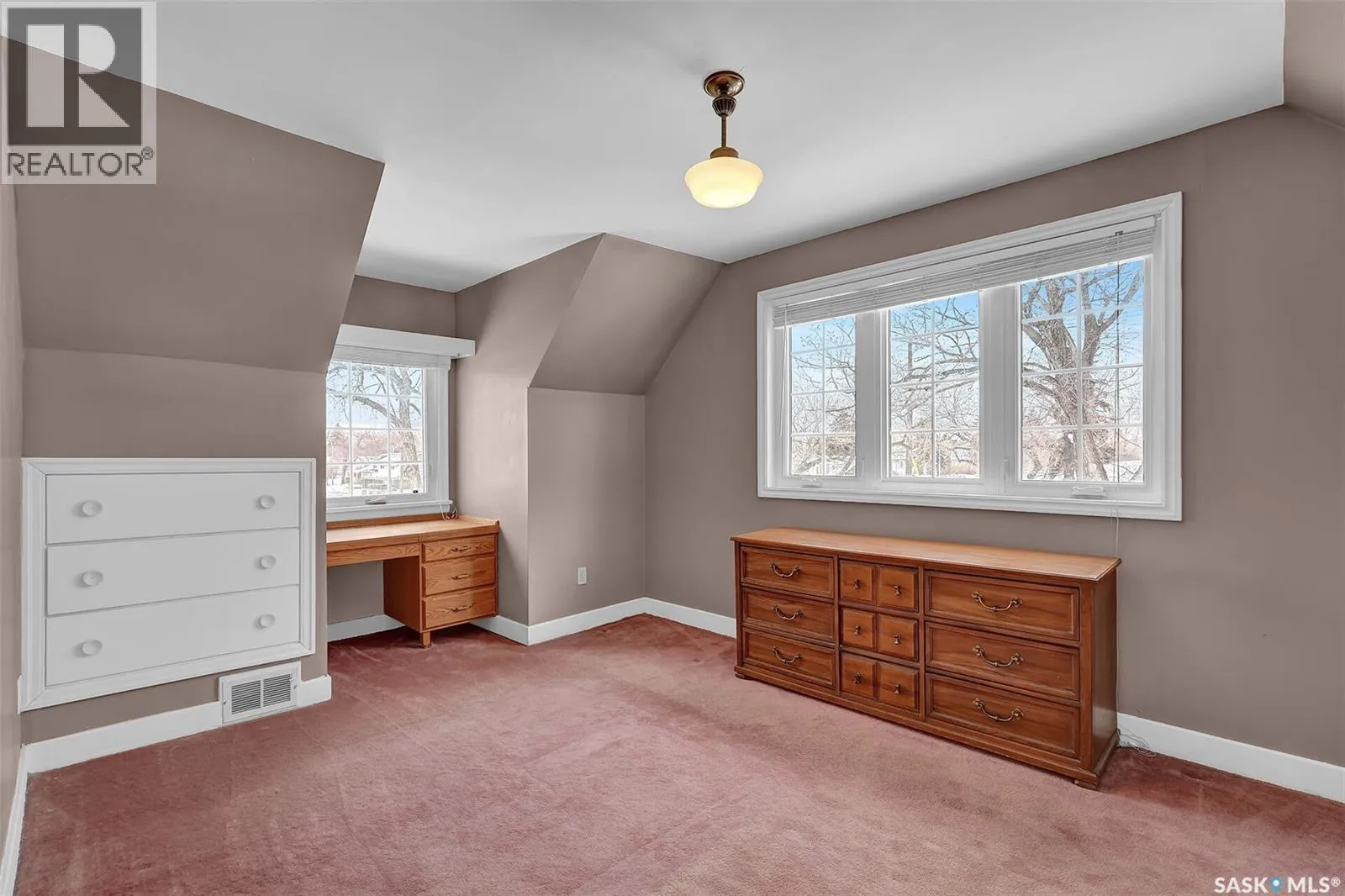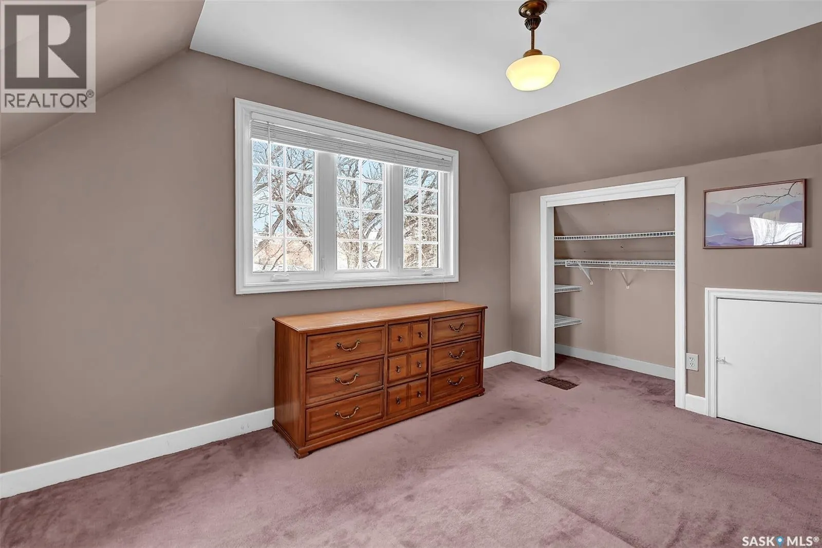 Welcome to this charming one-and-a-half-storey home set on a double-sized corner lot with access from both Broad Street & 6th Avenue North. This 1945 classic blends character, light & versatilityâoffering a layout that can adapt to many lifestyles. The exterior has been base-coated & ready to personalize. Inside you are greeted by a spacious front entry that opens into the bright living room & lovely sightline toward the kitchen. Natural light pours into this home from every direction thanks to updated windows throughout (excluding the kitchen). The living room features a picture window & flows seamlessly to the L-shaped dining area, where garden doors lead outside. Hardwood under carpet. The U-shaped kitchen provides excellent cabinet & counter space, along with a garden window overlooking the backyardâperfect for plants or simply enjoying the view. A cozy nook off the kitchen serves perfectly as a small eating area or workspace. Upstairs, a generous landing window brightens the staircase. The crisp renovated main bathroom includes a glass tub door & convenient access to a walk-in cedar closet with built-in shelving and storage space. The two upstairs bedrooms are both very good sizes, each featuring two windows, built-in desks tucked into the dormer spaces, ample closet storage & access to additional attic storageâclassic character. A French door leads to the back entry and the enclosed back porch with drywalled walls and electrical plug.. The basement stairs are wide and comfortable leading to bright open space ready for your personal touch. There is a functional 3-piece bath & laundry area. The yard is expansive with a deck, walking path, decorative dividers with glass inserts, mature trees, fire-pit area, single garage & plenty of parking. Sidewalk on 6th Ave N was made accessible to back yard. Located close to public transit, schools, shopping, and everyday amenities, this is a home that welcomes you âand invites you to make it your own. As per the Sellerâs direction, all offers will be presented on 03/03/2026 12:01AM. (id:27476)