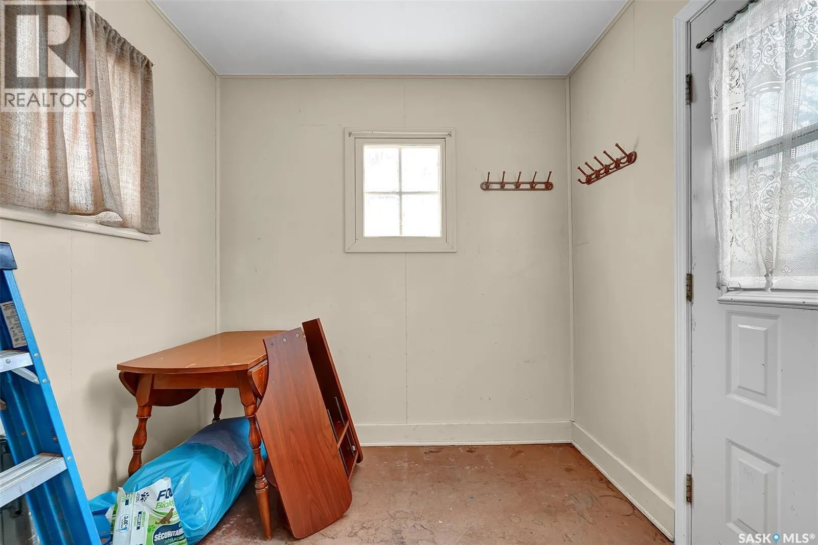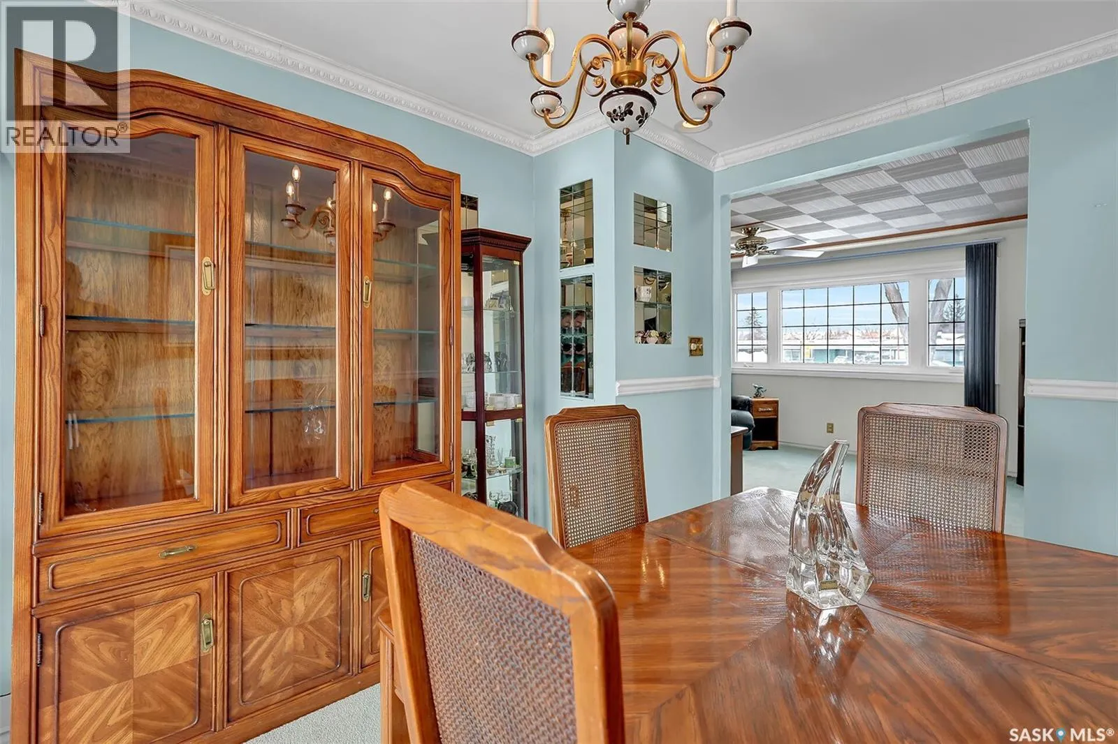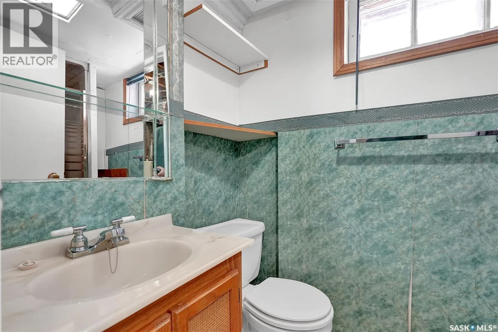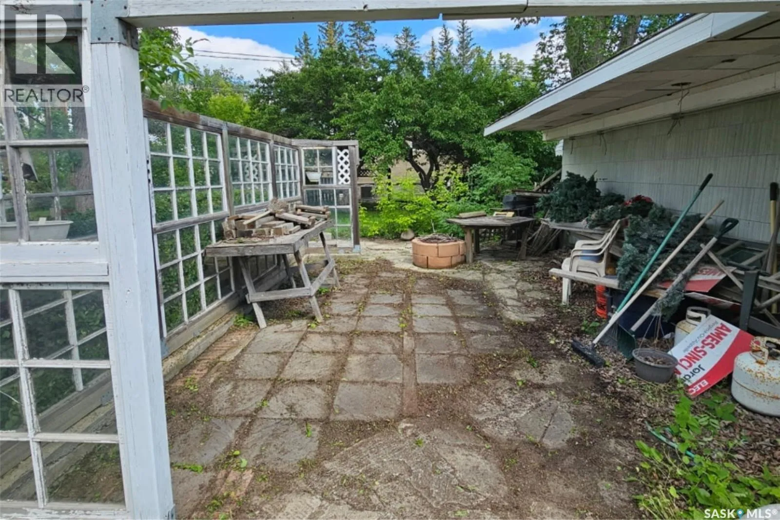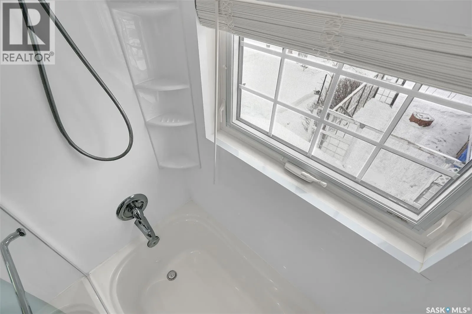 Welcome to this charming one-and-a-half-storey home set on a double-sized corner lot with access from both Broad Street & 6th Avenue North. This 1945 classic blends character, light & versatilityâoffering a layout that can adapt to many lifestyles. The exterior has been base-coated & ready to personalize. Inside you are greeted by a spacious front entry that opens into the bright living room & lovely sightline toward the kitchen. Natural light pours into this home from every direction thanks to updated windows throughout (excluding the kitchen). The living room features a picture window & flows seamlessly to the L-shaped dining area, where garden doors lead outside. Hardwood under carpet. The U-shaped kitchen provides excellent cabinet & counter space, along with a garden window overlooking the backyardâperfect for plants or simply enjoying the view. A cozy nook off the kitchen serves perfectly as a small eating area or workspace. Upstairs, a generous landing window brightens the staircase. The crisp renovated main bathroom includes a glass tub door & convenient access to a walk-in cedar closet with built-in shelving and storage space. The two upstairs bedrooms are both very good sizes, each featuring two windows, built-in desks tucked into the dormer spaces, ample closet storage & access to additional attic storageâclassic character. A French door leads to the back entry and the enclosed back porch with drywalled walls and electrical plug.. The basement stairs are wide and comfortable leading to bright open space ready for your personal touch. There is a functional 3-piece bath & laundry area. The yard is expansive with a deck, walking path, decorative dividers with glass inserts, mature trees, fire-pit area, single garage & plenty of parking. Sidewalk on 6th Ave N was made accessible to back yard. Located close to public transit, schools, shopping, and everyday amenities, this is a home that welcomes you âand invites you to make it your own. As per the Sellerâs direction, all offers will be presented on 03/03/2026 12:01AM. (id:27476)