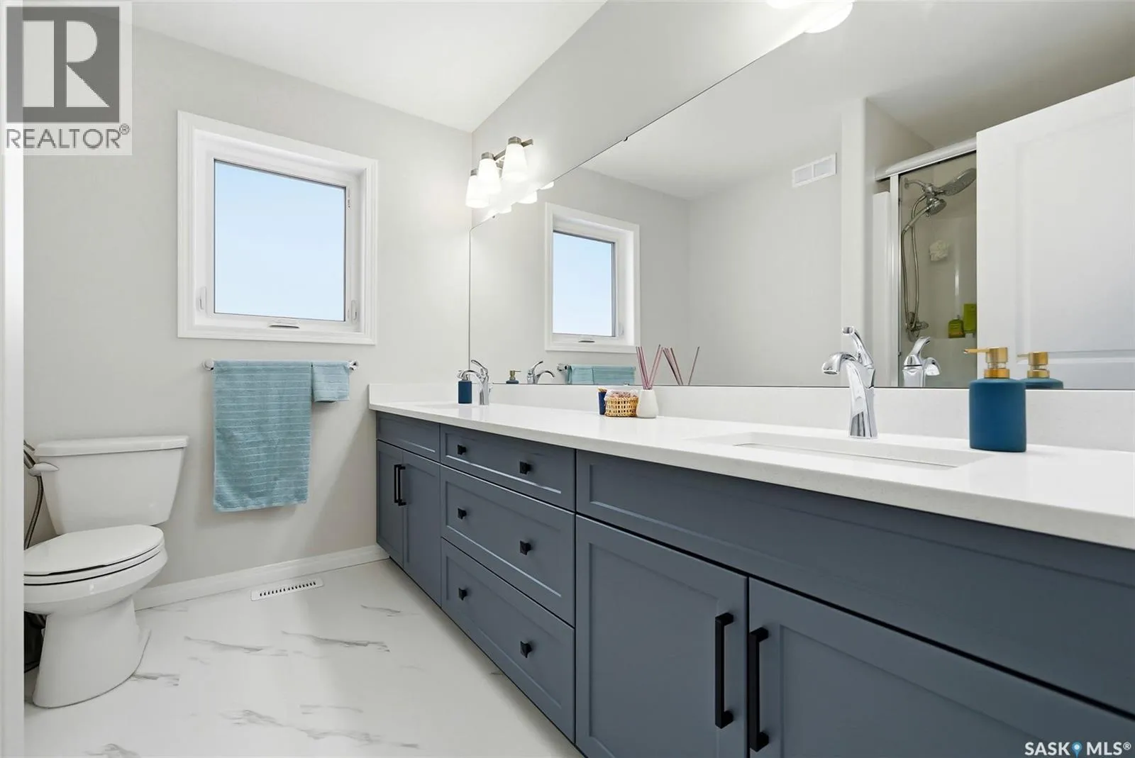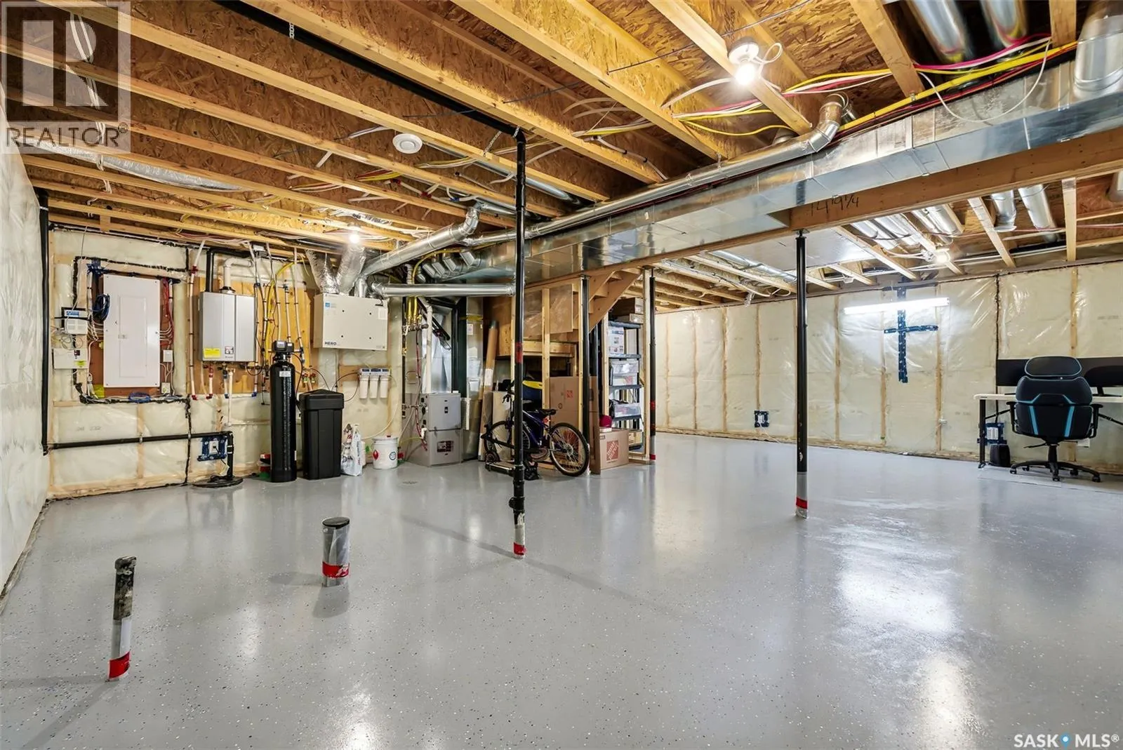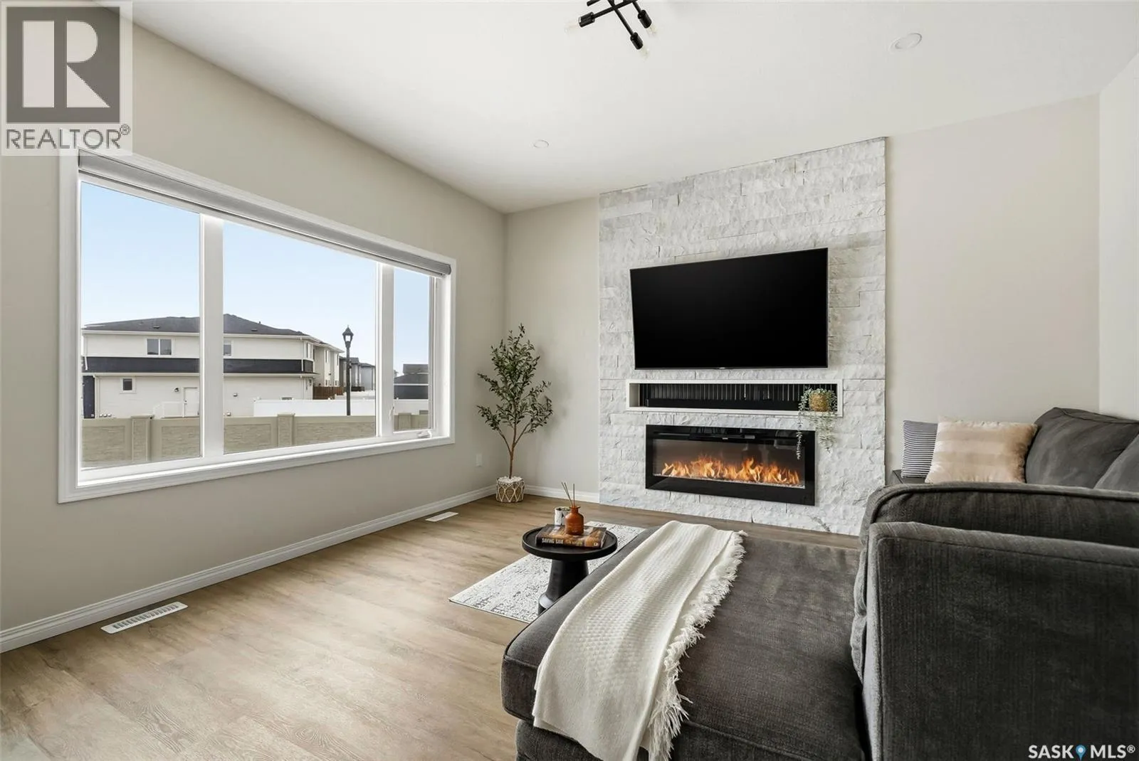 Welcome to 4330 Kinloch Bay E in The Townsâan impressive 2-storey home offering modern style, a functional family-friendly layout, and a huge fully fenced backyard. Built in 2021, this well-kept home features 1,609 sq. ft. above grade with 3 bedrooms, 3 bathrooms, and a bright second-floor bonus room. The main floor showcases an open-concept design with durable vinyl plank flooring, a stunning living room feature wall with electric fireplace, and a beautiful kitchen finished with quartz counters, two-tone cabinetry, tile backsplash, stainless steel appliances, gas range, and a large island perfect for everyday living and entertaining. The dining area overlooks the backyard and offers direct access outside. Youâll also appreciate main floor laundry and a convenient 2-piece bath. Upstairs, the spacious primary suite includes a 3-piece ensuite, while two additional bedrooms and a full 4-piece bath complete the level. The full basement is unfinished and ready for your future development, with a separate entry for added flexibility. Additional features include central A/C, on-demand hot water, sump pump, double attached garage, exposed aggregate double driveway, and parking for 4 vehicles. Situated on a generous 8,380 sq. ft. lot, this home offers excellent outdoor space and room to grow in a sought-after east Regina neighbourhood. (id:27476)