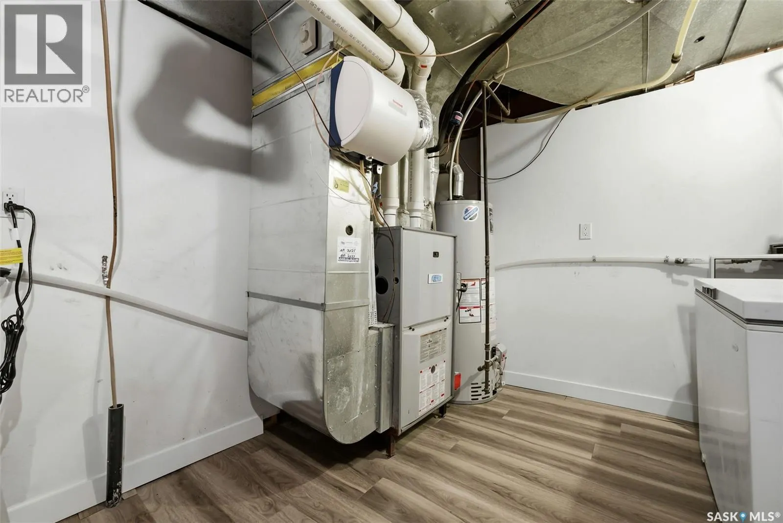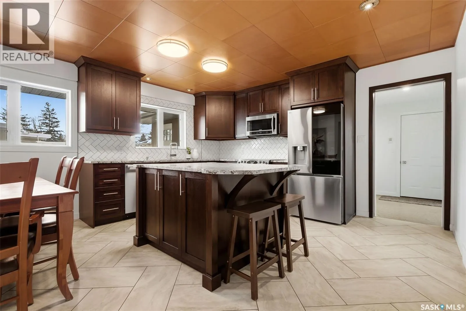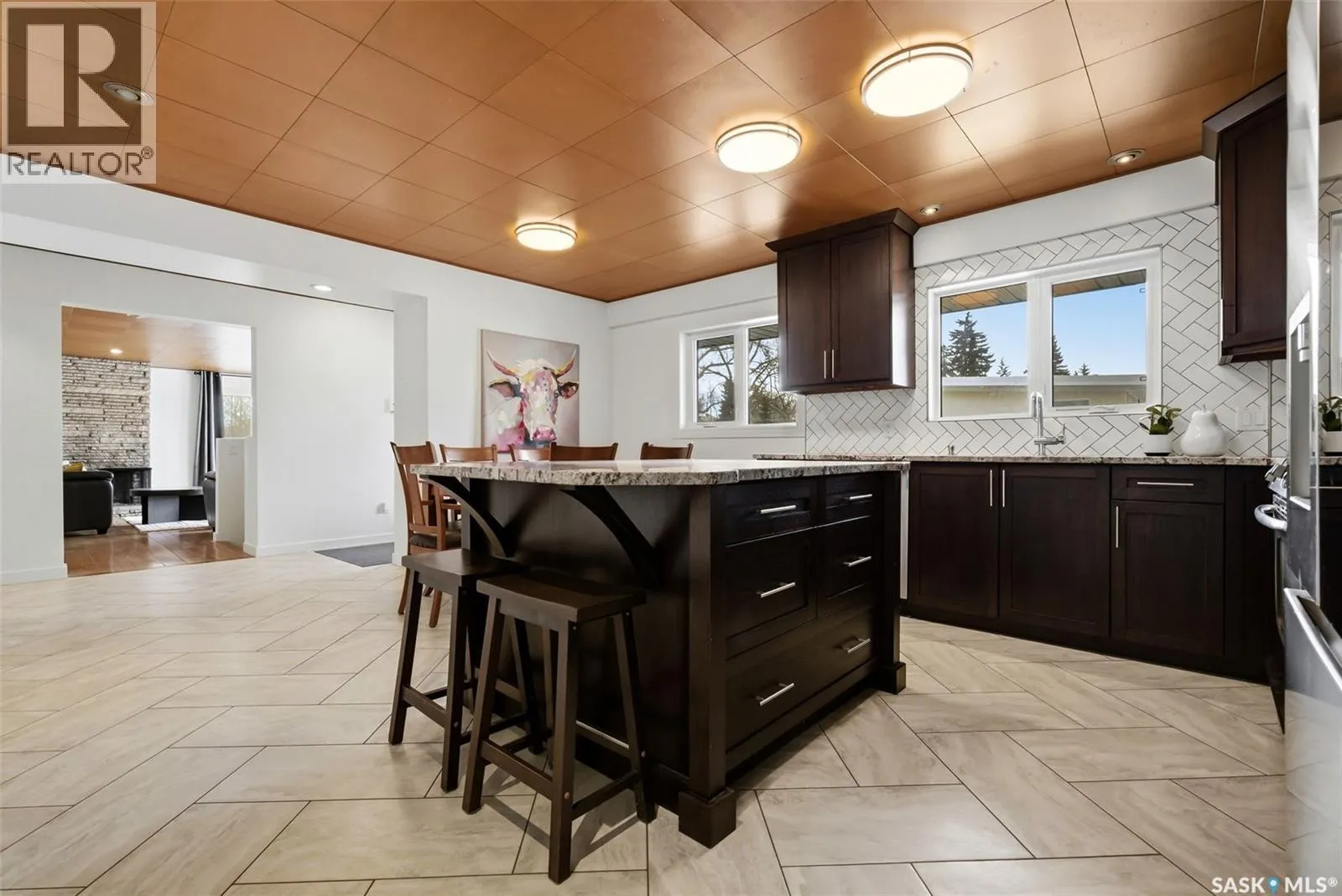 This beautifully maintained 1,690 sq ft Lakeview mid-century modern bungalow sits on a 6,759 sq ft corner lot facing Thornton Avenue. It features an incredible 1,600 sq ft addition completed in 2019, including the garage, work space, mudroom, ½ bath and laundry. Built on grade beam with piles, the addition is spray foam insulated with in-floor heat throughout for exceptional comfort and efficiency. The showstopping oversized double âGarage-Mahalâ offers 8â x 12â doors, built-in speakers, air compressor lines, HRV system, A/C, plumbed drains, water lines for washing vehicles, and a stunning wood ceiling. Durable FRP wall panels make it easy to maintain. A separate workspace includes sink, cabinetry and counter space, plus extensive built-in storage. The addition also features a mudroom with main floor laundry and 2-piece bath connecting the home and garage. Inside, youâll find timeless character with a bright living room showcasing floor-to-ceiling windows, a Tyndall stone wood-burning fireplace, and original teak hardwood flooring. The kitchen offers walnut cabinetry, granite countertops, tile backsplash, centre island, stainless steel appliances, wood ceiling detail, and dining area. Three bedrooms are located on the main floor, including the primary suite, along with an updated 4-piece bathroom. The finished basement includes a large rec room, office, gym area, 4th bedroom with egress window, 3-piece bathroom, and storage room with second laundry hookups. Upgrades include PVC windows, high-efficiency furnace, RO system, shingles (2019), fresh paint, 200 amp service in the garage plus 100 amp in the house, added exterior insulation, and a new sewer line with backflow valve. Outside features landscaped front yard with underground sprinklers and garden boxes with drip irrigation, new concrete sidewalks and driveway, fenced side yard, and a covered patio off the addition ready for a hot tub with stamped concrete pad, gas BBQ hookup and outdoor speakers. As per the Sellerâs direction, all offers will be presented on 03/02/2026 3:00PM. (id:27476)
