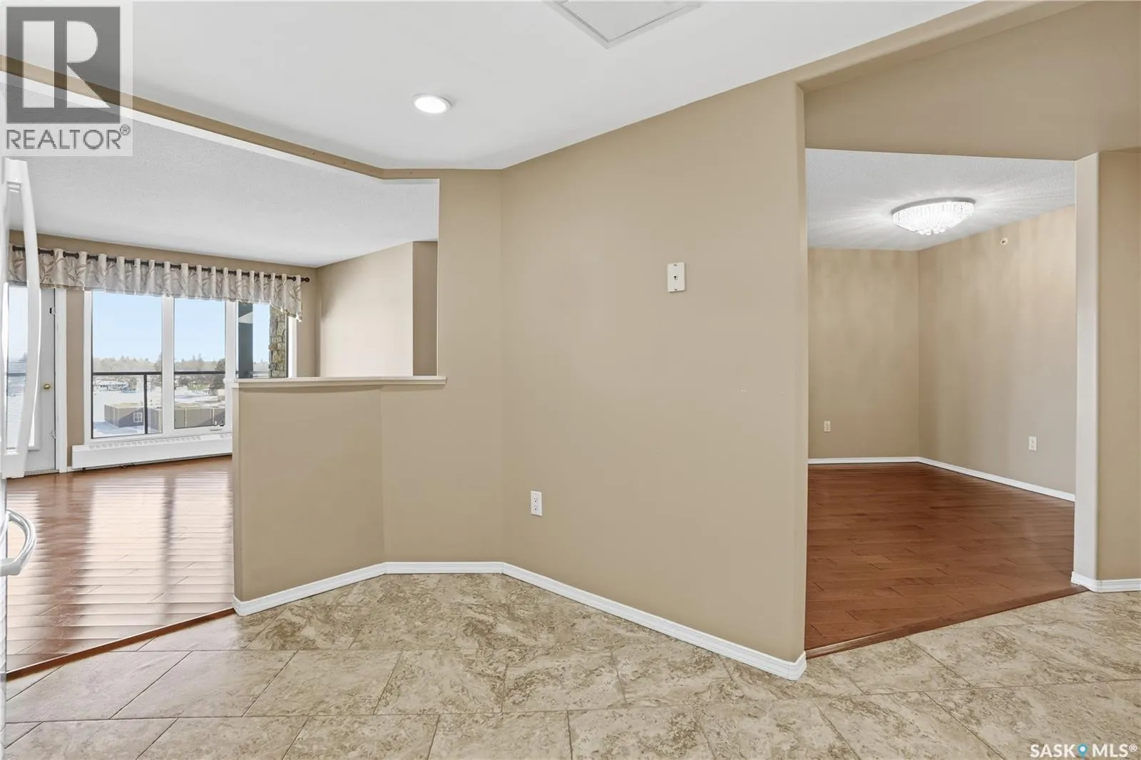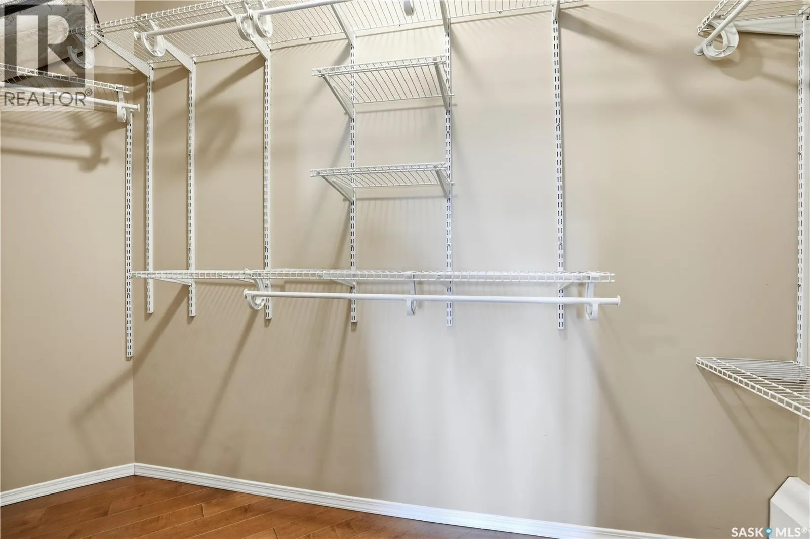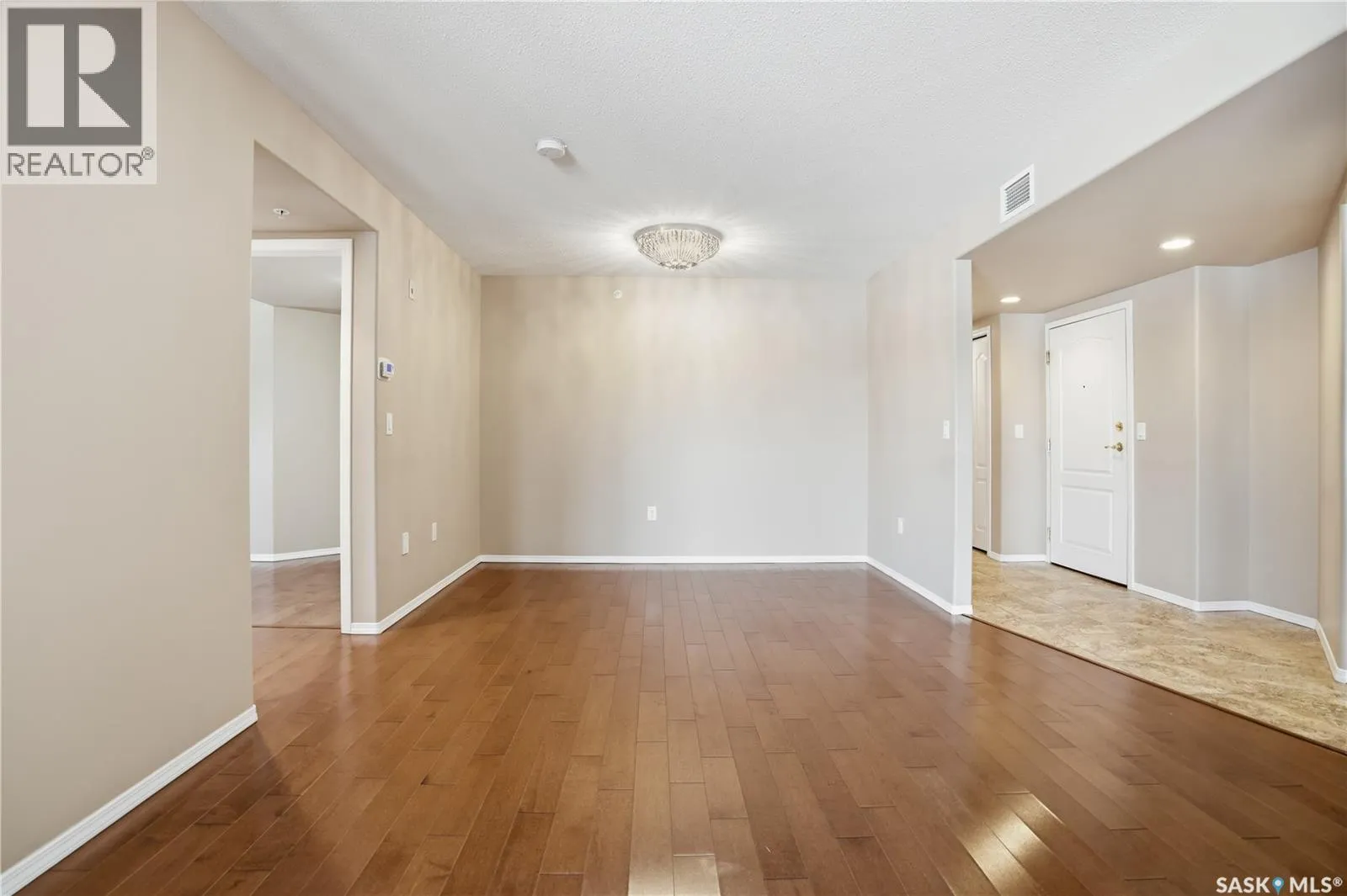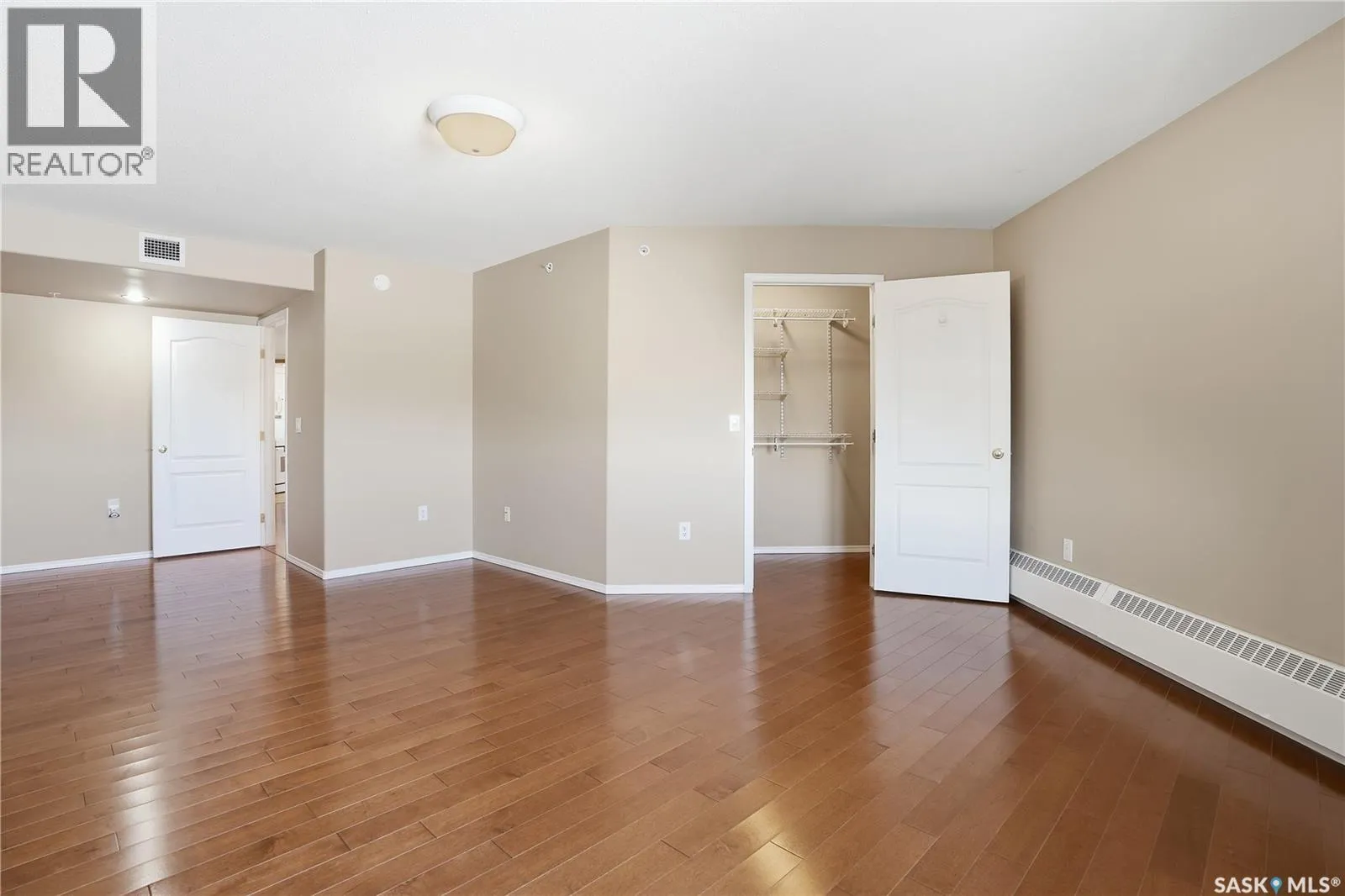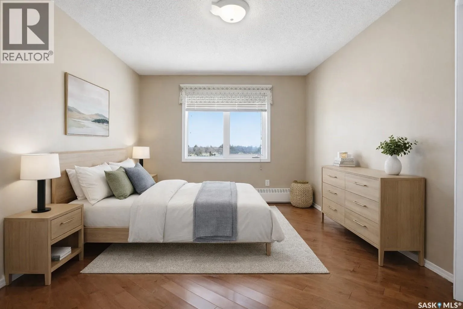 Pristine top floor condo in Marian Park is a show stopper. One of the larger floor plans in the complex at 1326 sq/ft, this 2 bedroom and 2 bathroom condo is move-in ready. Spacious entrance with Duraceramic tiled flooring flows through to the kitchen. Loads of natural light with the east facing balcony overlooking the open space. Bright white kitchen with upgraded appliances including microwave hood fan and Bosch dishwasher, quartz countertops, under cabinet lighting and pot lights. Gleaming engineered hardwood flooring throughout the living room, dining area and two generous bedrooms. The primary bedroom features an oversized walk-in closet and full 3 piece ensuite with tiled flooring. In-suite laundry is conveniently located on the opposite side of the bedrooms and near the main full bathroom. Enjoy your morning sunrise on the large east facing balcony which has natural gas bbq hook up. One underground heated parking stall with additional 60 sq/ft storage locker. Exceptional building with amenities room, exercise area and workshop for those who love to work on smaller projects! Exceptional south Regina location is close to bus stops, grocery stores, shopping, restaurants and a short commute to the airport. Condo fees include heat, water/sewer, reserve fund, common area maintenance and insurance, snow removal, garbage. Don't miss out on this great opportunity before it's too late. (id:27476)