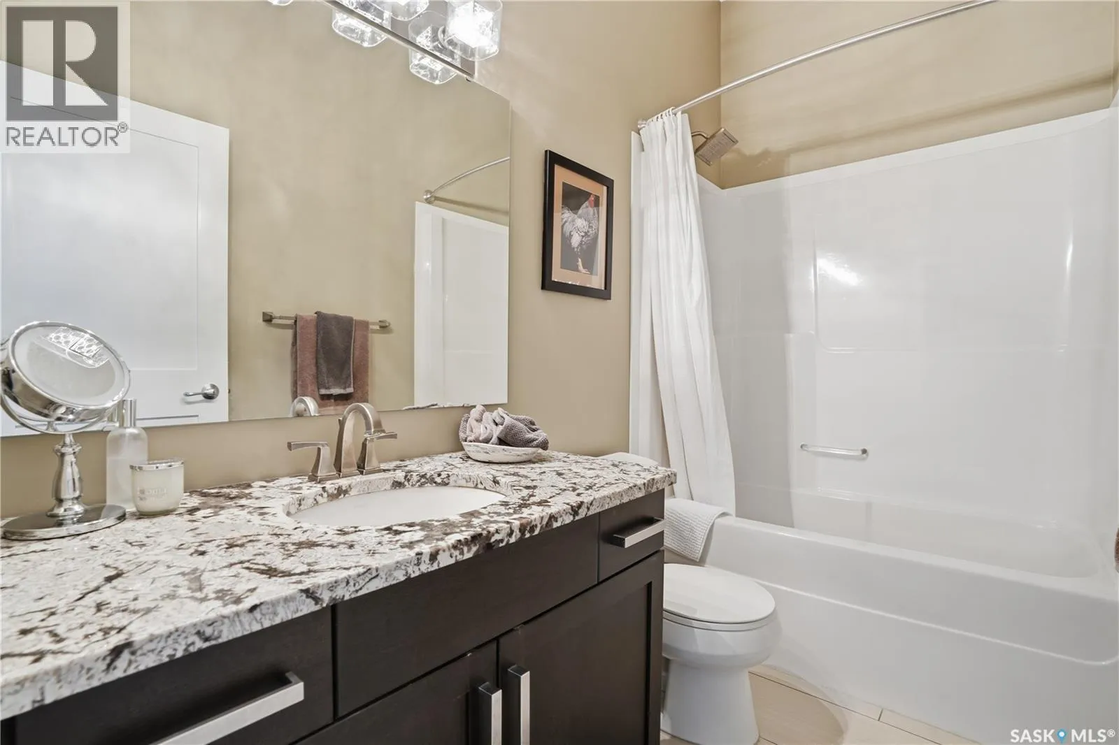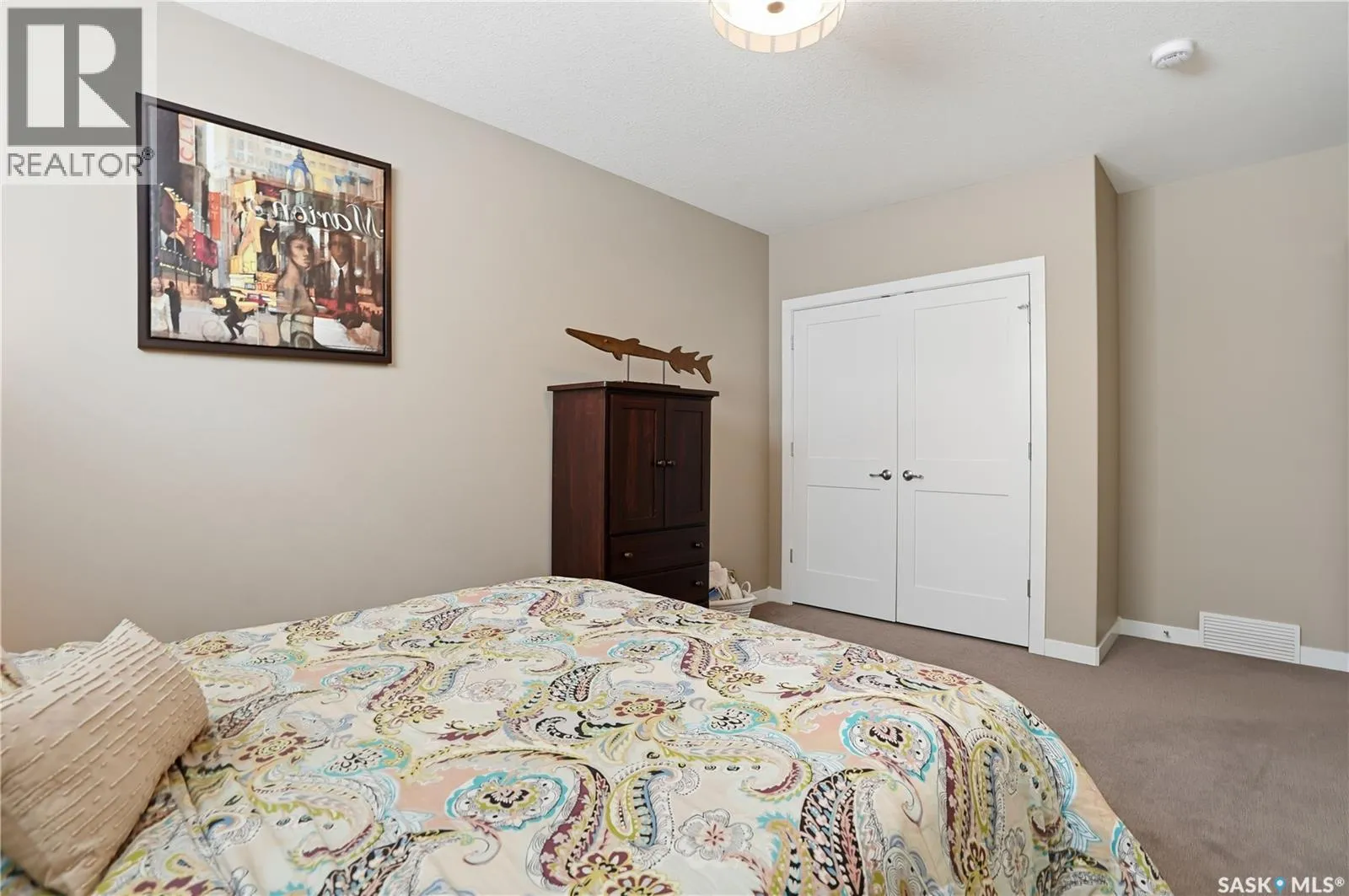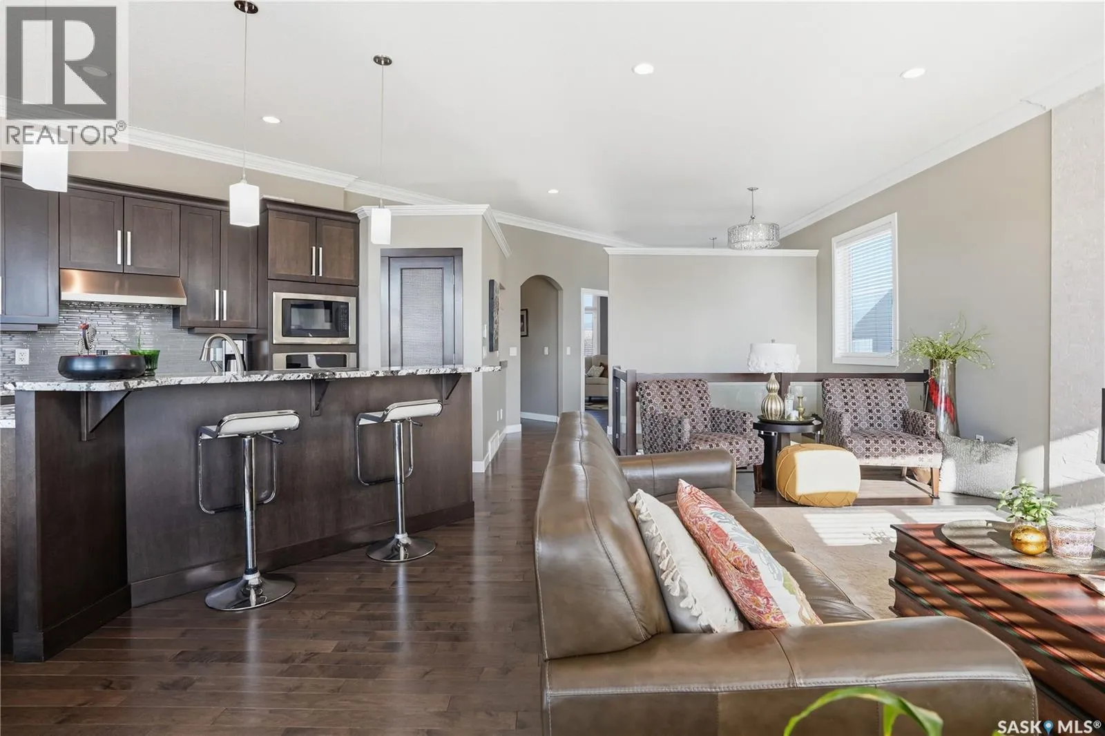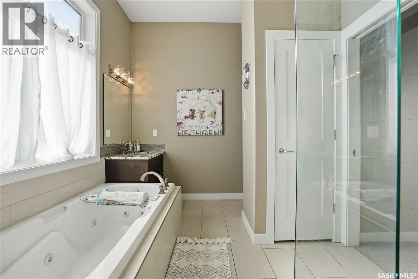 Welcome to 4506 Sandpiper Cr. E. This impeccably maintained bungalow is located on a quiet crescent in The Creeks, backing a walking path that leads directly to a nearby park. Built in 2012 by Varsity Homes, the quality of construction is evident throughout. The home sits on a generous 7,610 sq ft lot & showcases 5 bedrooms, 3 bathrooms, main floor den, main floor laundry, triple heated garage, outstanding curb appeal & so much more. A tile foyer welcomes you into 10' ceilings with elegant crown molding, creating a bright, warm, & truly beautiful home. An open concept layout offers a granite & maple kitchen w' hardwood floors, built in appliances w' gas range, pantry, & plenty of cabinets/drawers. Seamlessly weaving into the dining area where entry to the 2-tiered composite deck is perfect. The living rm displays a beautiful feature wall with 1 of 4 gas fireplaces in this extraordinary & bright home. An office with french doors paired with regal wainscotting, a full bath, mudroom w' access to garage, main floor laundry, a large bedroom, & finally the primary bedroom... here, elegance is felt with a feature wall & gas fireplace, dbl closets, & a generous sized spa-like luxurious ensuite w' jet tub, dbl vanities, & glass shower. A fully developed basement with its 9' ceilings provides an expansive rec room - stacking stone feature wall w' gas fireplace, BI system (HDMI wiring), a large bar with mini fridge & plenty of storage. Three additional bedrooms with large closets, a full bath, huge utility rm & storage areas complete the equally impressive basement. This area offers great flexibility for a family & guests. A 32x36 heated triple att garage is also immaculate, w' epoxy-coated floor, a floor drain, side entry to yard, & hot/cold taps. A beautifully landscaped outdoor area offers 2 decks, gas FP, garden, trees, grass & UG sprinklers, & is fully fenced backing a walking path that leads to a park. This 1695 sq ft pristine bungalow is simply stunning & a must see. As per the Sellerâs direction, all offers will be presented on 03/03/2026 9:30AM. (id:27476)
