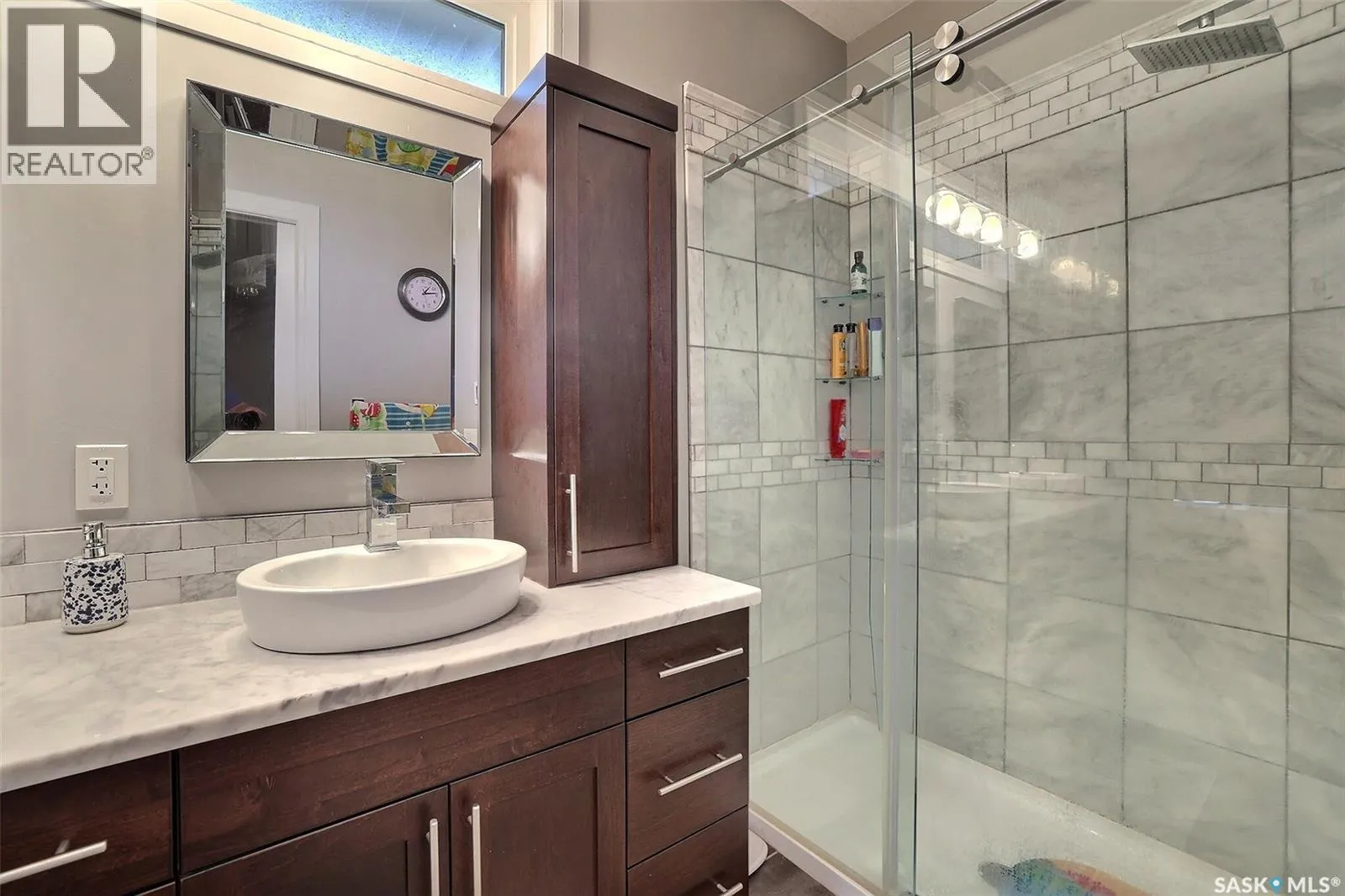 Are you searching for a refined bungalow living in the heart of Harbour Landing â one of Reginaâs most sought-after communities? This beautifully finished 1,600 sq ft home offers 5 spacious bedrooms and the perfect balance of modern style and functional family space. The bright, open-concept main floor seamlessly connects the living, dining, and kitchen areas â ideal for both everyday living and effortless entertaining. At the center, the kitchen impresses with solid-surface countertops, high-end appliances, and abundant cabinetry designed for both beauty and practicality. The primary suite provides a private retreat, complete with a spa-inspired ensuite that invites you to relax and recharge. Downstairs, the fully developed basement adds even more versatility with additional bedrooms and a large family room perfect for movie nights, game days, or a kidsâ hangout space. And enjoy unbeatable convenience â schools, parks, walking paths, shops, and restaurants are all just minutes away. Stylish, spacious, and superbly located â this is a home designed to grow with you. Book your private showing today. (id:27476)