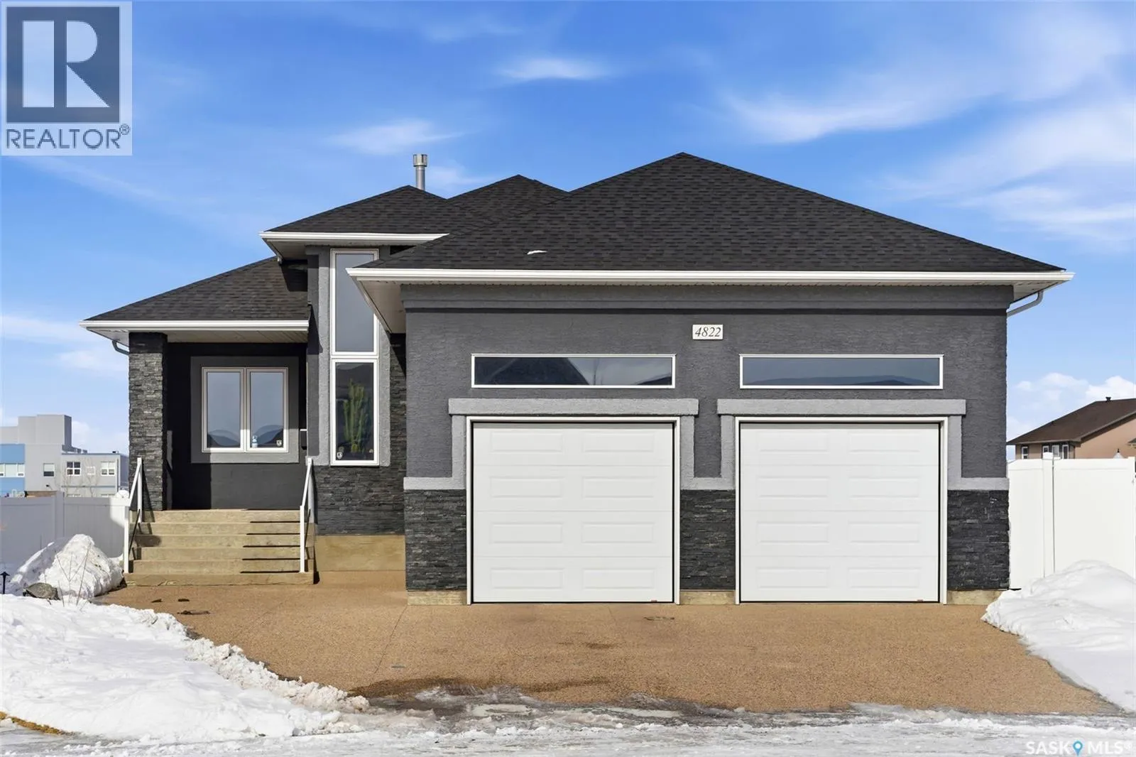 Welcome to your dream home in Regina's desirable east end! This premium custom-built bungalow blends luxury, comfort, and smart design in one of the area's most convenient and family-friendly spots. The open main floor features soaring 10' ceilings with maple railing with glass inserts for that sophisticated touch. The gourmet kitchen is a highlight, with quality-stained maple cabinets, gleaming granite countertops, built-in microwave oven combo and an induction cooktop. One and a half bathrooms that pamper you with granite vanities and backsplashes. Your main floor is complete with two bedrooms. The finished walk-out basement offers a cozy retreat with radiant in-floor heating and direct backyard access. In the recreation room youâll find gorgeous maple bar with granite perfect for entertaining. In the basement you will find three additional bedrooms and a 4-piece bath. Nestled in Regina's thriving east endâsteps from Acre 21 shopping centre (with groceries, restaurants, coffee shops, medical offices, and more), close to excellent schools (backs school grounds for added privacy and open views) and beautiful parks like nearby Green Meadow Park, and quick Ring Road accessâthis quiet, family-oriented neighbourhood combines everyday convenience with easy urban perks in one of the city's fastest-growing areas. Move-in ready and full of pride-of-ownership appeal (id:27476)