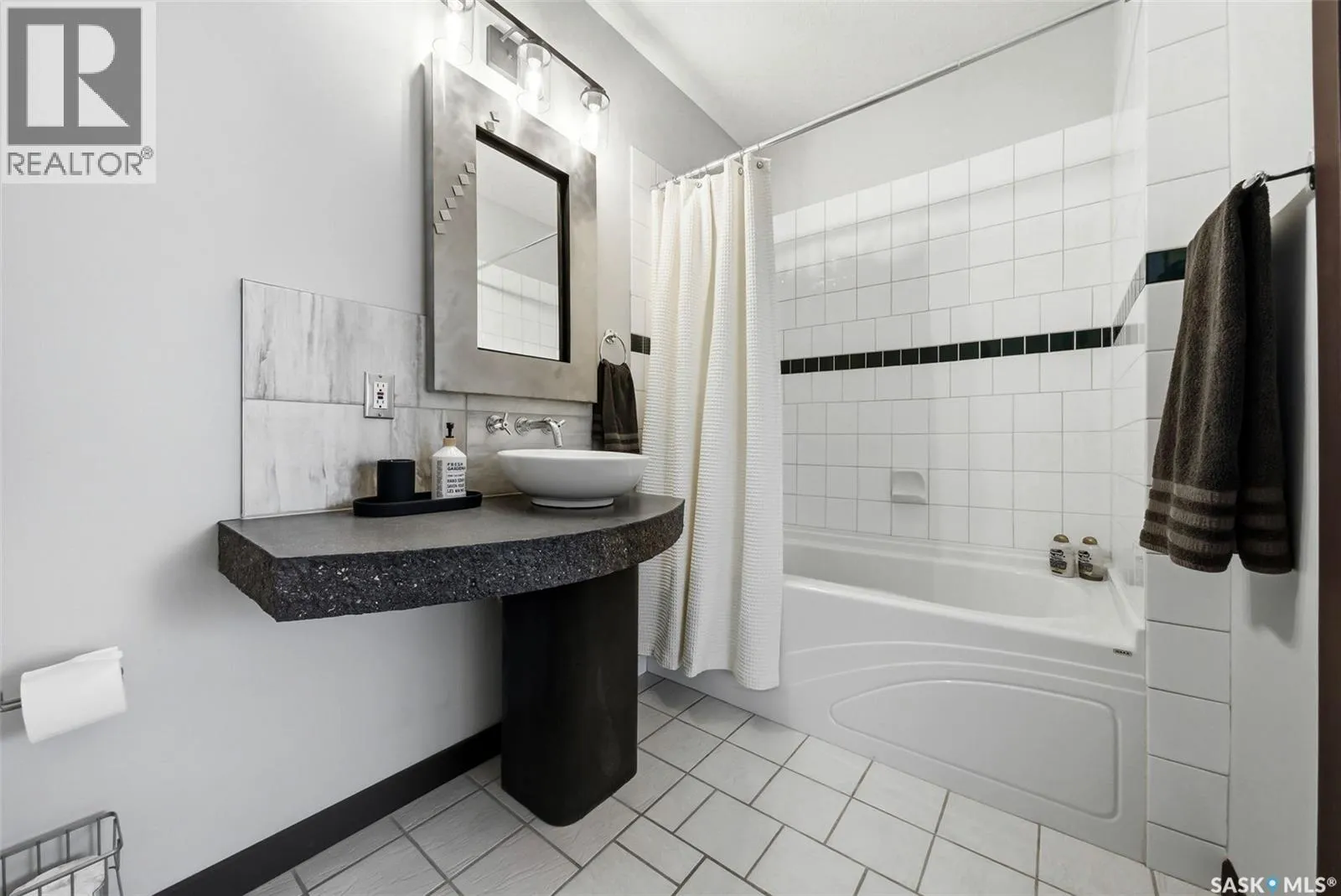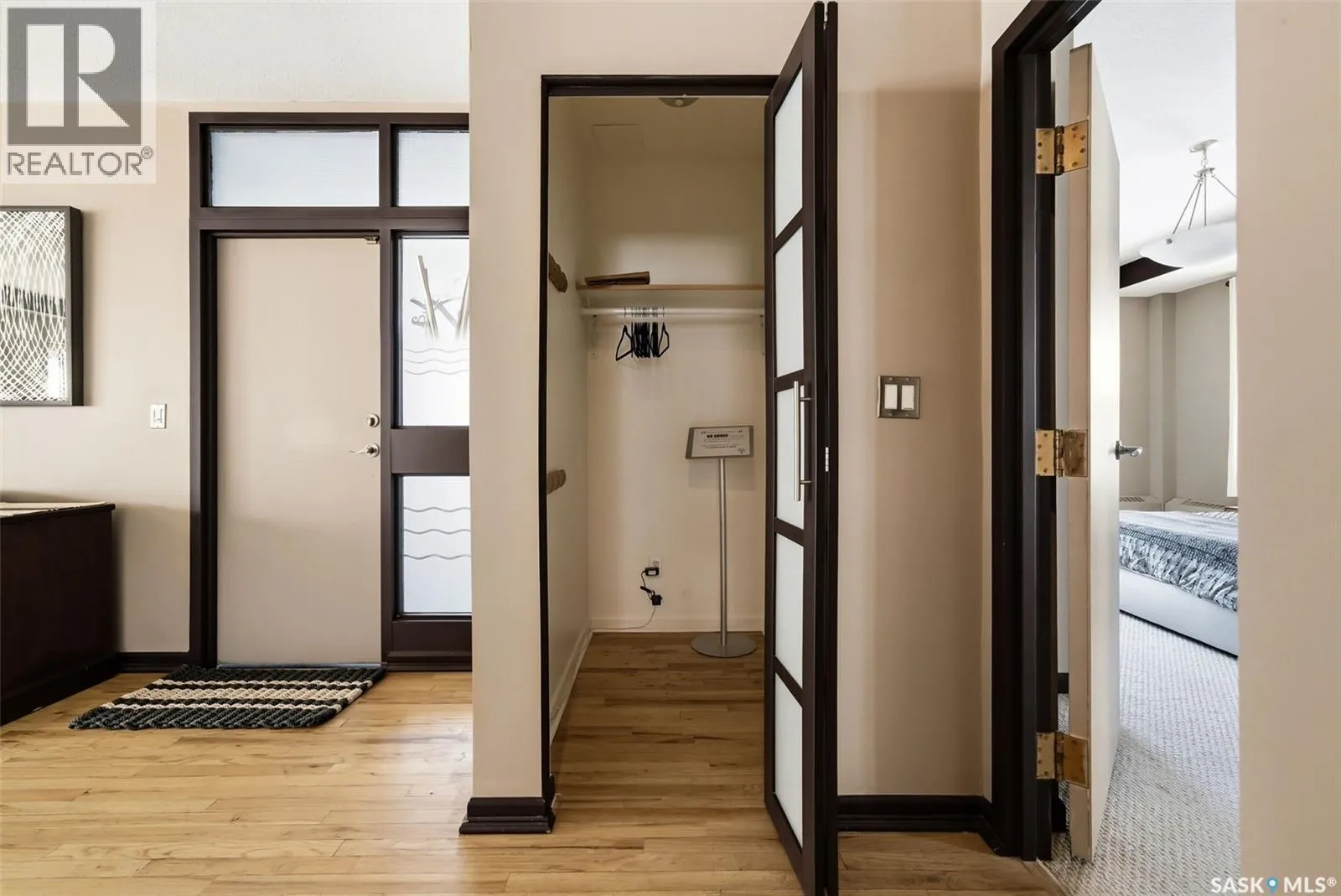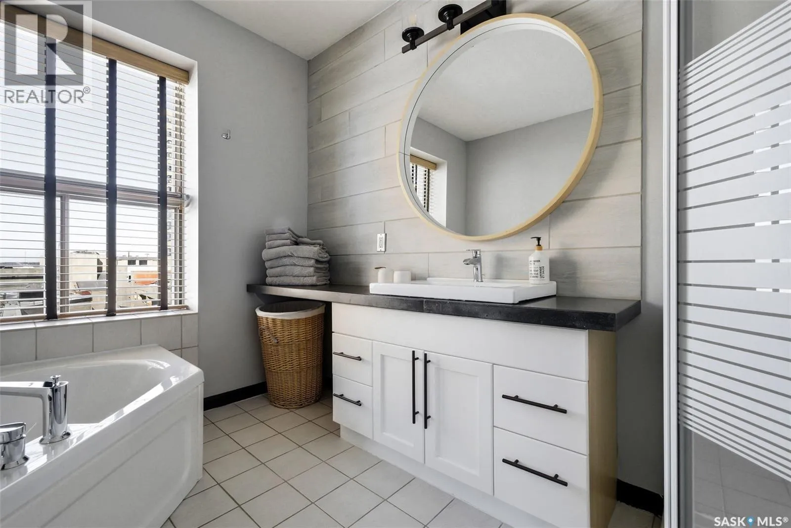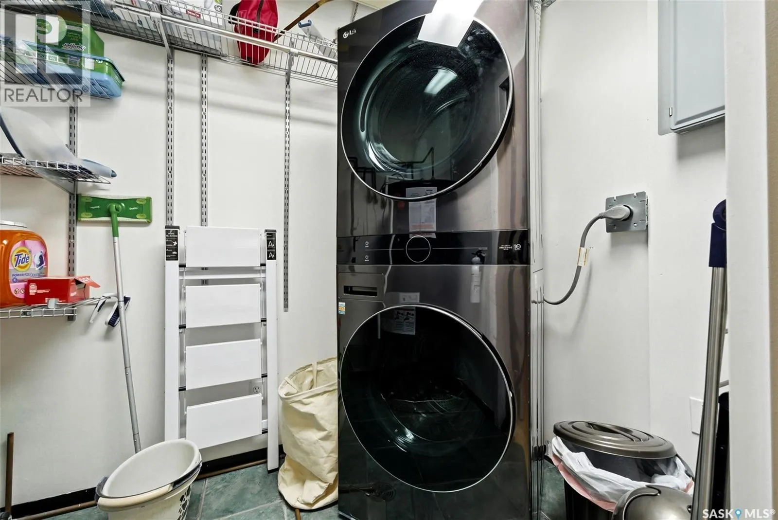 Penthouse Living in the Historic Western Trust Building! Welcome to the coveted fifth-floor penthouse offering over 1,900 square feet of refined downtown living. This exceptional home blends heritage architecture with thoughtful modern updates. Natural light pours through oversized windows, highlighting rich hardwood floors and soaring ceilings that enhance the open-concept design and create an airy, sophisticated atmosphere ideal for both everyday living and entertaining. The showpiece kitchen, completed in January 2024, features ceiling-height white cabinetry, quartz countertops, a dramatic full-height backsplash, and a massive island perfect for gatherings. A dedicated coffee station with beverage fridge and floating walnut shelves adds both function and warmth, while abundant storage ensures everything has its place. Positioned before the primary suite, a bright, sunny office enclosed with a stylish glass door provides the perfect work-from-home space while maintaining privacy without sacrificing natural light. The primary suite offers plush carpet flooring, double closets, and a private ensuite with a new white vanity, concrete countertops, separate shower, and corner jetted tub â a relaxing retreat at the end of the day. French doors lead to a spacious second bedroom with its own four-piece bath, which also has hall access for added flexibility and guest convenience. Additional highlights include a generous laundry room with new stackable washer and dryer, in-suite air conditioning with rooftop unit placement for quiet efficiency, private elevator access directly into the suite, secure building entry, and convenient stairwell access. Storage unit located in the building. One heated underground parking stall is included, located beneath the Globe Theatre. Bonus! A rare opportunity to own a distinguished penthouse residence offering space, character, and modern luxury in the heart of Regina â steps from dining, shopping, and vibrant downtown amenities. (id:27476)