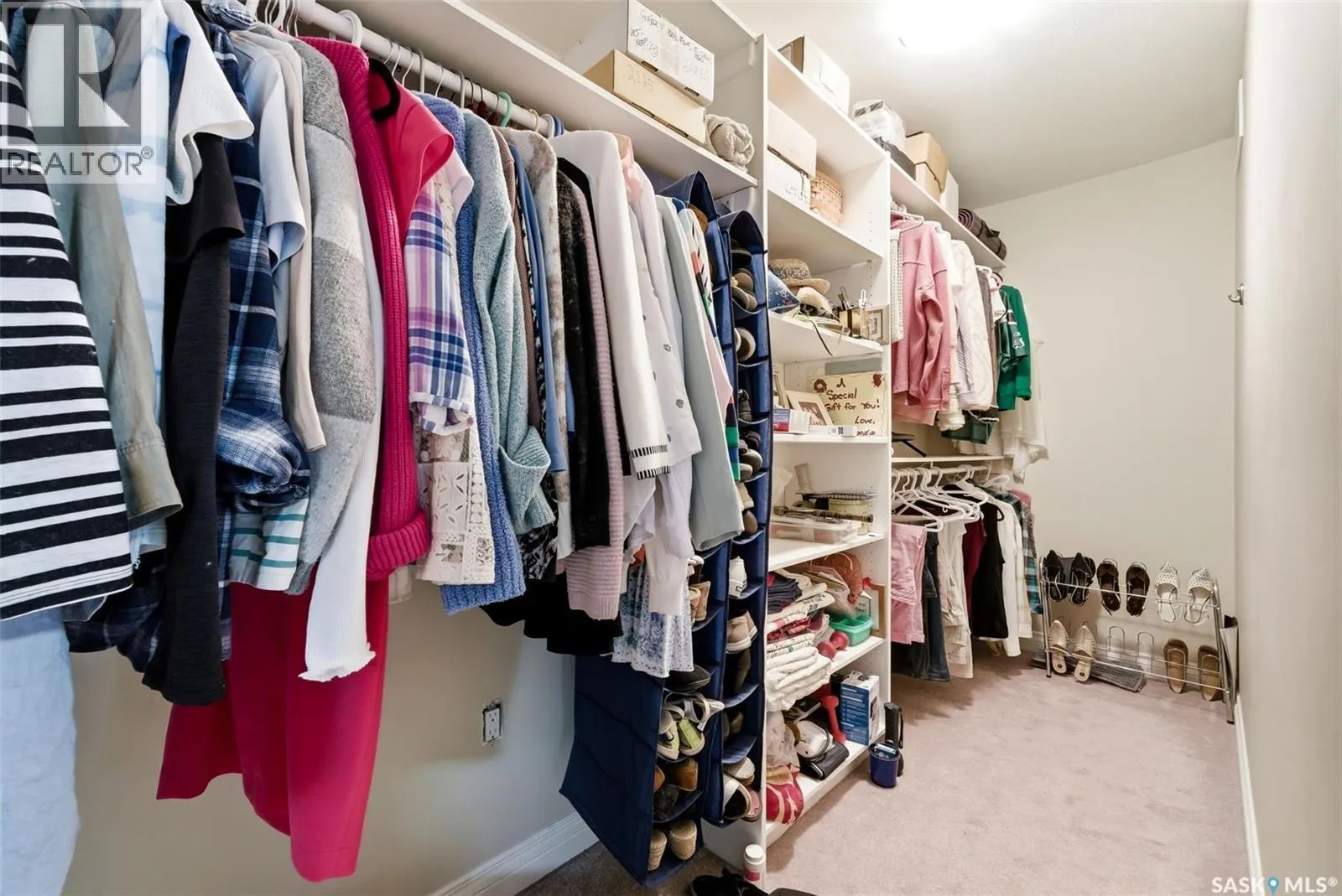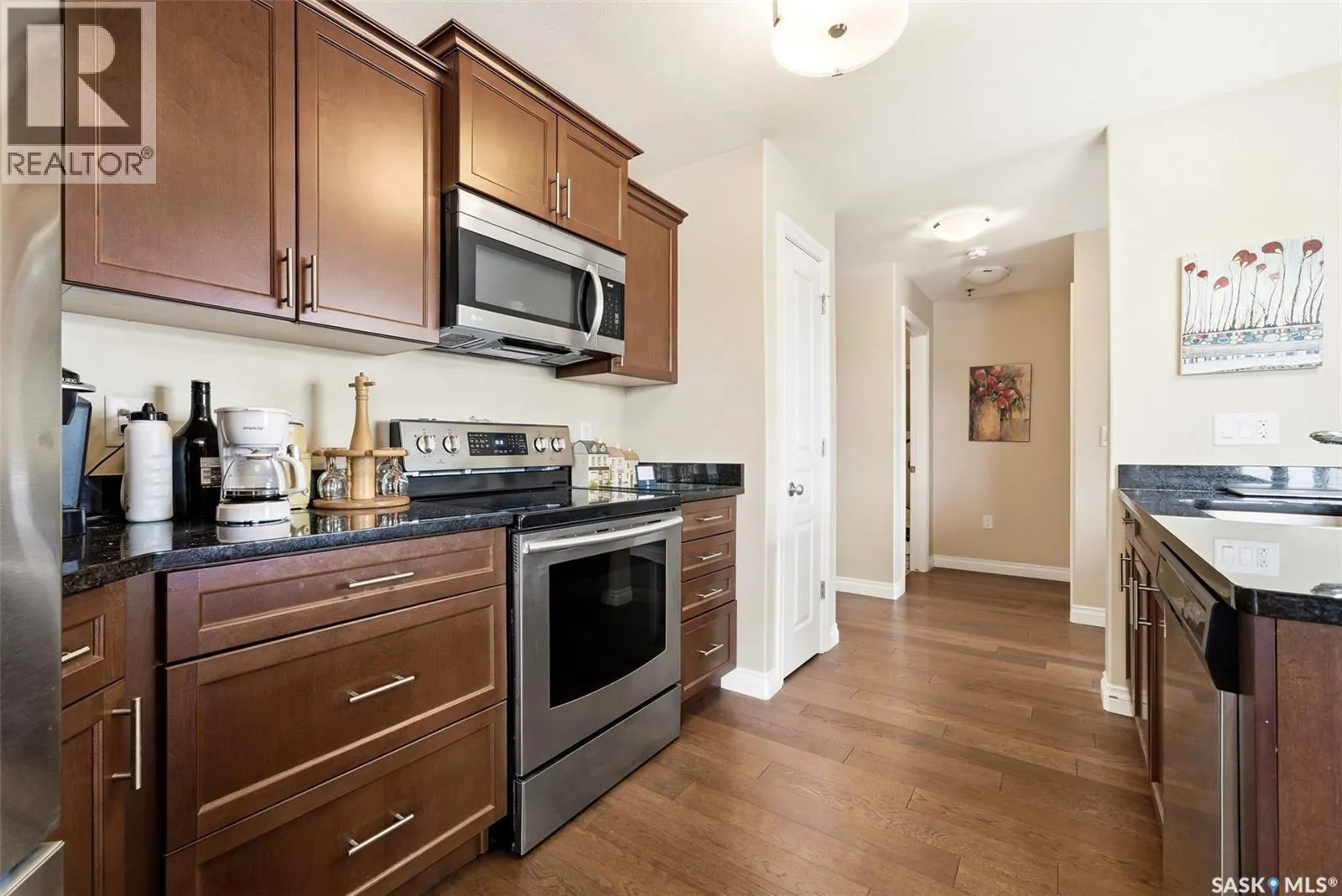 Plan: 102198179 Unit: 36 A very bright and spacious 2nd floor corner unit in the Haughton Villas. A very unique building that includes a shared courtyard and great common spaces. Well located in Regina's East End close to parks, Prince of Wales Drive and plenty of restaurants and shopping. This two bedroom, two bathroom unit welcomes you with a spacious foyer and a well-laid out floor plan. The 2nd bedroom (with walk-in closet) and full bathroom are located away from the rest of the unit, perfect for guests. The main living room, kitchen and dining space have a great natural light. Easy access to the corner balcony and storage room. The large master suite has a massive walk-in closet and full ensuite with shower. In suite laundry room. One heated underground parking stall and an oversized storage space are included with this unit. Condos fees of $547.75 include water (building has central, shared water heater). Unit has it's own furnace and central air conditioning. (id:27476)