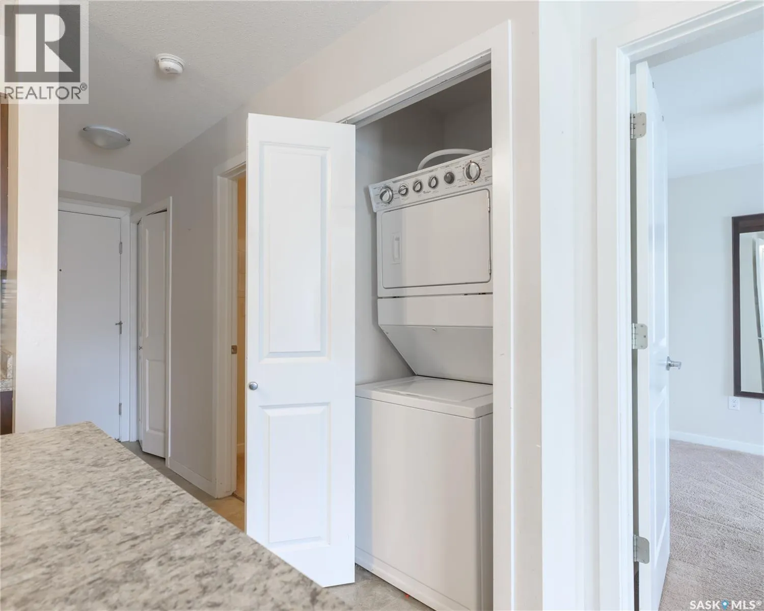 Welcome to this well-maintained 1 bedroom + den condo located in the desirable community of Harbour Landing. This bright and functional unit offers an open-concept layout with a modern kitchen featuring ample cabinetry, a spacious living area, and large windows that provide plenty of natural light. The den provides a versatile space perfect for a home office or guest room. The comfortable bedroom, full bathroom, and convenient in-suite laundry add to the practicality of this home. A bus stop located just outside the building offers excellent convenience for commuters. Close to parks, shopping, restaurants, and all south-end amenities, this home is ideal for first-time buyers, downsizers, or investors. (id:27476)