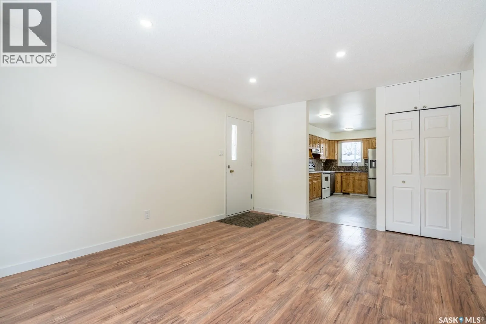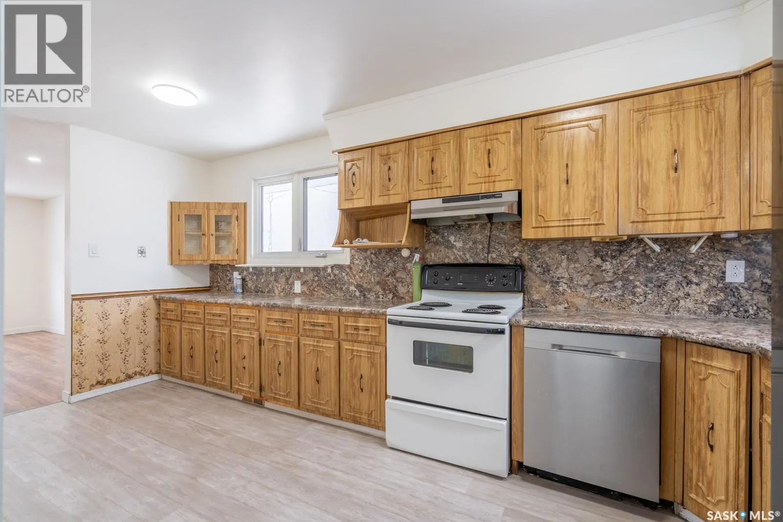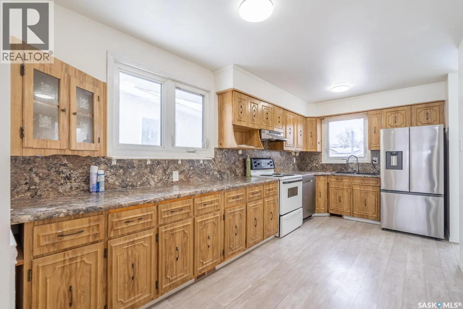 Welcome to this well-maintained 4-bedroom, 2-bathroom bungalow located on a quiet street in Reginaâs desirable east end â Glencairn. This home offers a great blend of comfort, updates, and functionality. Step inside to a bright, west-facing living room that fills with natural light. The spacious kitchen offers ample cabinetry, perfect for family meals and entertaining. Three well-sized bedrooms and a refreshed 4-piece bathroom complete the main floor, which also features updated laminate flooring throughout most of the level. The solid and inviting basement includes a large rec room, a fourth bedroom, a 3-piece bathroom, and a dedicated furnace/storage area. New carpet adds comfort and warmth to the lower level. Recent updates include: fresh paint, Laminate flooring on most of the main floor, renovated main-floor bathroom, newer carpet in the basement, updated windows throughout the main floor, a new back deck, and a fully fenced yard that is perfect for kids, pets, or summer gatherings, with a double detached garage with convenient access from the rear alley. Situated just minutes from East End amenities and with quick access to Ring Road, this home is ideal for families or anyone seeking a move-in-ready property in a well-established neighbourhood. (id:27476)