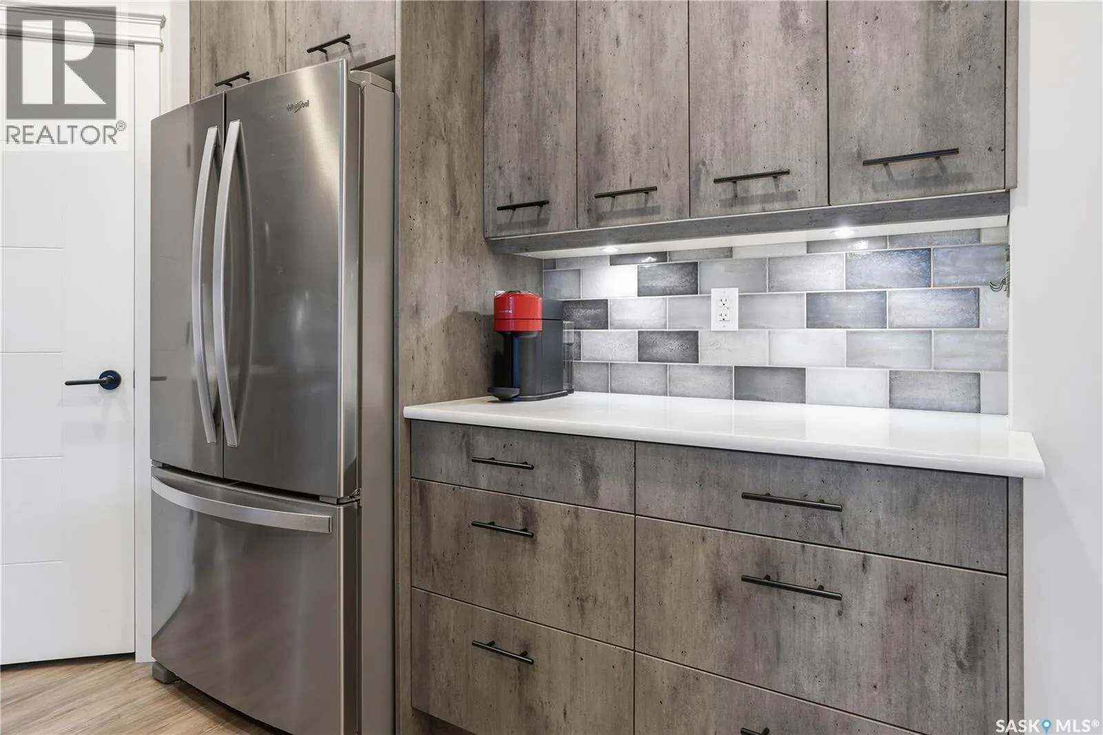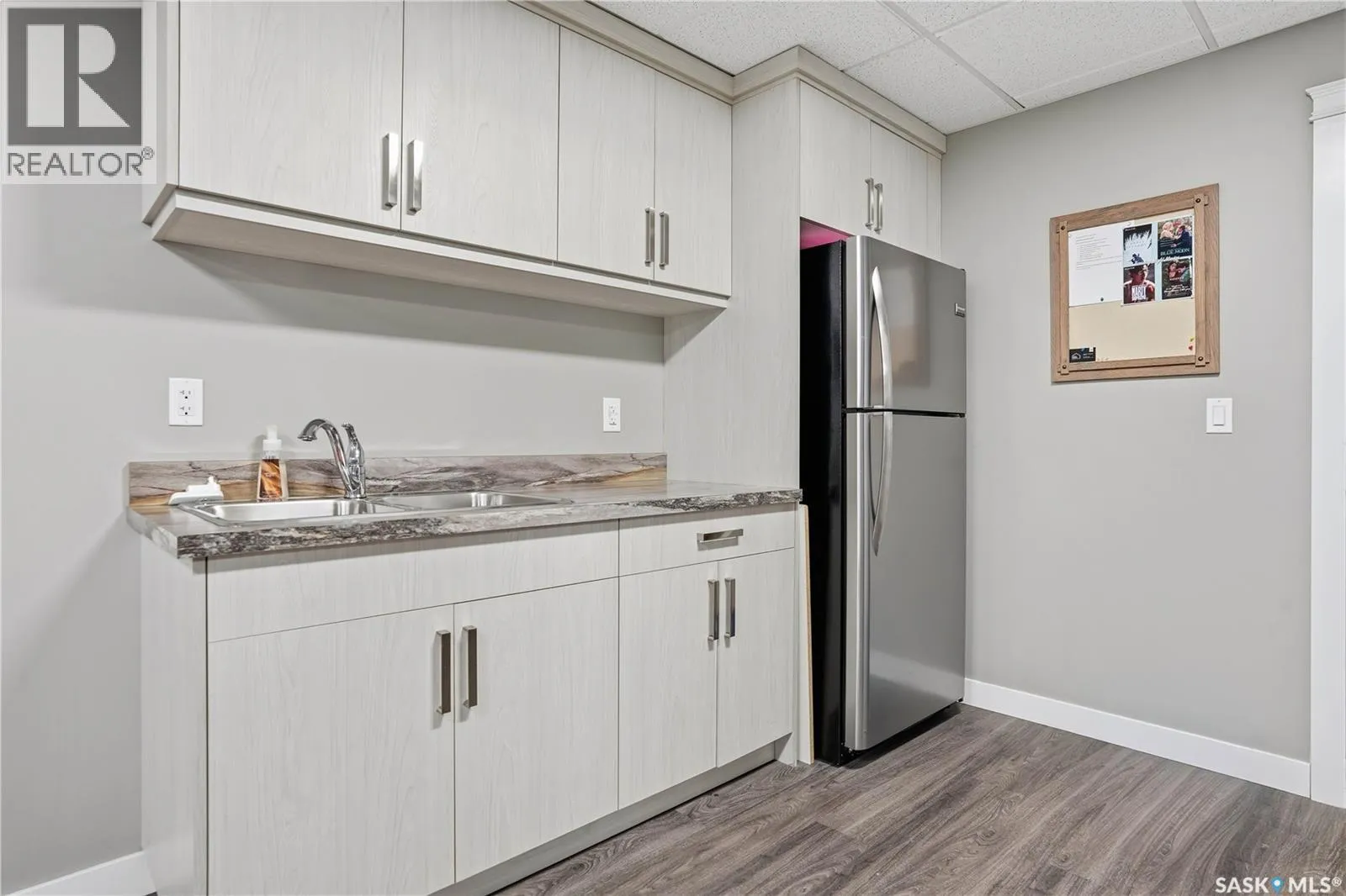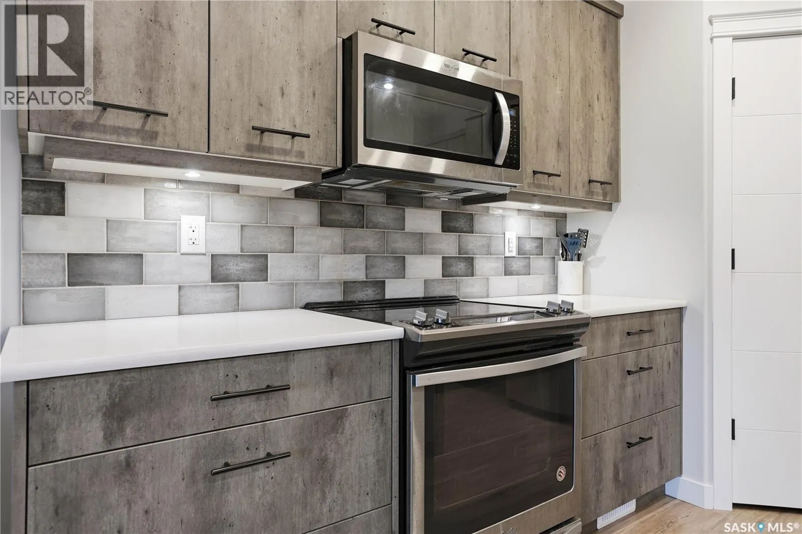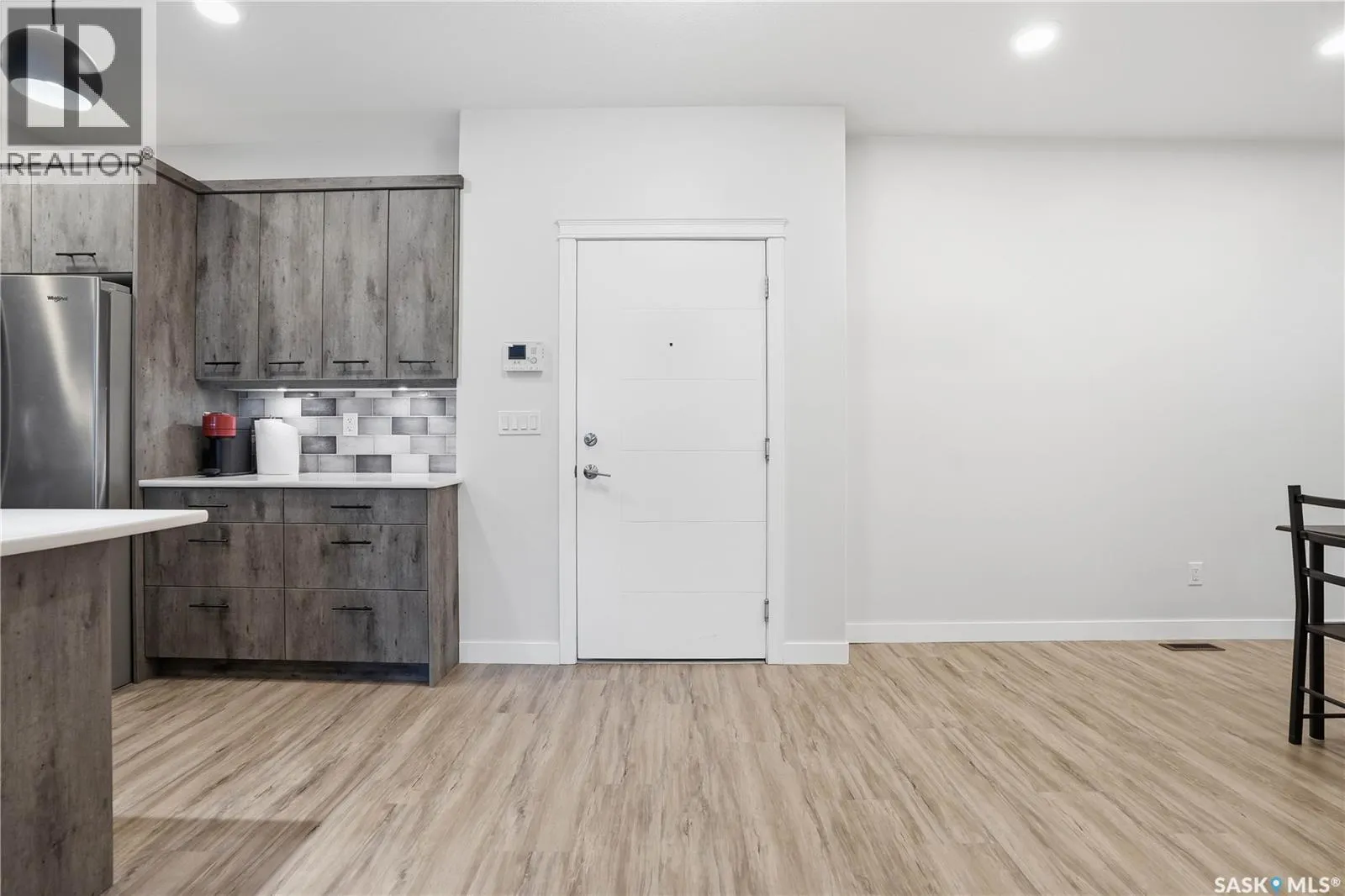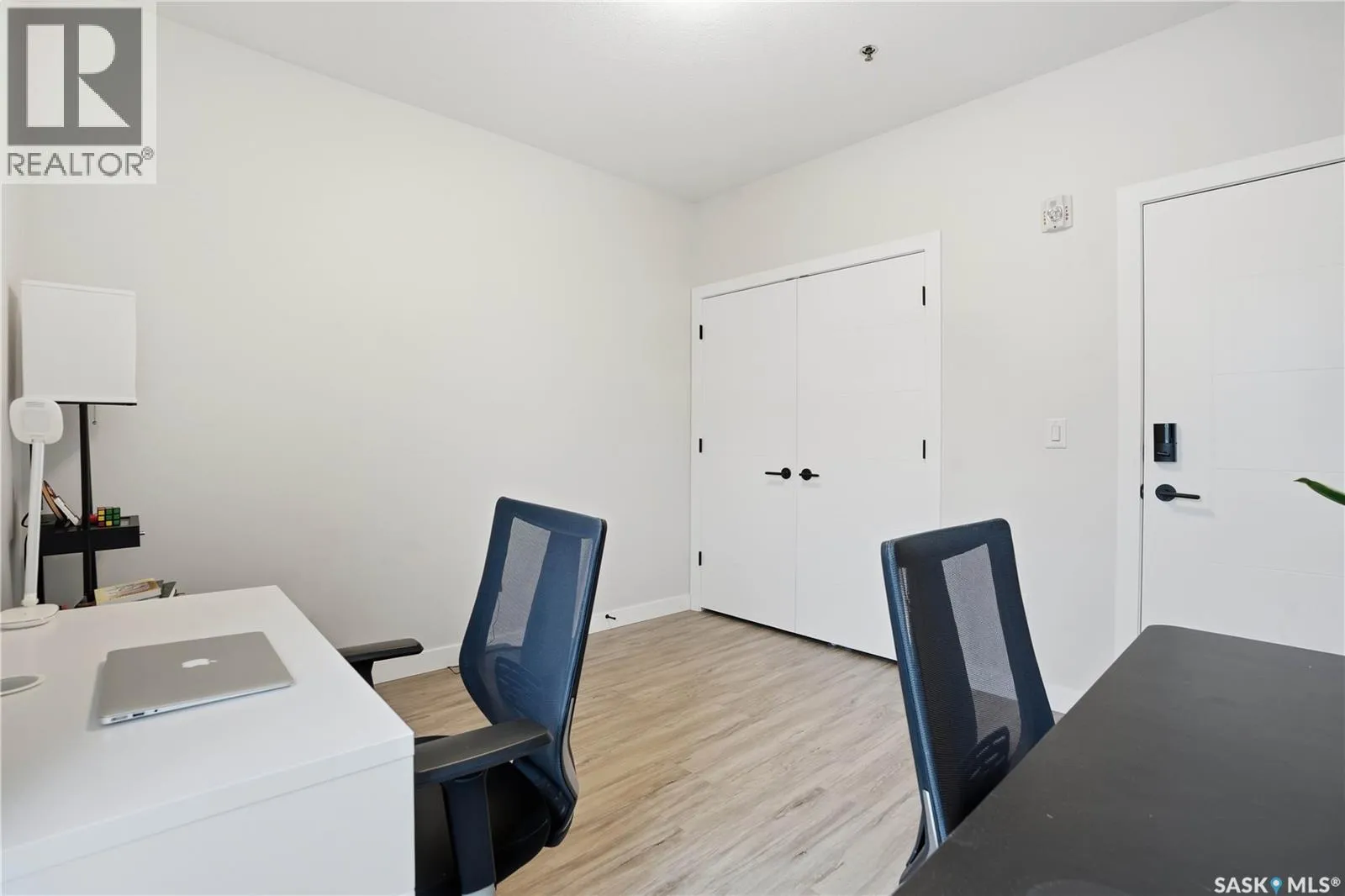 Welcome to this beautifully finished 1,130 sq ft condo offering 2 bedrooms and 2 bathrooms with a bright, open-concept layout. Wide plank vinyl flooring runs throughout the majority of the unit, creating a modern and cohesive feel. The stylish kitchen features white granite countertops, a large island with seating, stainless steel appliances, corner pantry, tiled backsplash, and striking black pendant lighting above the island. The living room offers a patio door leading to your private balcony, while the dining area near the front entrance easily accommodates a large tableâperfect for entertaining. The spacious primary bedroom features plush carpeting, a large walk-in closet (5 x 8), and an impressive ensuite with double sinks, granite countertops, and a walk-in shower. A second bedroom provides flexible space for guests or a home office. The unit also includes a 4-piece main bathroom and a convenient laundry area with tiled flooring. Additional highlights include a heated underground parking stall and private storage. The secure building offers an elevator, amenities room, and a shared rooftop patio for residents to enjoy. Ideally located close to downtown, Wascana Park, and with easy access to the University of Regina. (id:27476)