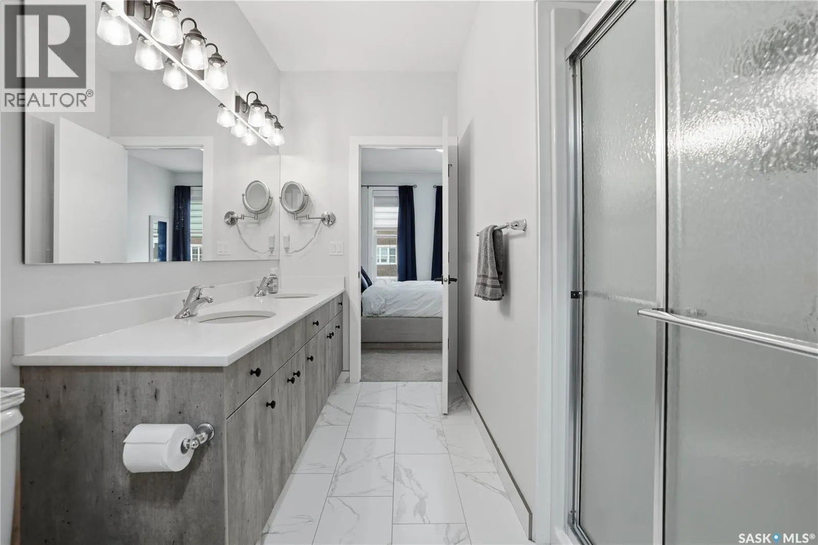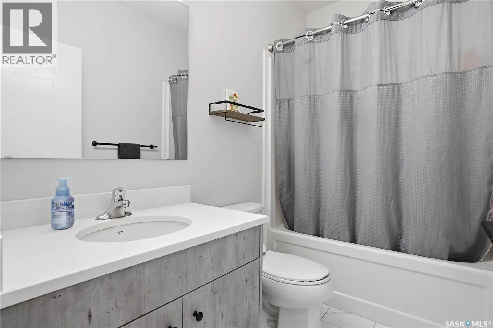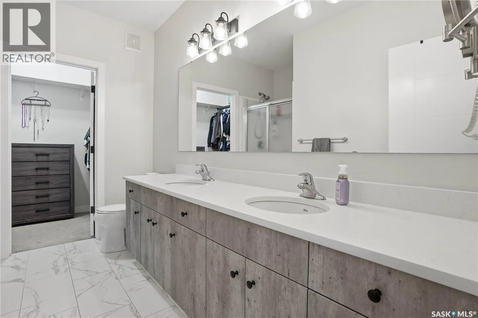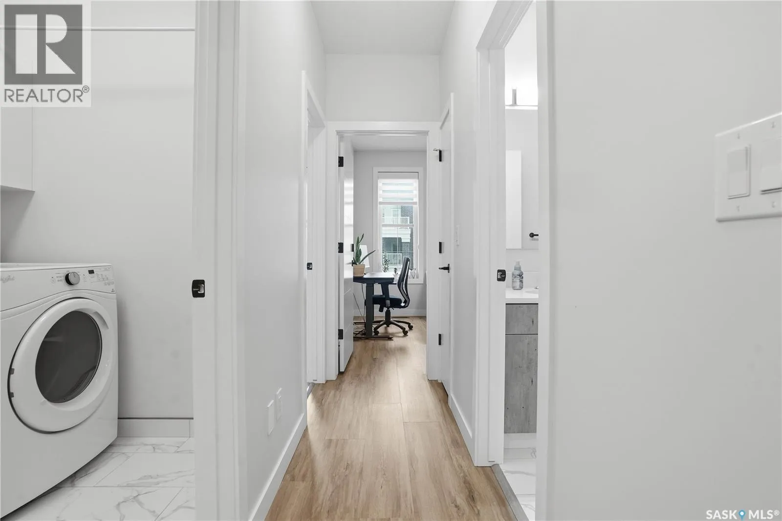 Welcome to this beautifully finished 1,130 sq ft condo offering 2 bedrooms and 2 bathrooms with a bright, open-concept layout. Wide plank vinyl flooring runs throughout the majority of the unit, creating a modern and cohesive feel. The stylish kitchen features white granite countertops, a large island with seating, stainless steel appliances, corner pantry, tiled backsplash, and striking black pendant lighting above the island. The living room offers a patio door leading to your private balcony, while the dining area near the front entrance easily accommodates a large tableâperfect for entertaining. The spacious primary bedroom features plush carpeting, a large walk-in closet (5 x 8), and an impressive ensuite with double sinks, granite countertops, and a walk-in shower. A second bedroom provides flexible space for guests or a home office. The unit also includes a 4-piece main bathroom and a convenient laundry area with tiled flooring. Additional highlights include a heated underground parking stall and private storage. The secure building offers an elevator, amenities room, and a shared rooftop patio for residents to enjoy. Ideally located close to downtown, Wascana Park, and with easy access to the University of Regina. (id:27476)