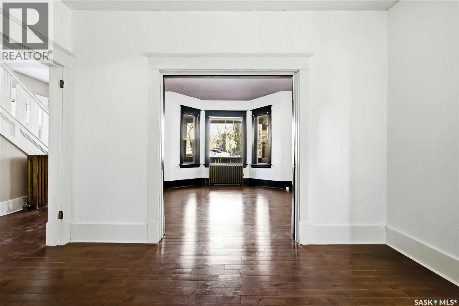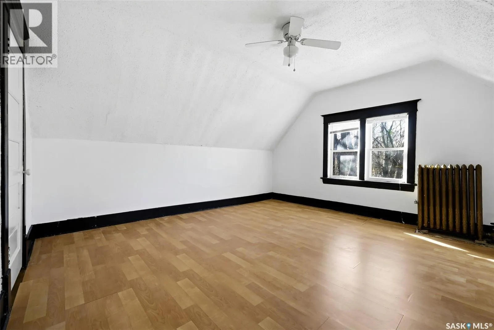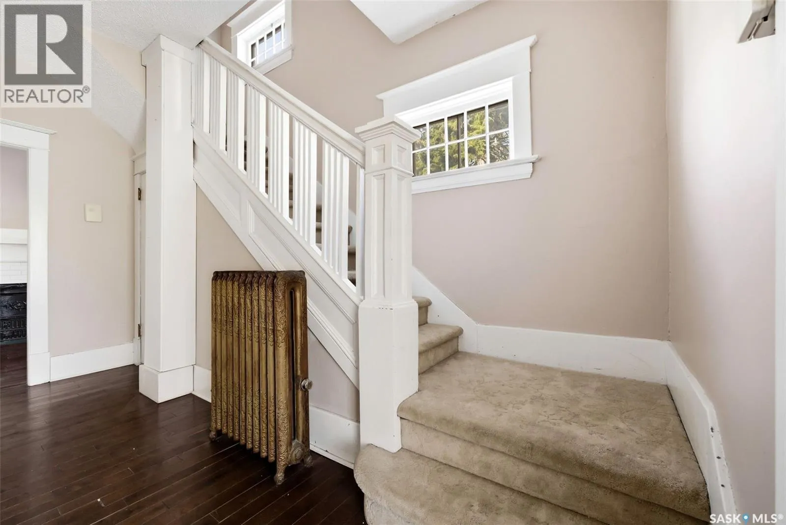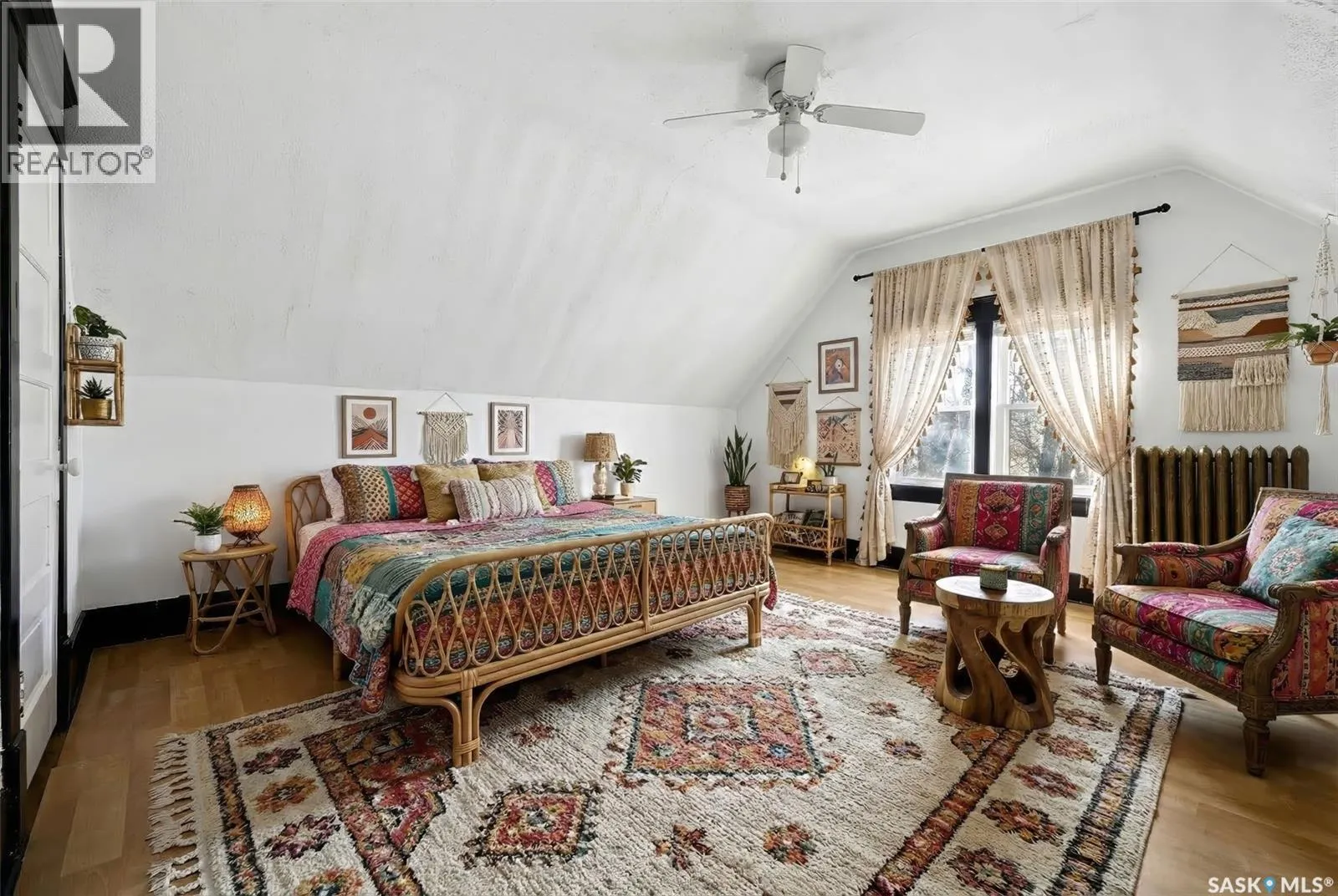 Welcome to this charming 2½ storey character home in the heart of Cathedral, just steps from trendy 13th Avenue, downtown amenities, and Schools. Offering 5 bedrooms and multiple living spaces, this home blends timeless character with thoughtful updates. The main floor features an updated kitchen with granite countertops and tiled flooring, a spacious dining room perfect for hosting, and a bright living room with classic trench doors leading to the foyer. Hardwood floors add warmth and character throughout. A cozy den with a decorative fireplace (not used in recent years) provides a great space for a home office or reading area. On the second level, youâll find three comfortable bedrooms, a 4-piece bathroom, and a convenient laundry area. The primary bedroom also features access to a private balcony deck. The third floor offers two additional versatile rooms, ideal for bedrooms, a studio, or additional living space. The basement has been professionally braced with two pony walls, and an engineerâs certificate available for peace of mind. Additional updates include shingles replaced in 2023 with a 50-year warranty, an updated 100-amp electrical panel, steam boiler system (2017), sump pump (2015), updated kitchen, bathrooms, flooring, and more. Outside, enjoy a rear deck off the kitchen, a fully fenced yard, and a private front deck, perfect for relaxing and enjoying this vibrant neighbourhood. A wonderful opportunity to own a spacious character home in one of Reginaâs most sought-after communities. *Some virtually staged photos* (id:27476)